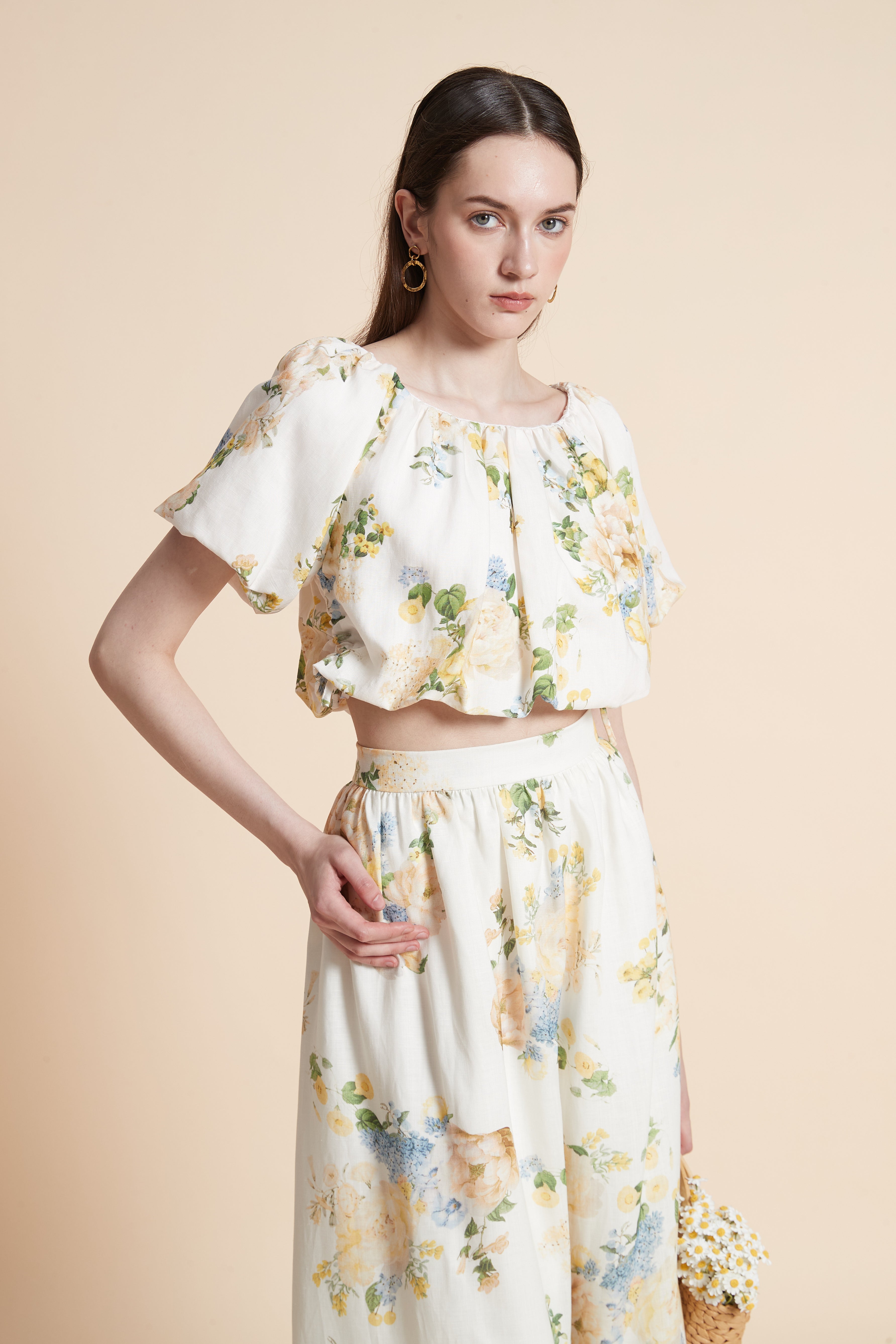 بلوزة قصيرة كروب منقوشة بأكمام قصيرة