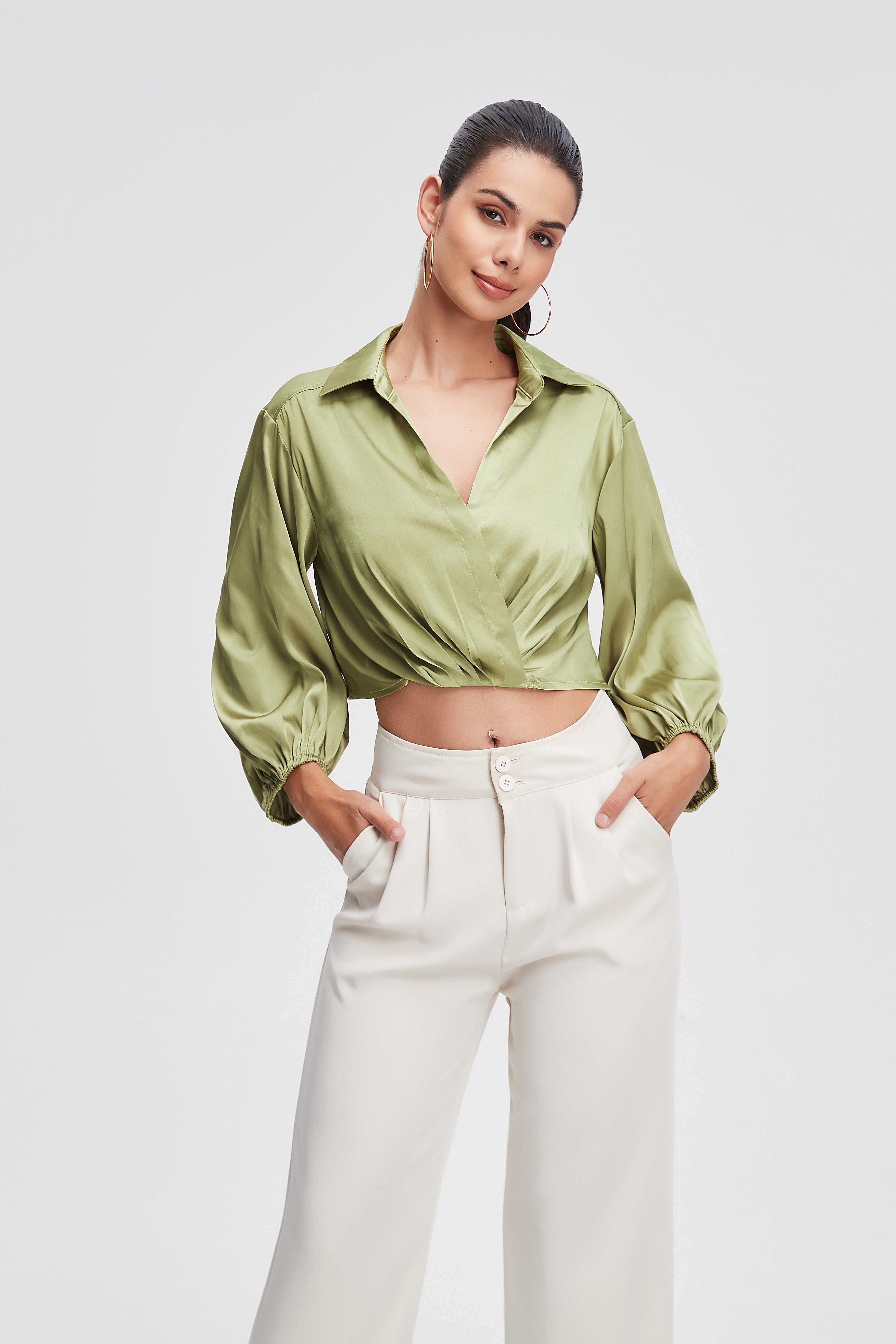 تبحثين عن لمسة من الأناقة والأنوثة في إطلالتك اليومية؟ كروب توب سادة بكم طويل بتصميم عصري يناسب الإطلالات اليومية والشبابية. قصته القصيرة تمنحك مظهراً جذاباً وسهل التنسيق مع البنطلونات عالية الخصر أو التنانير. خيار عملي لإطلالة كاجوال أنيقة مع راحة أثناء الارتداء. أطلبي الآن ولا تفوتي الفرصة