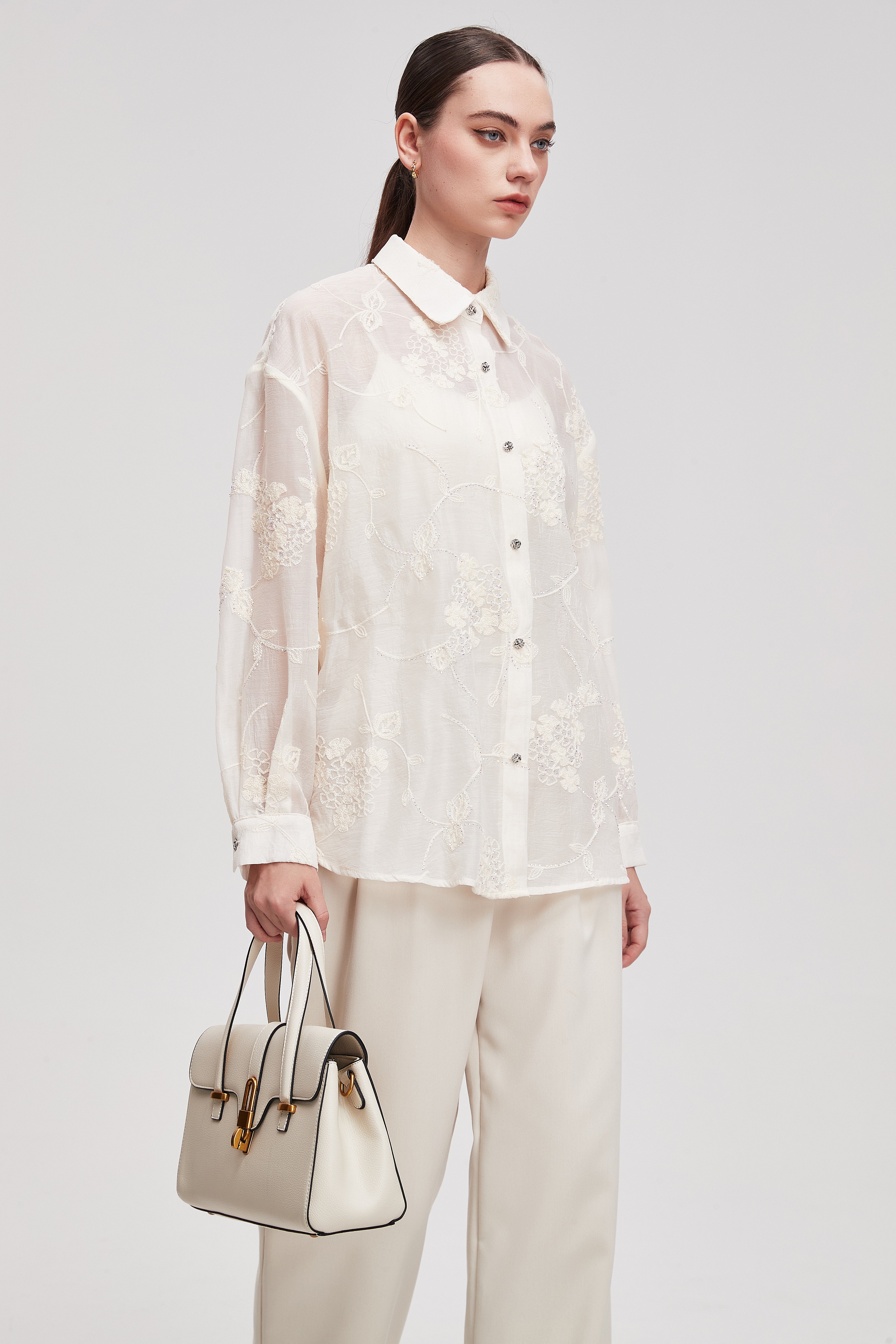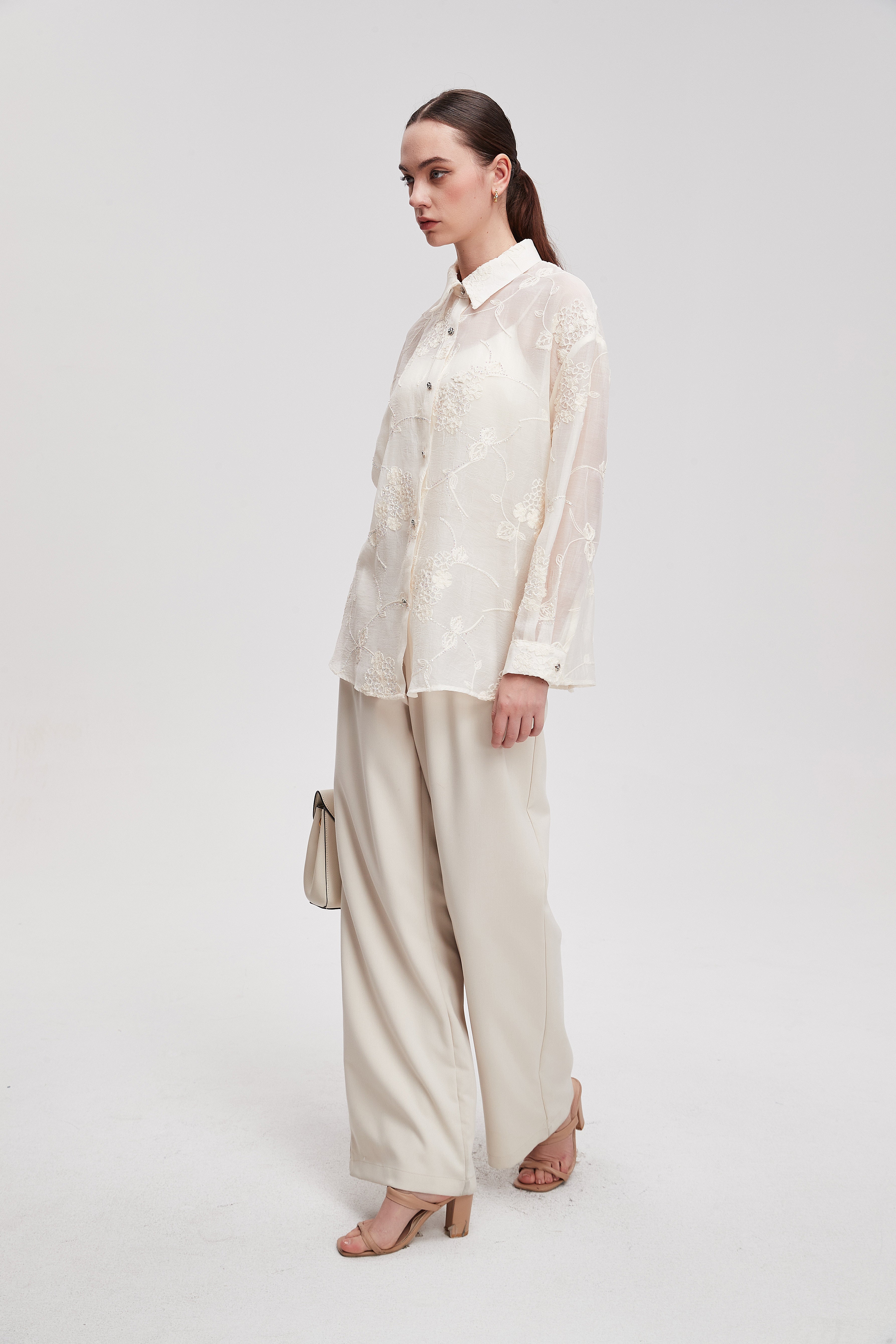 يمنحك هذا القميص الأبيض شعوراً بالثقة والراحة طوال اليوم بفضل تصميمه المدروس بعناية ليناسب فترات العمل الطويلة أو الخروجات المسائية الهادئة. صُممت هذه القطعة لتكون خيارك الأول عند البحث عن الأناقة البسيطة، حيث توفر قصة انسيابية تتنفس بحرية وتضمن لك حرية الحركة في مختلف الأوقات والمناسبات الرسمية وغير الرسمية.