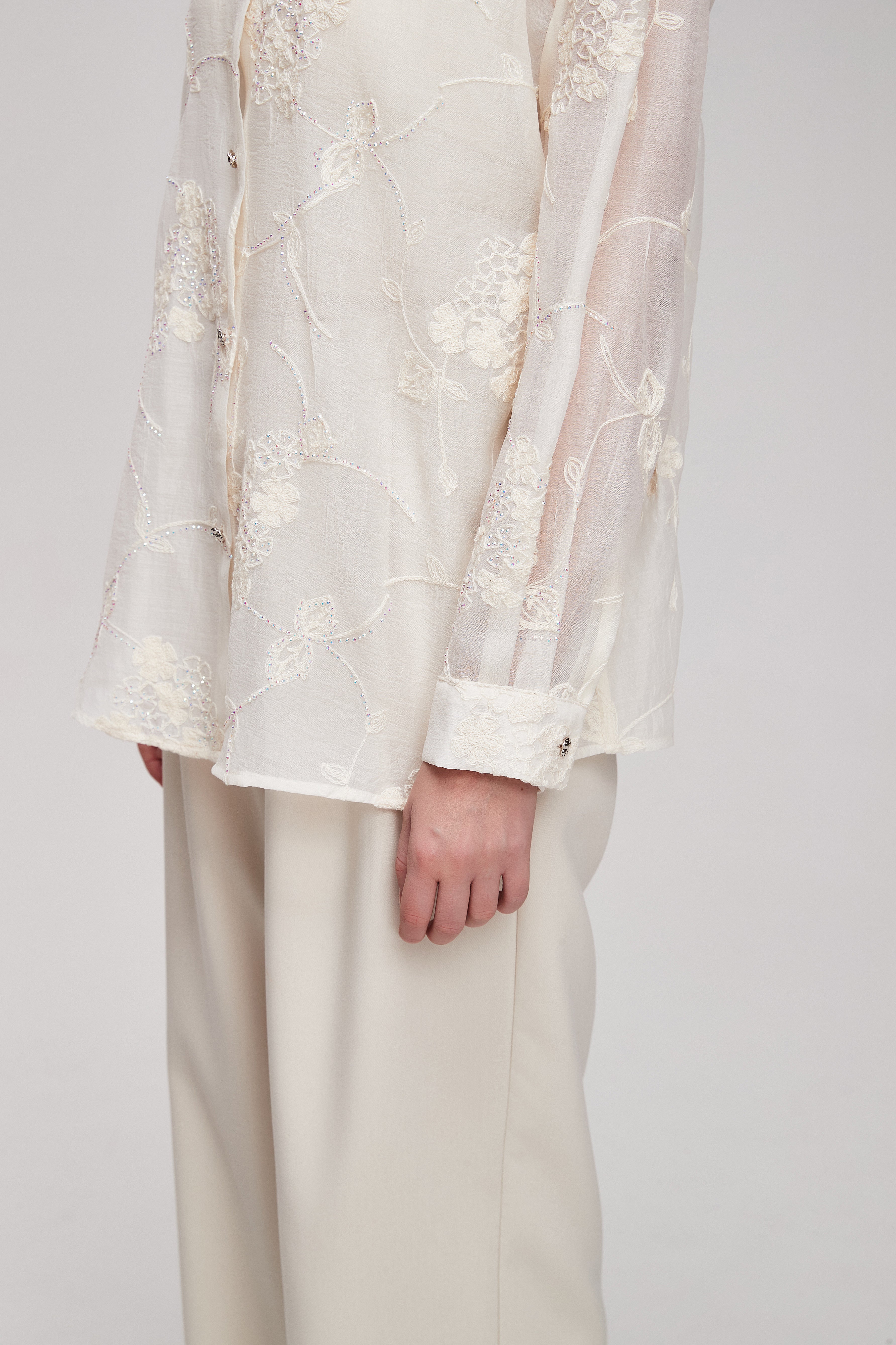 • ياقة متقنة الصنع تضفي طابعاً رسمياً وعصرياً في آن واحد.