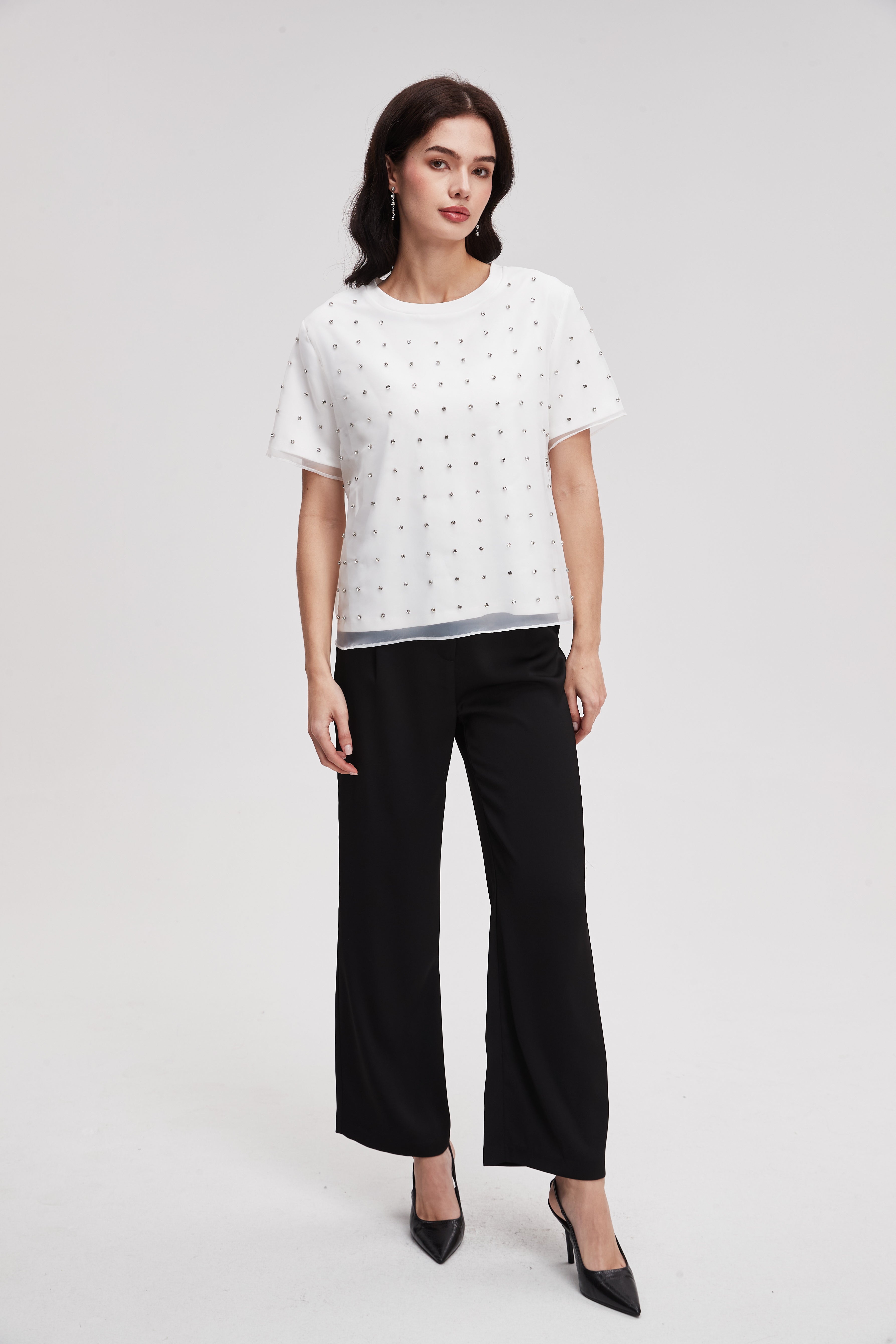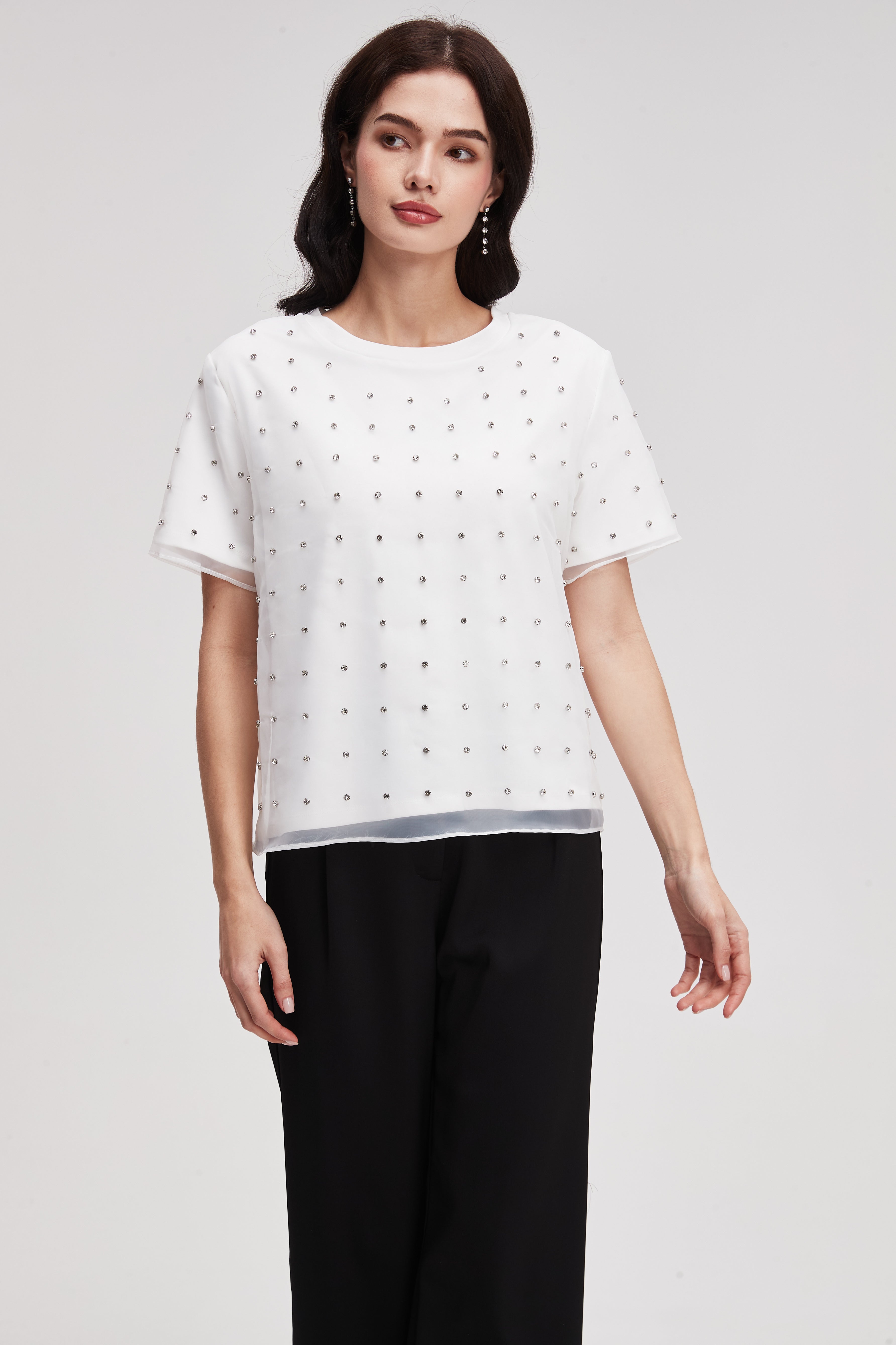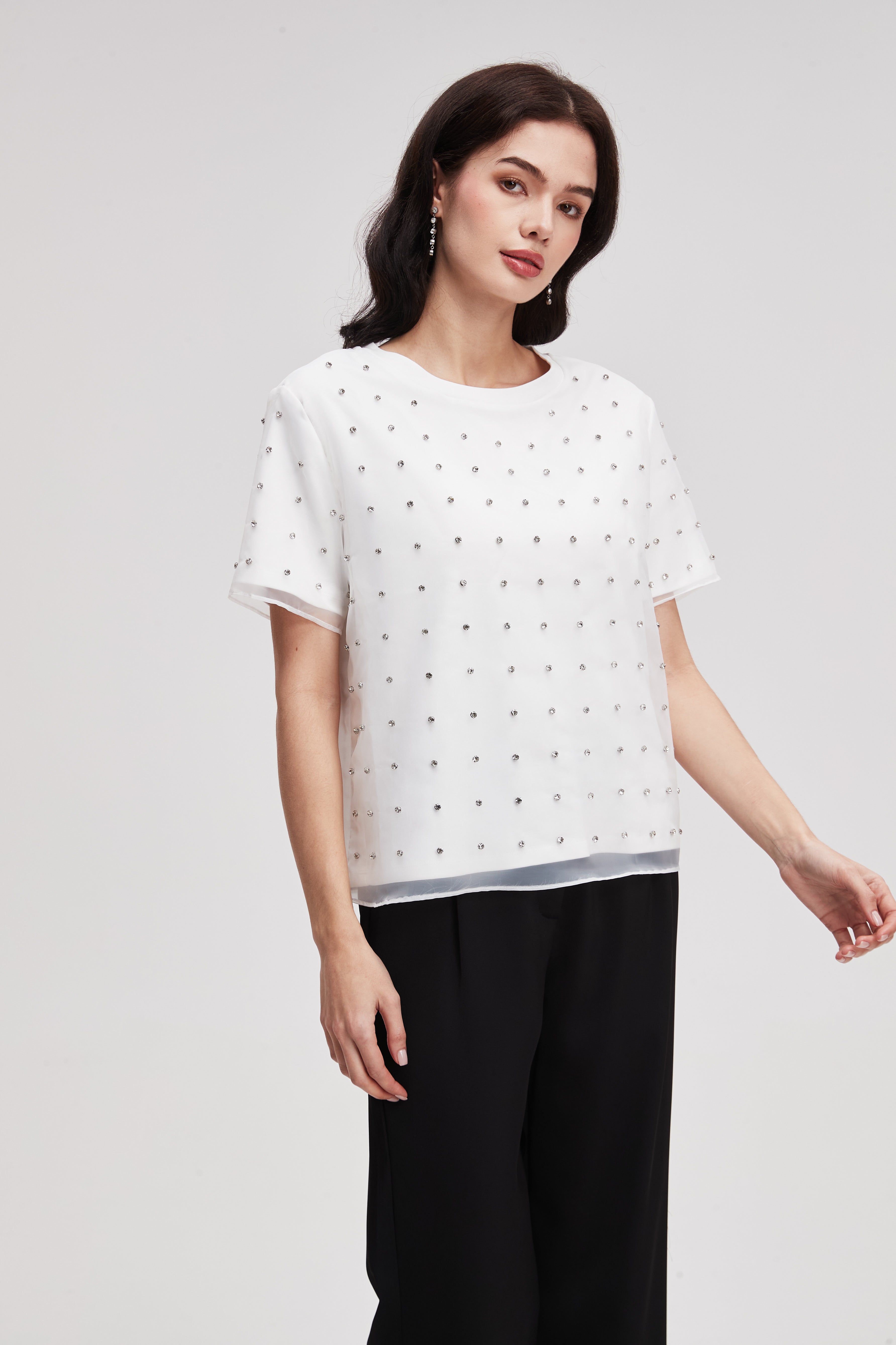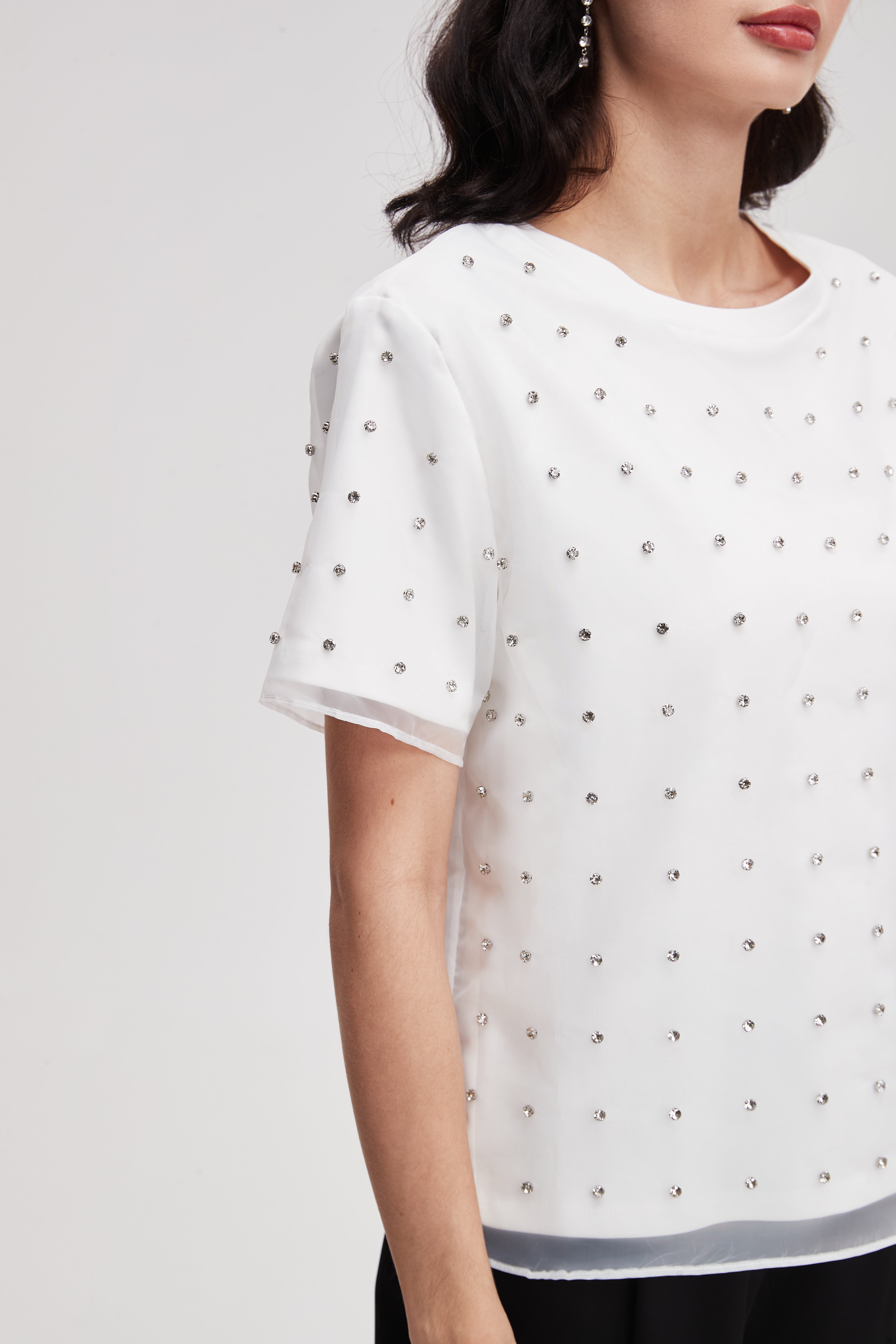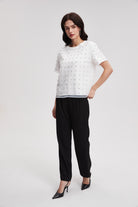 بلوزة مطرزة بأكمام قصيرة