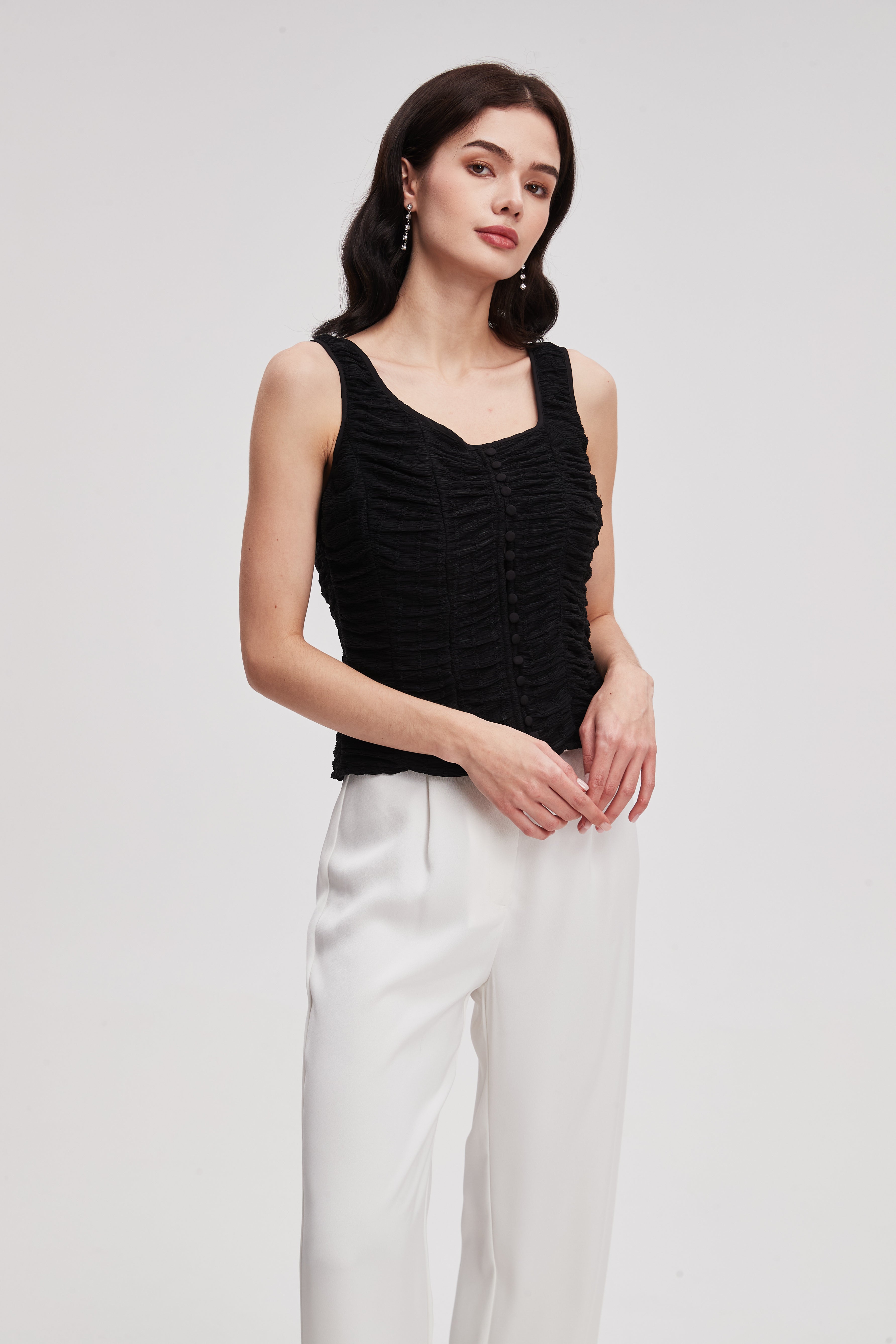- تصميم عصري بدون أكمام يمنحك حرية الحركة والأناقة.