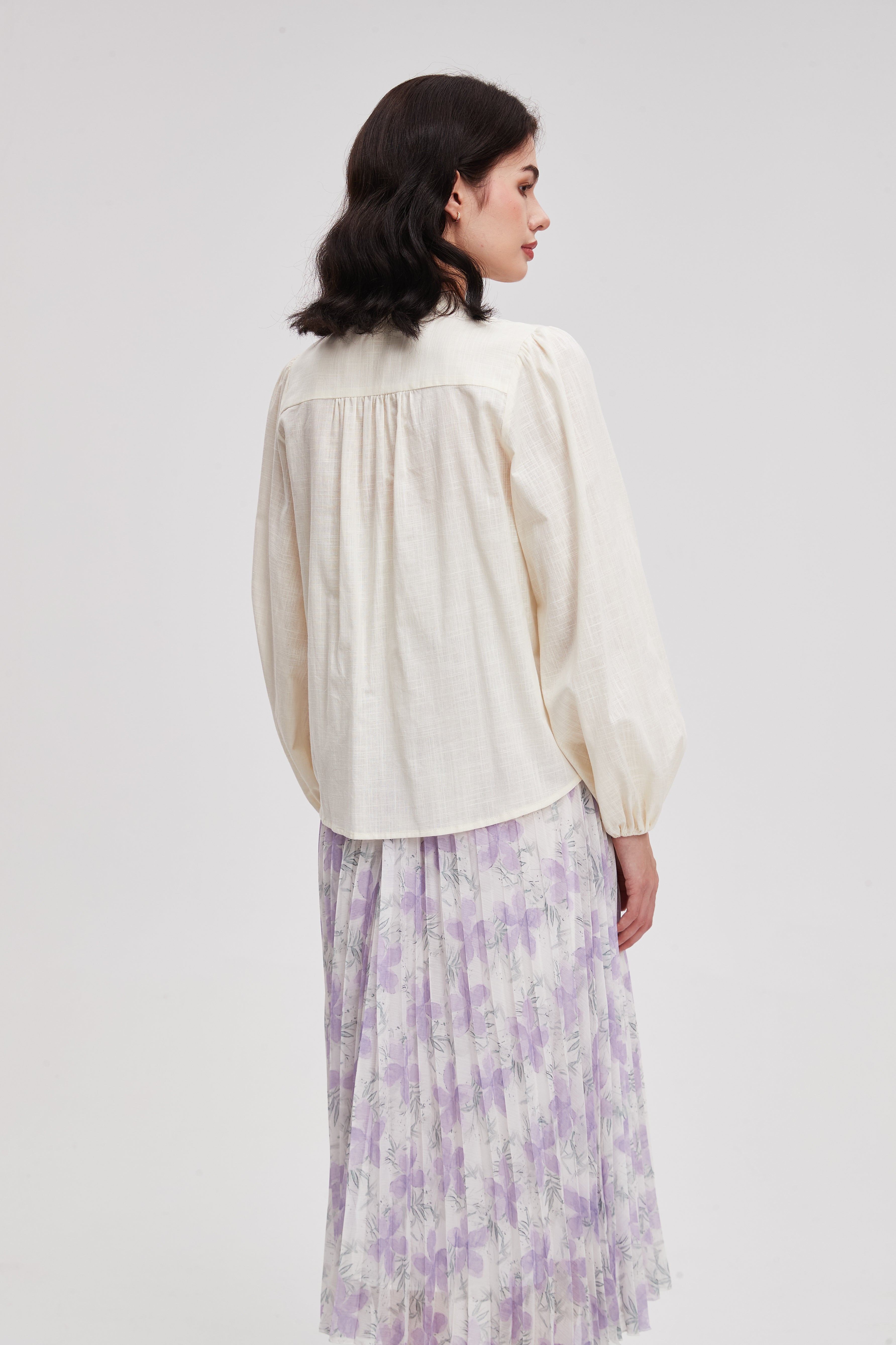 نسقيها مع بنطال جينز وحذاء رياضي لإطلالة يومية مريحة، أو مع بنطال قماش كلاسيكي أو تنورة بقصة A للعمل. يمكن ارتداؤها تحت سترة خفيفة أو كارديجان لمظهر طبقات أنيق يضيف عمقًا لمظهرك.