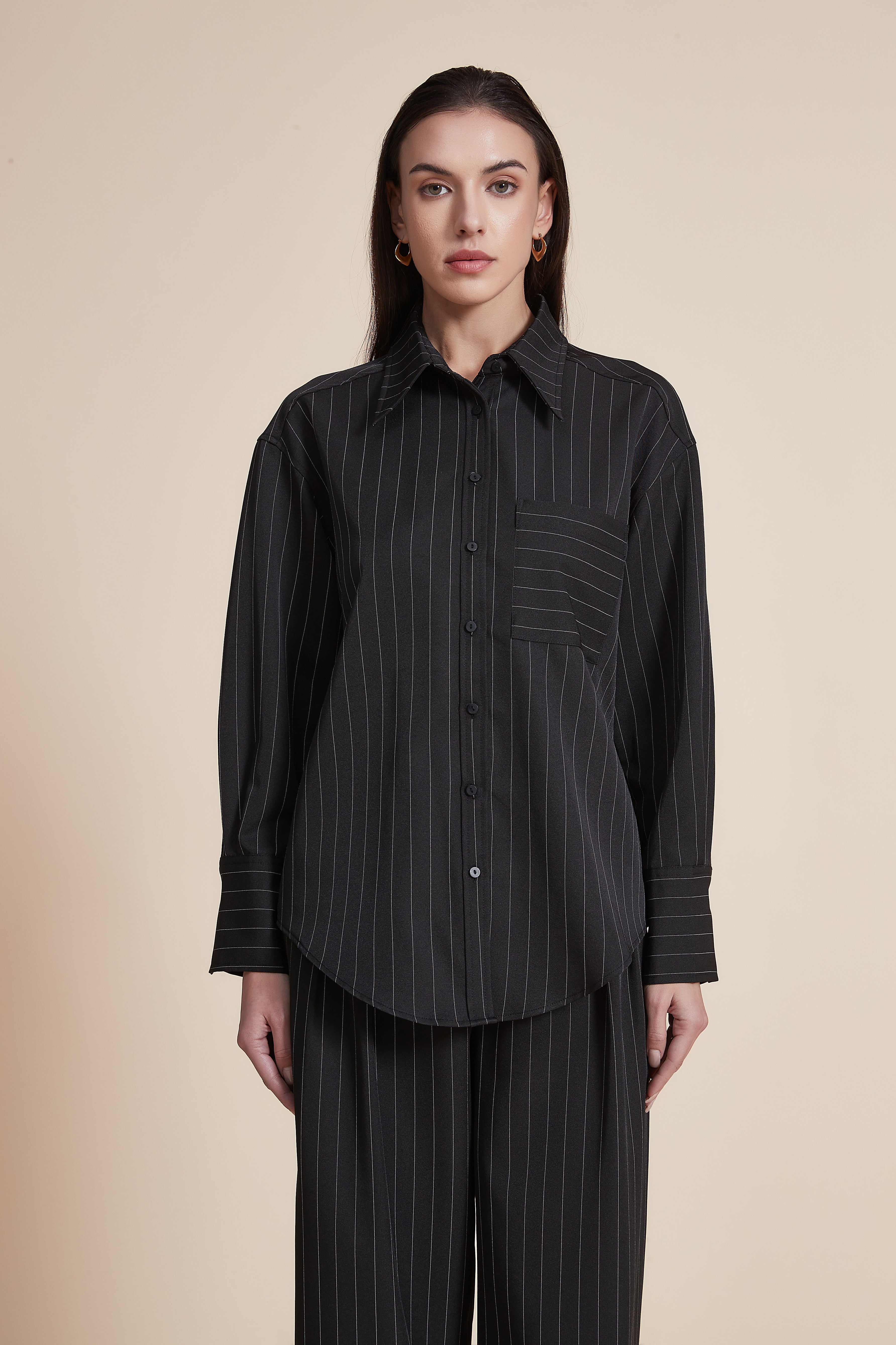بلوزة بتصميم قميص بكم طويل