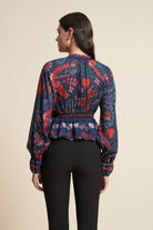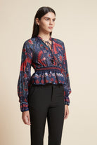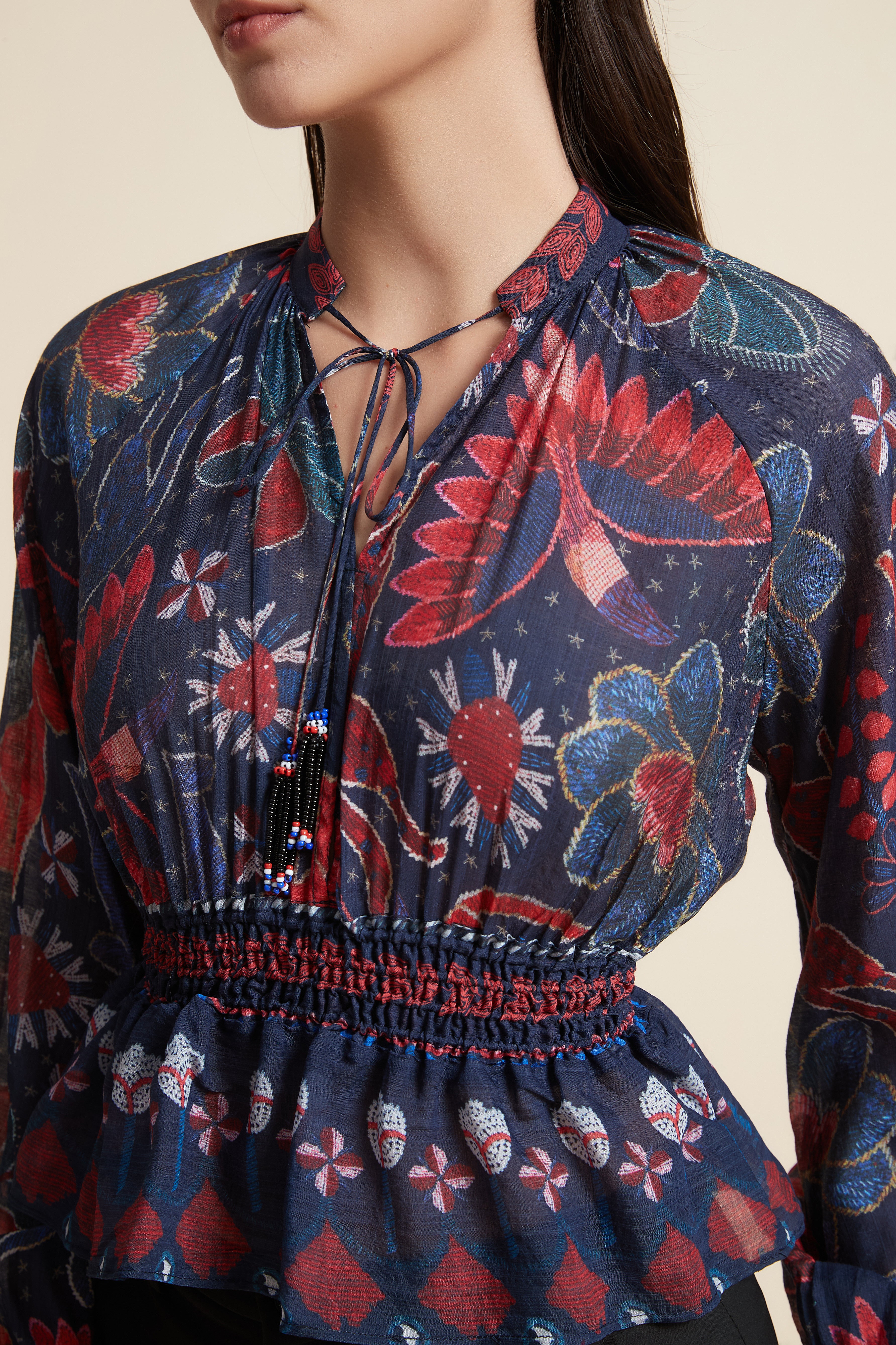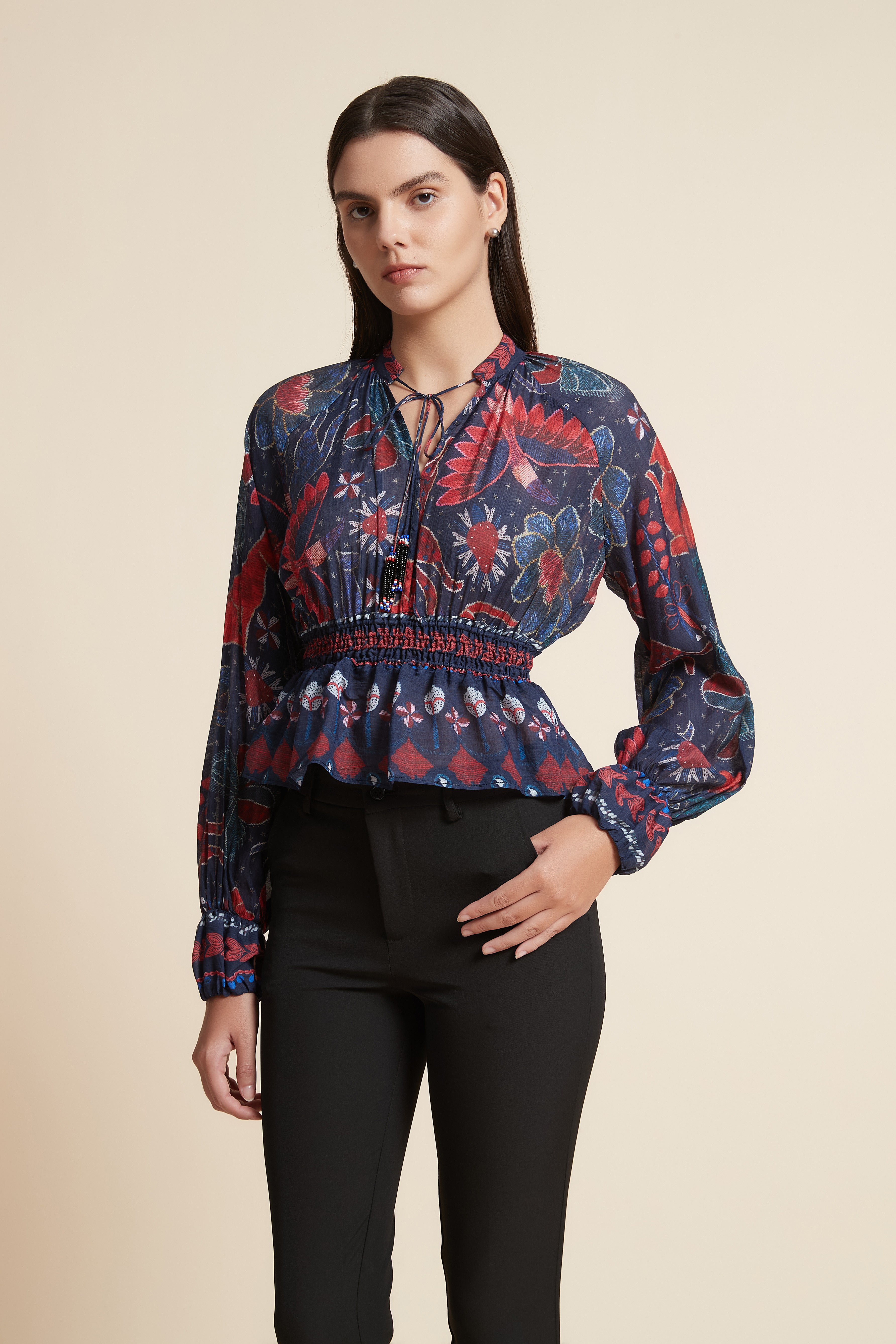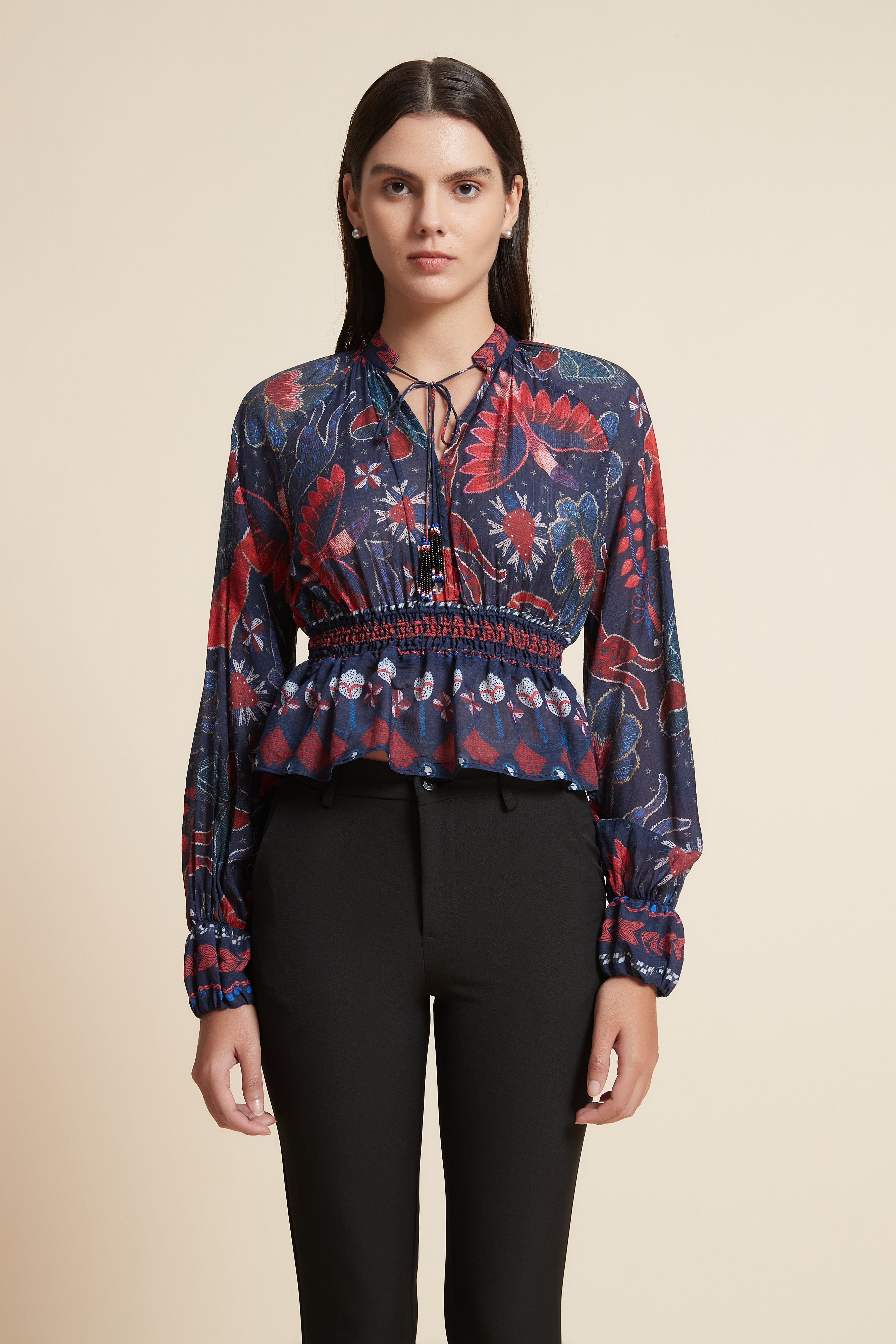 بلوزة قصيرة بكشكش على الخصر وأكمام طويلة
