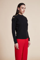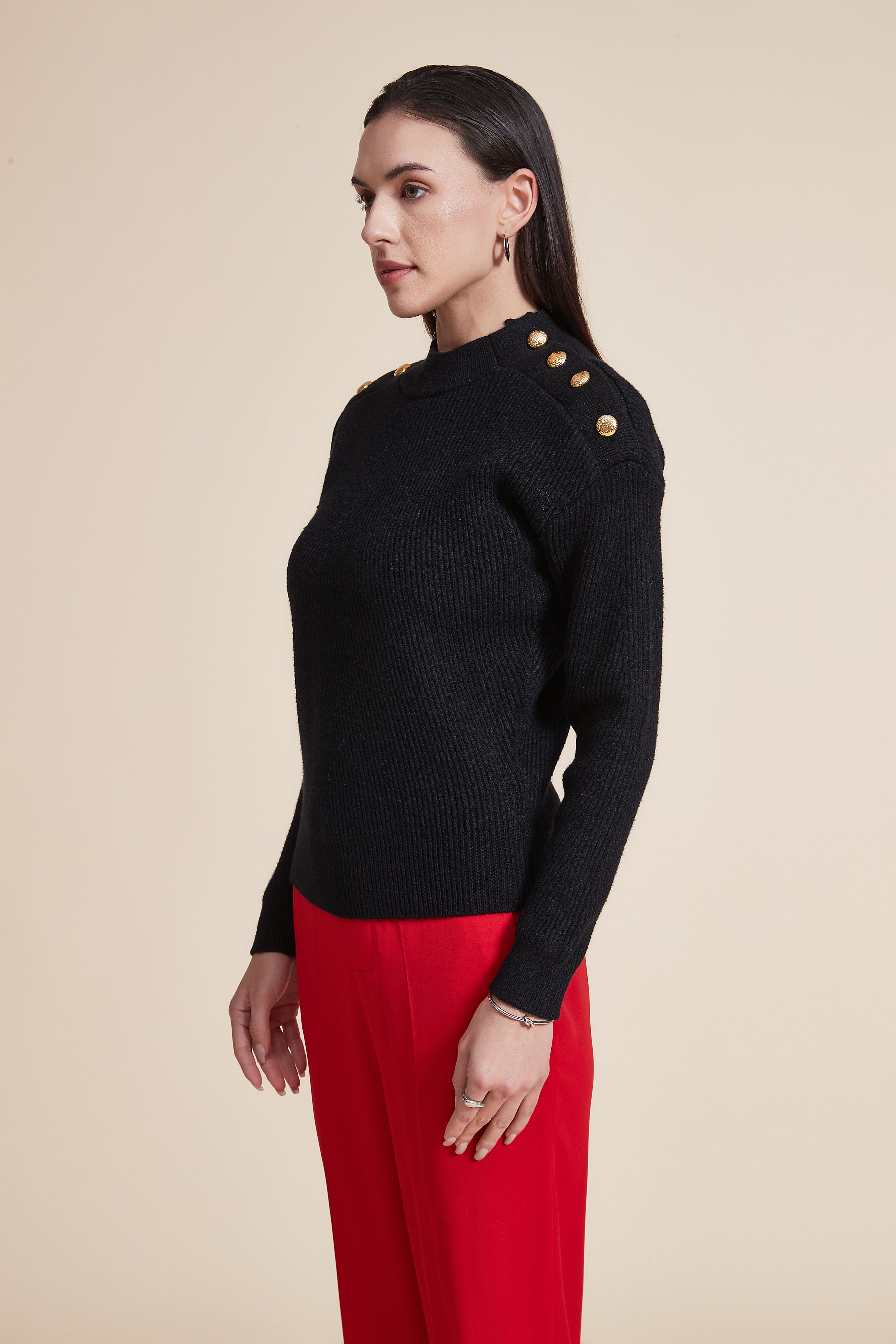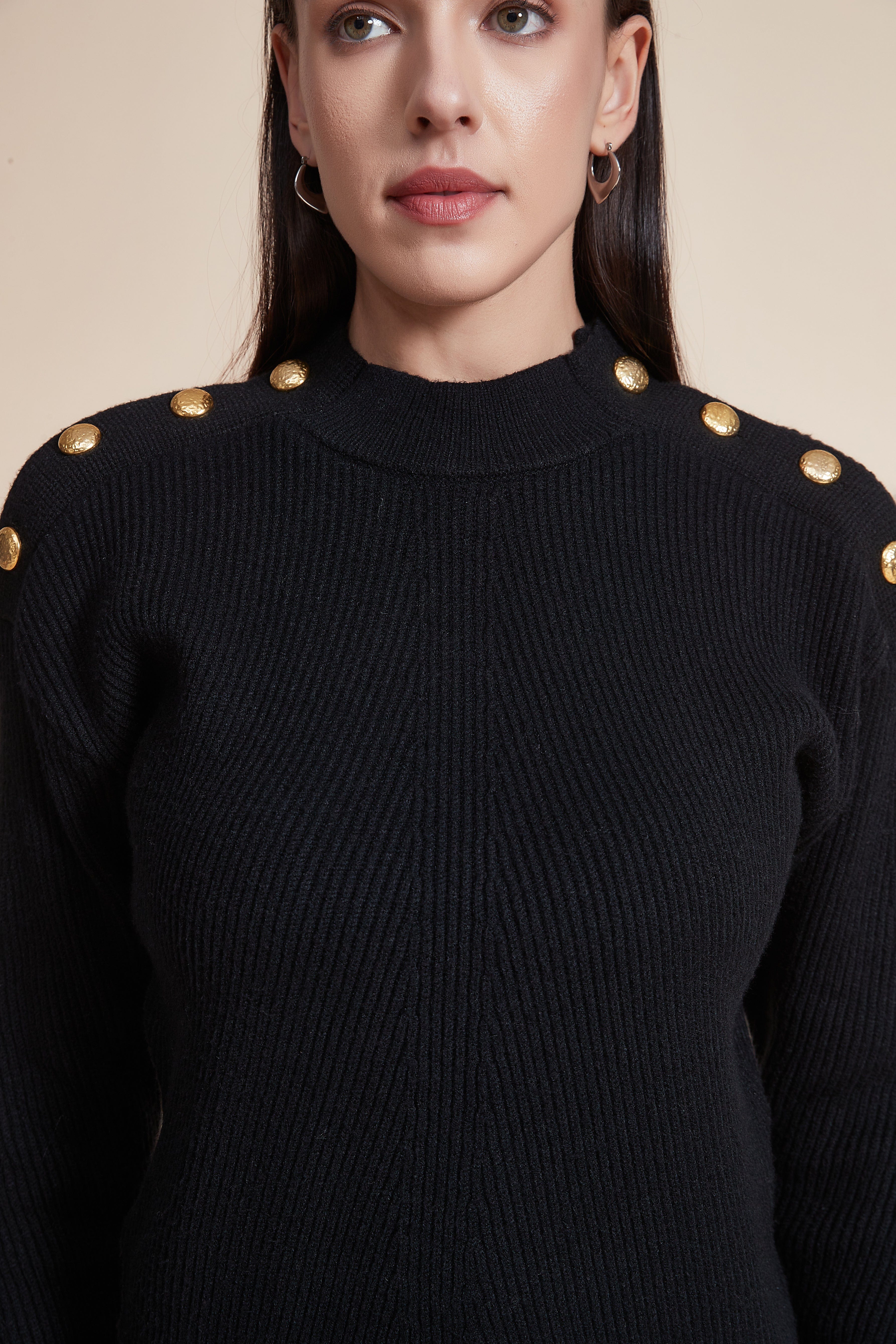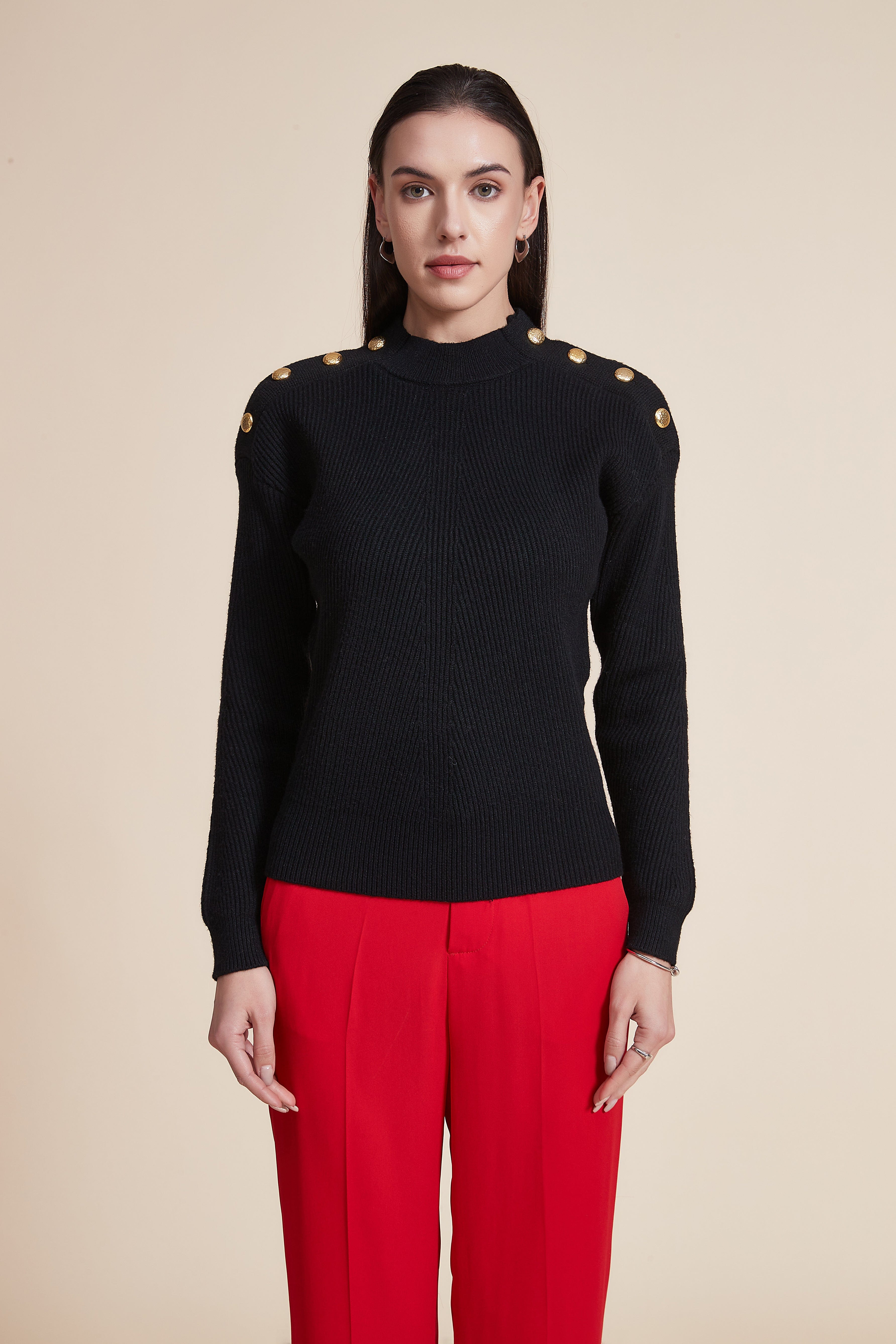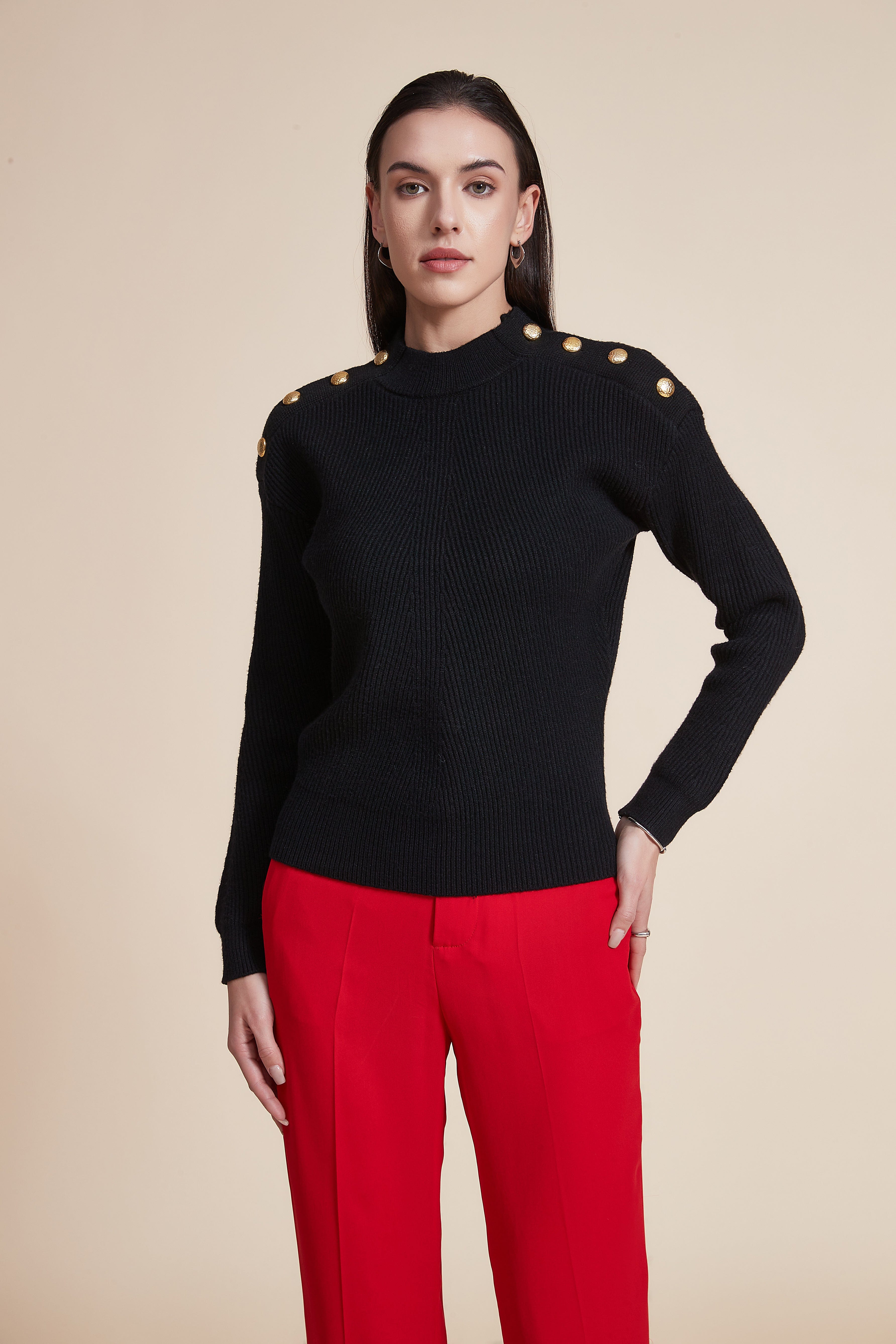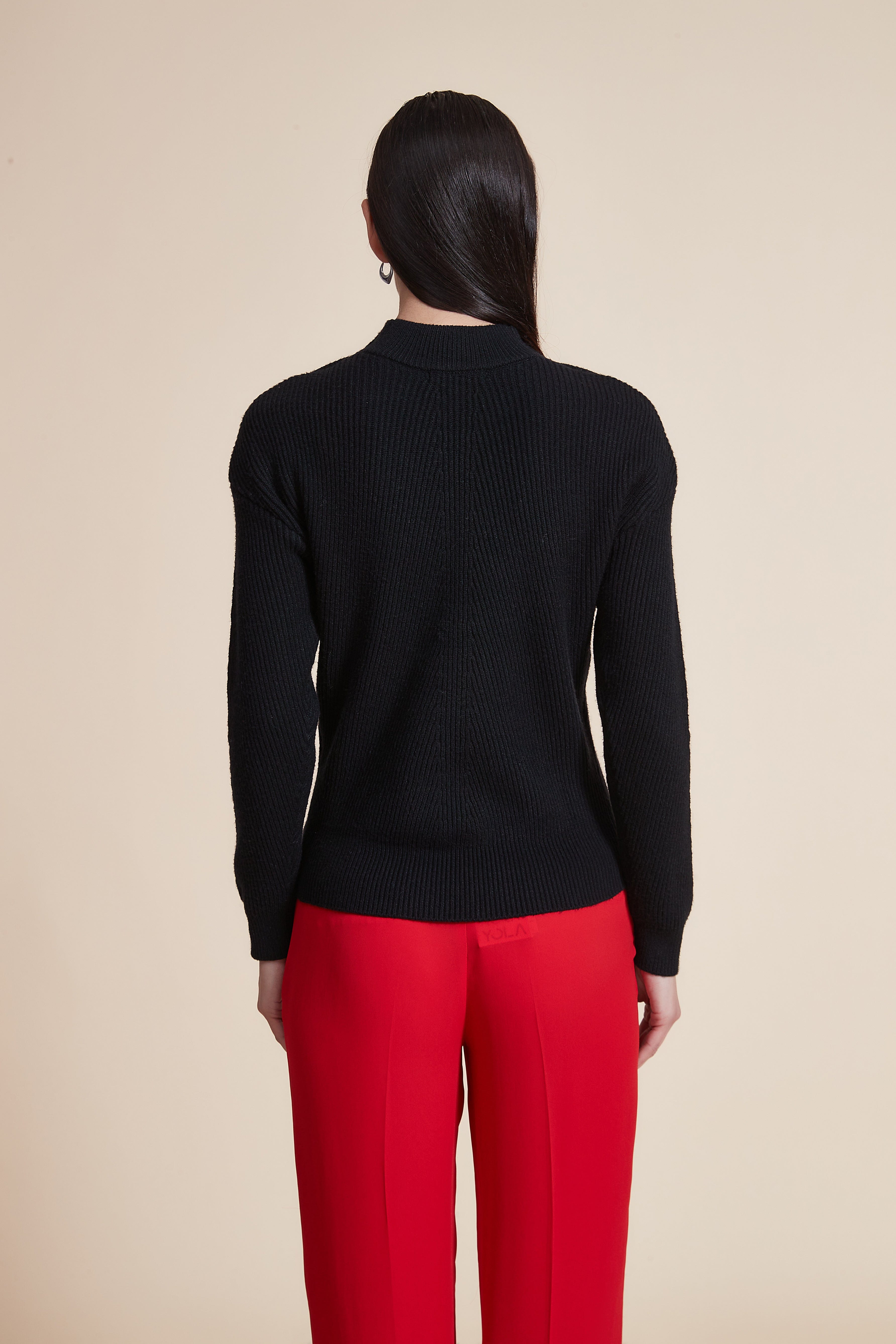 بلوزة نسائية مضلعة بكم طويل ورقبة عالية