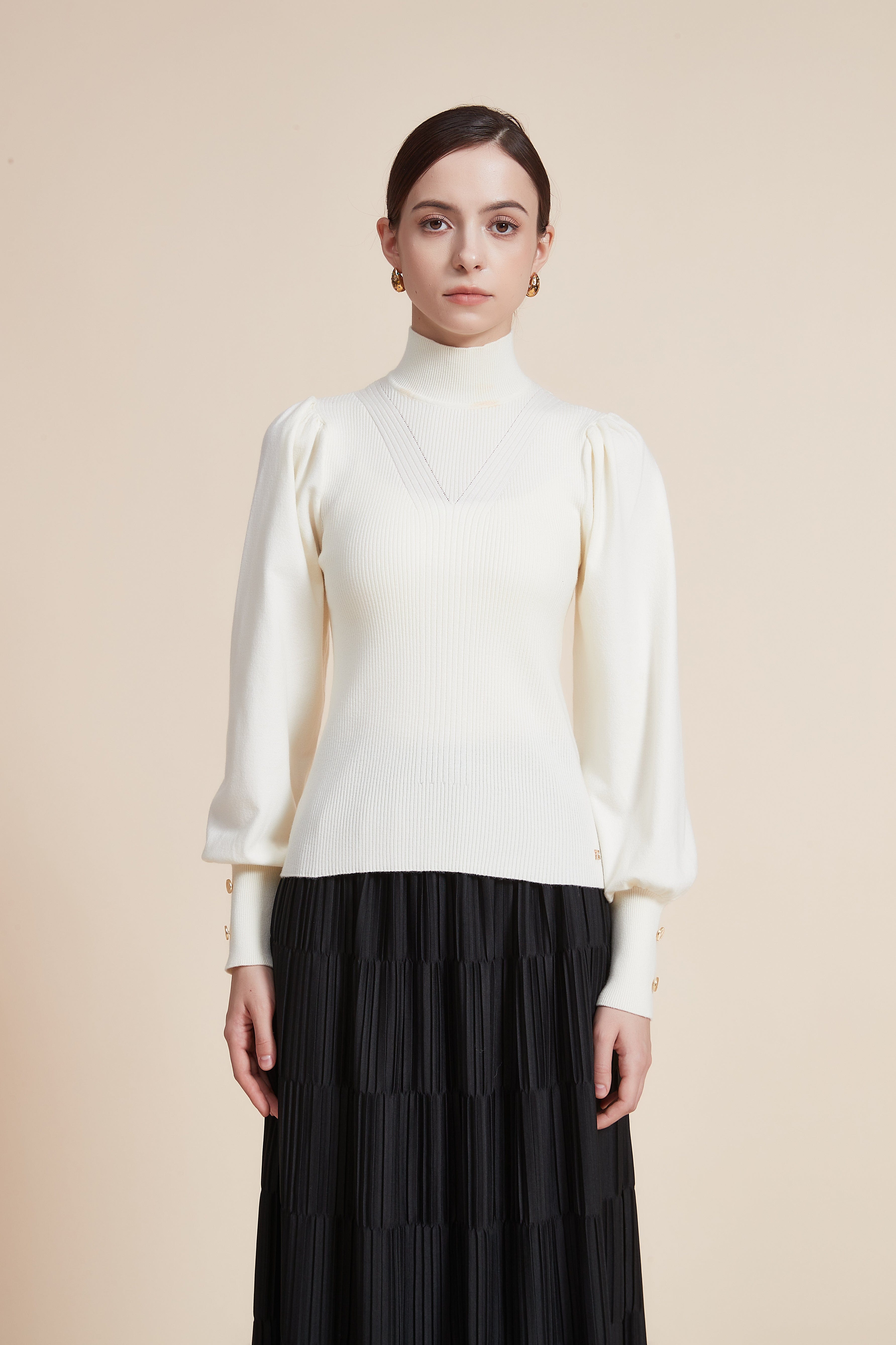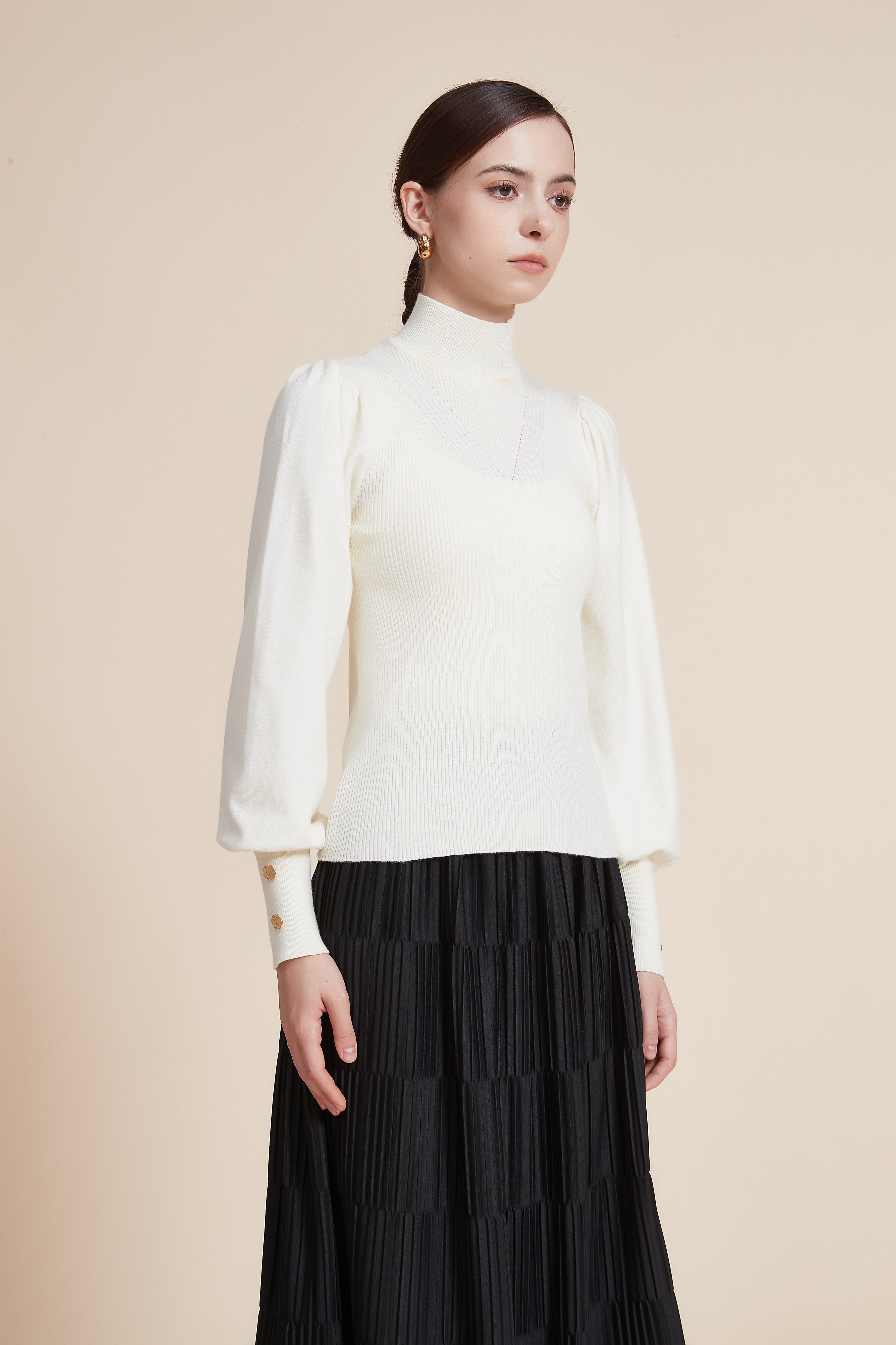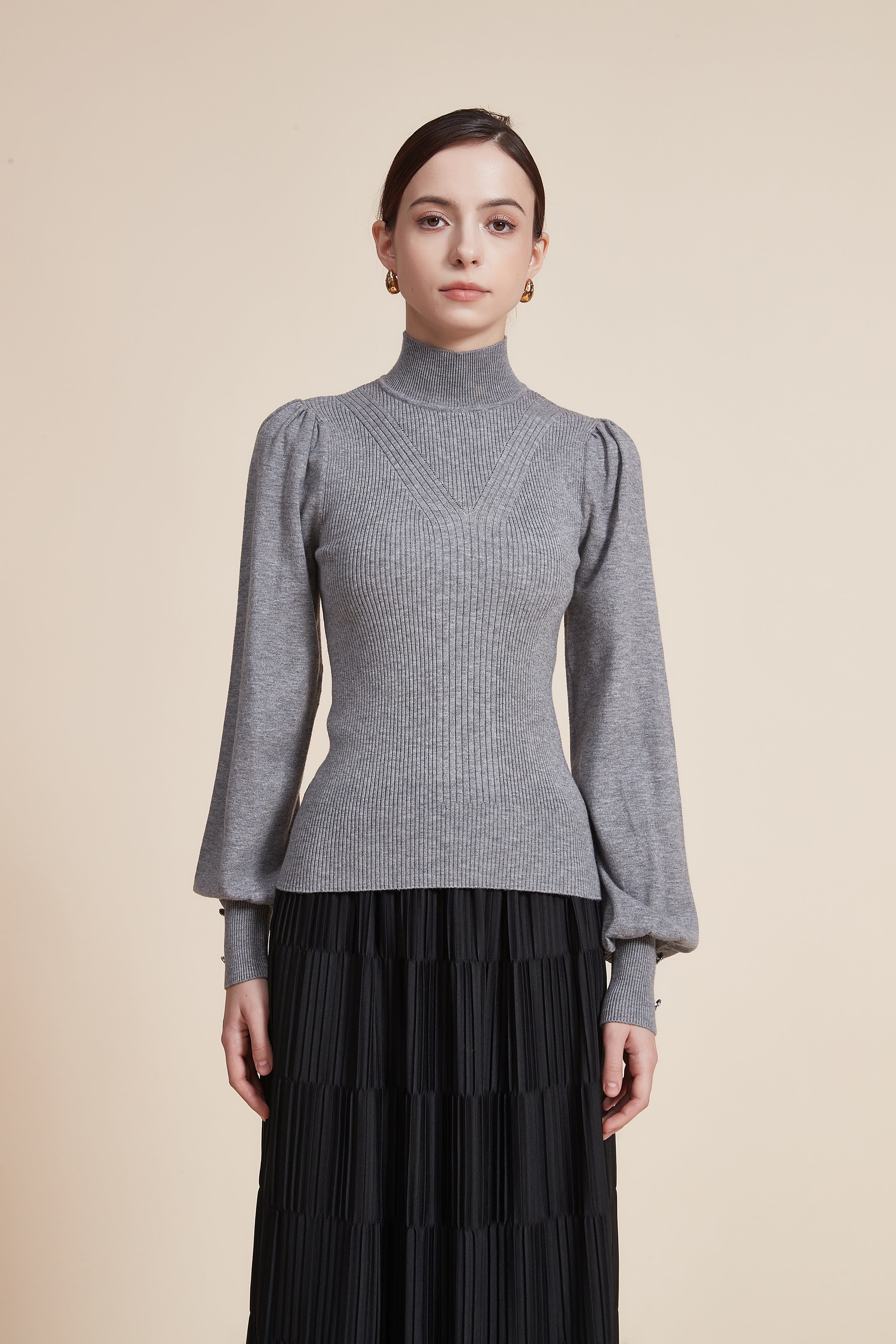 بلوزة نسائية بكم طويل واسع وفتحة رقبة مرتفعة