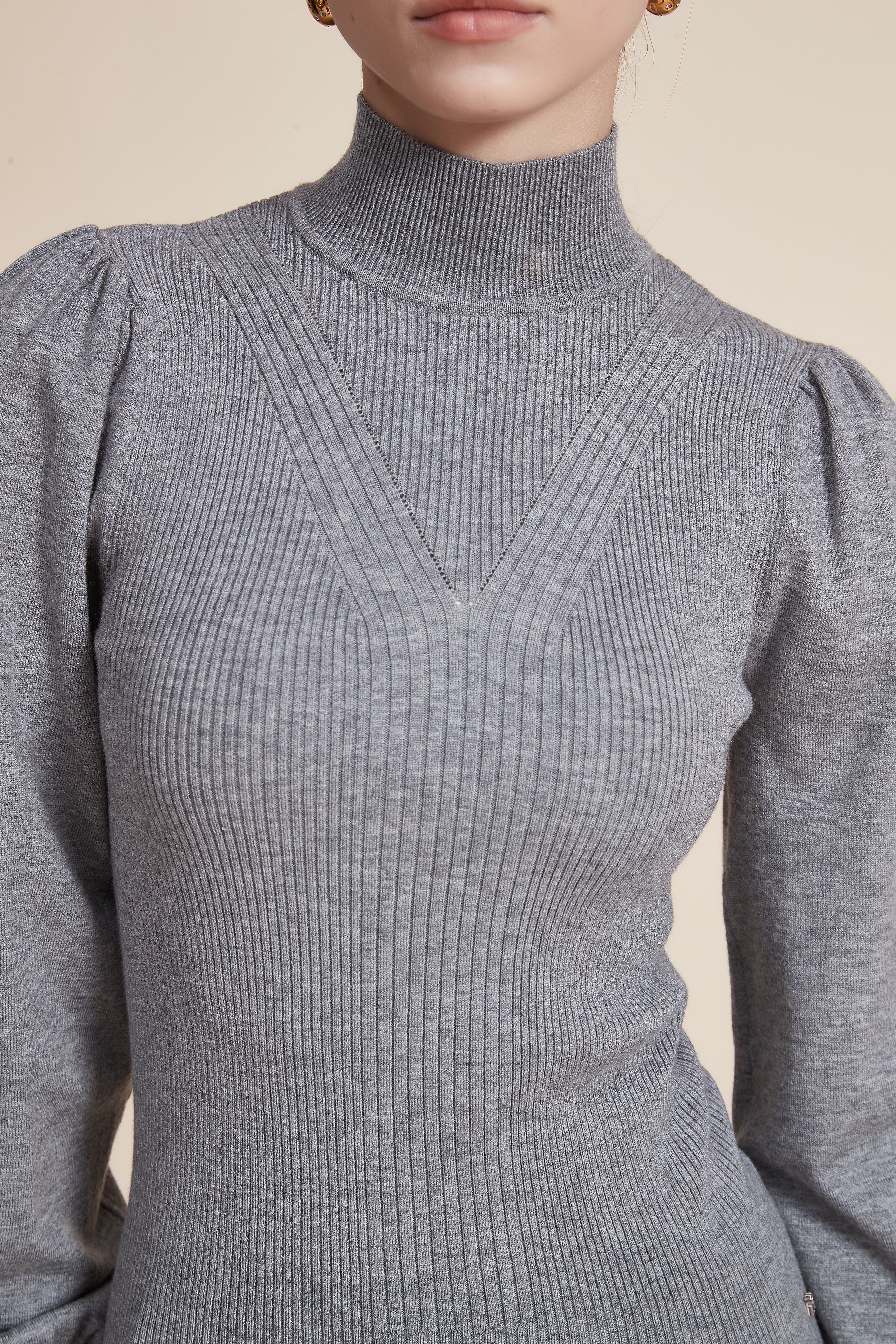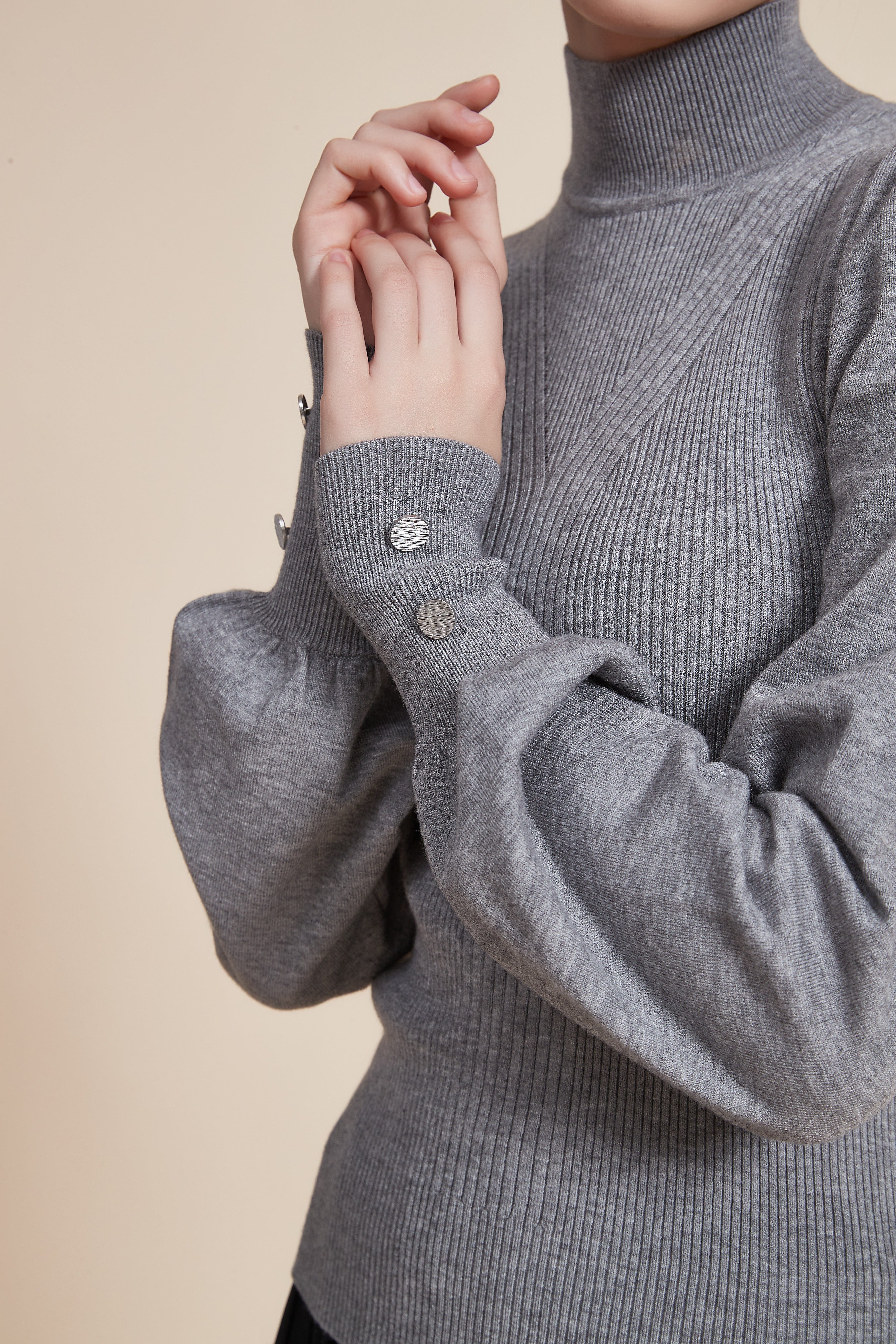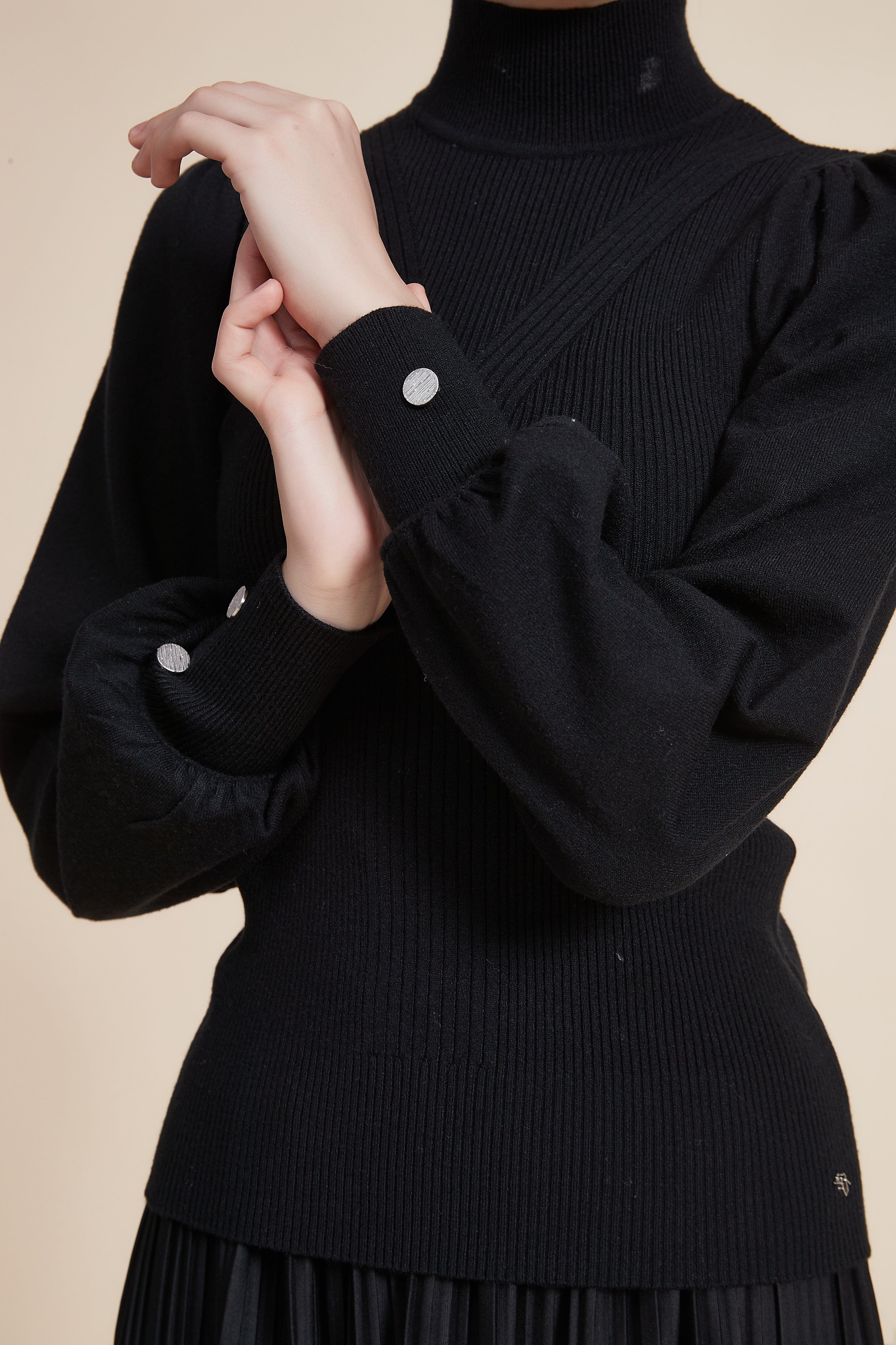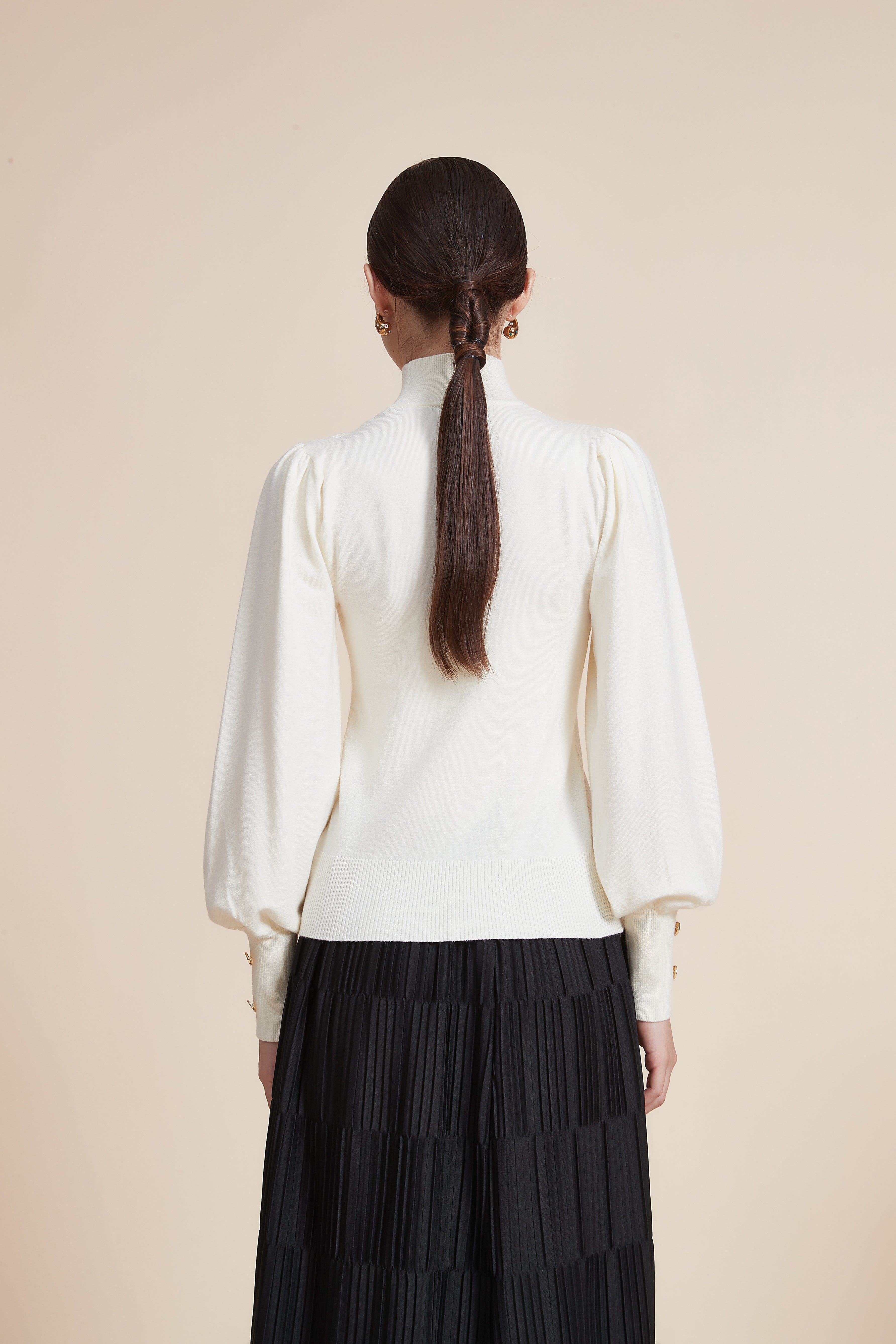 بلوزة نسائية بكم طويل واسع وفتحة رقبة مرتفعة
