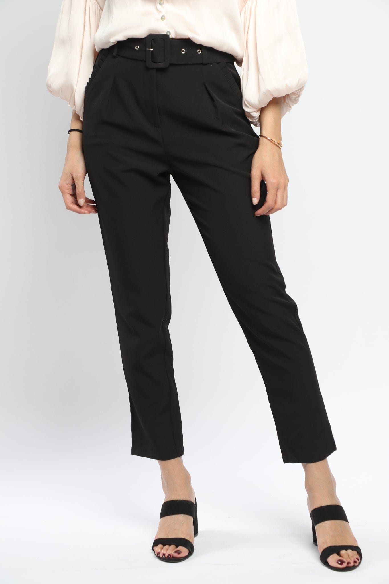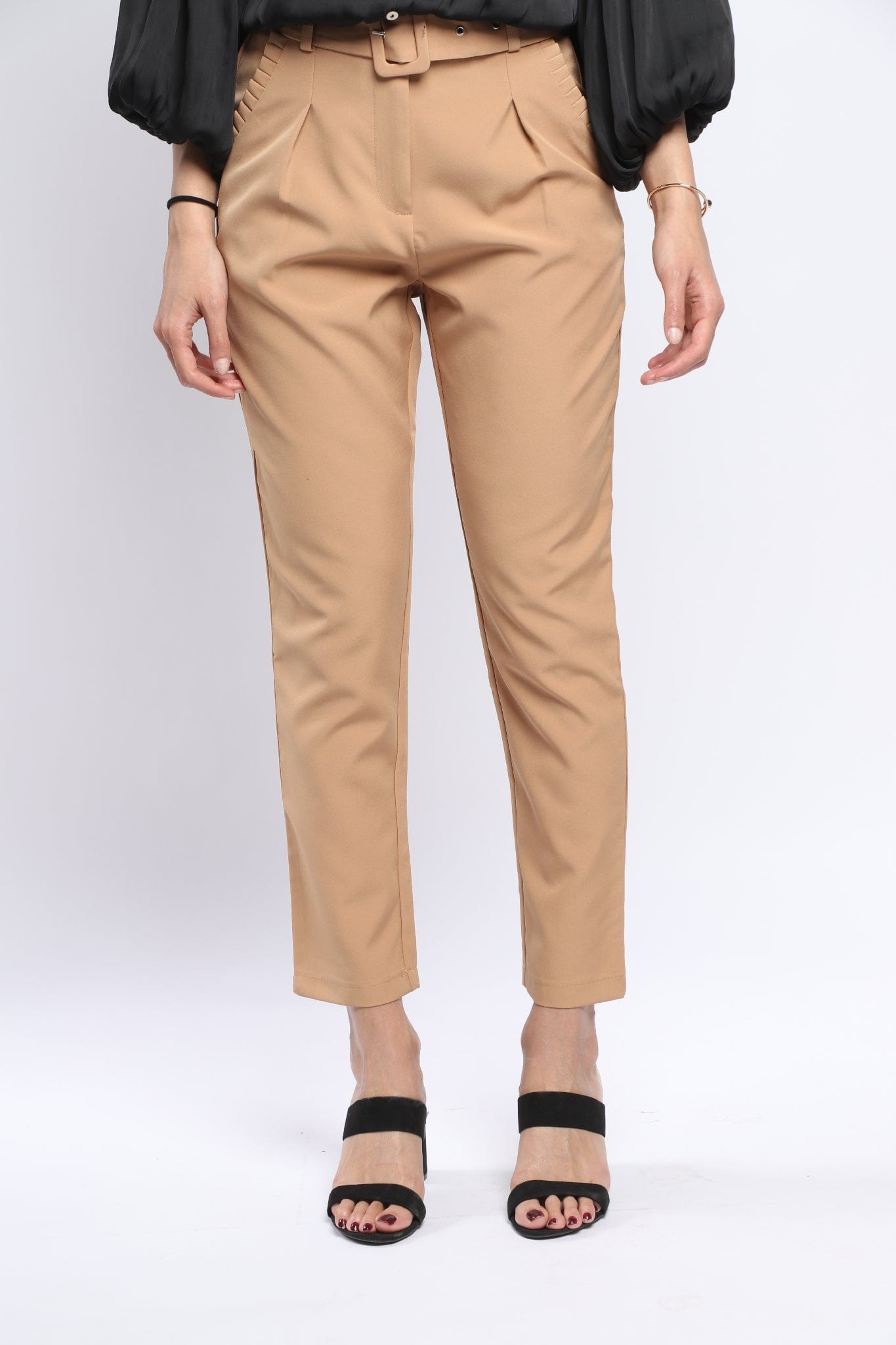 بنطلون كلاسيك سادة بحزام طويل نسائي