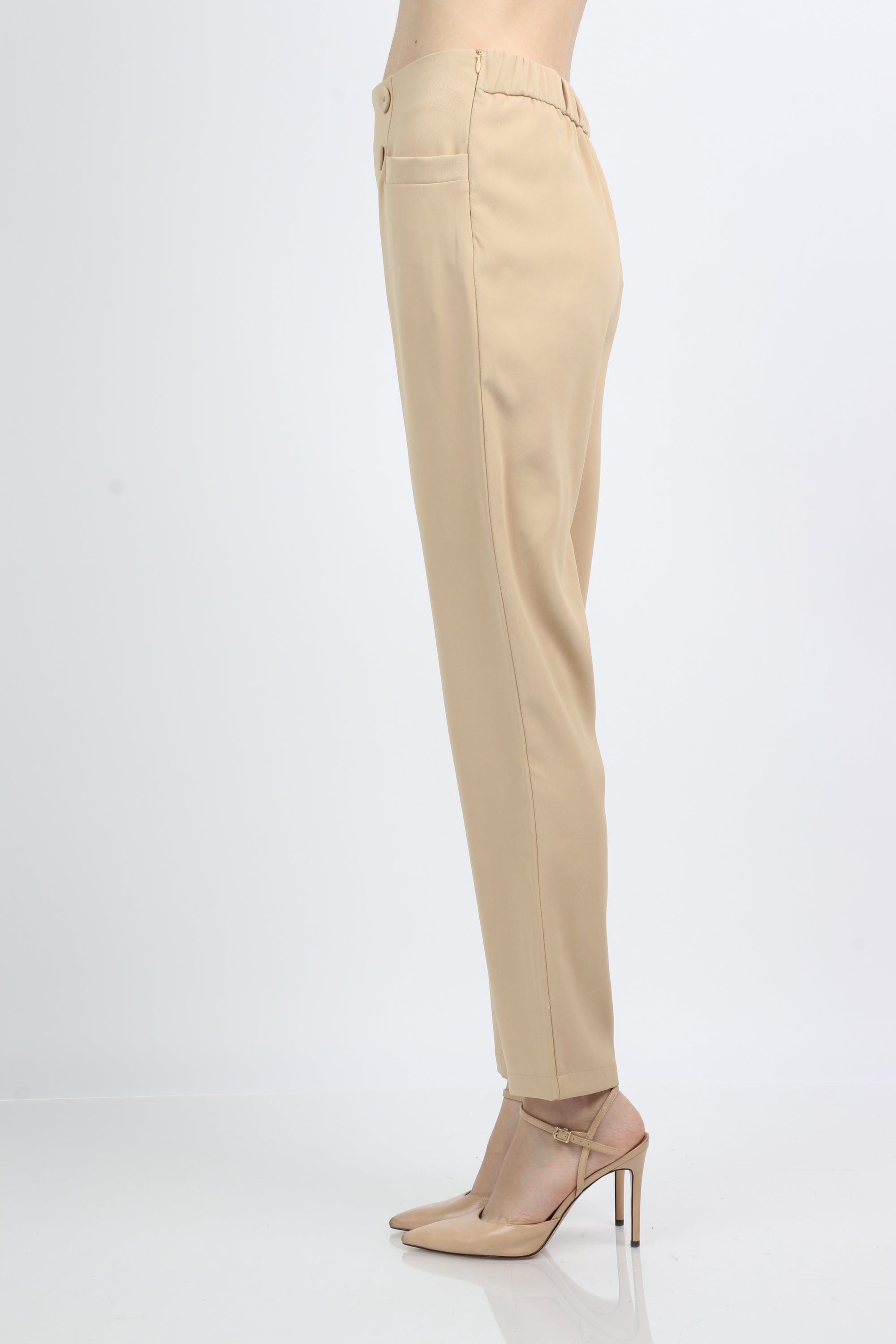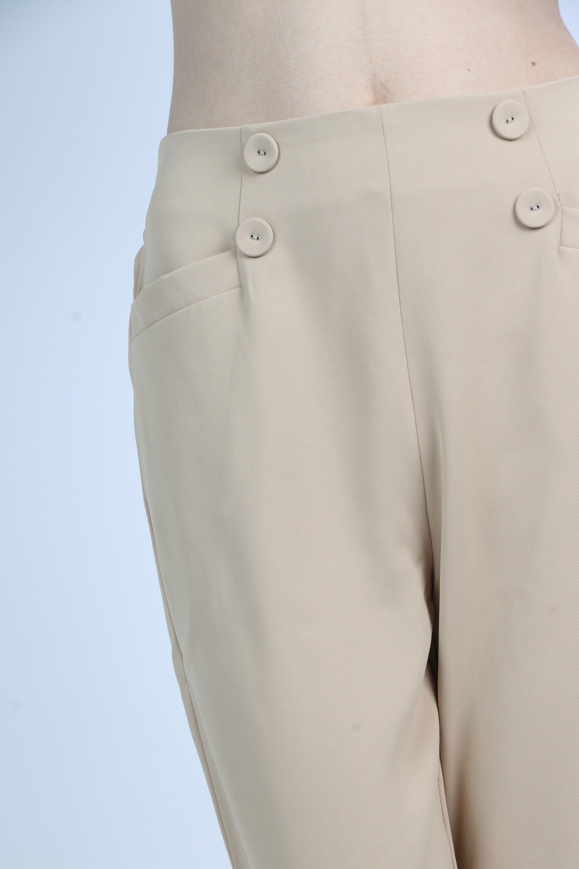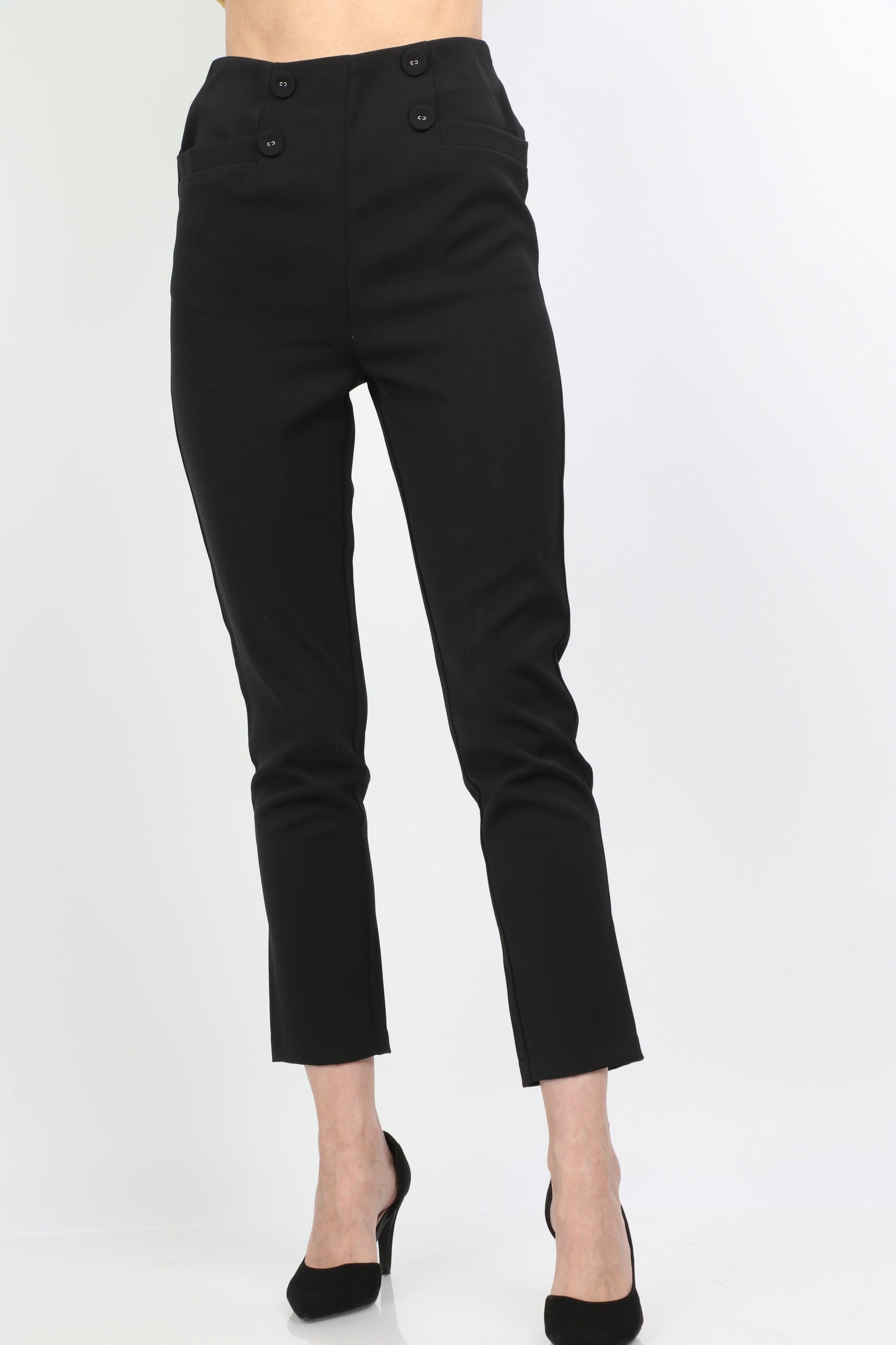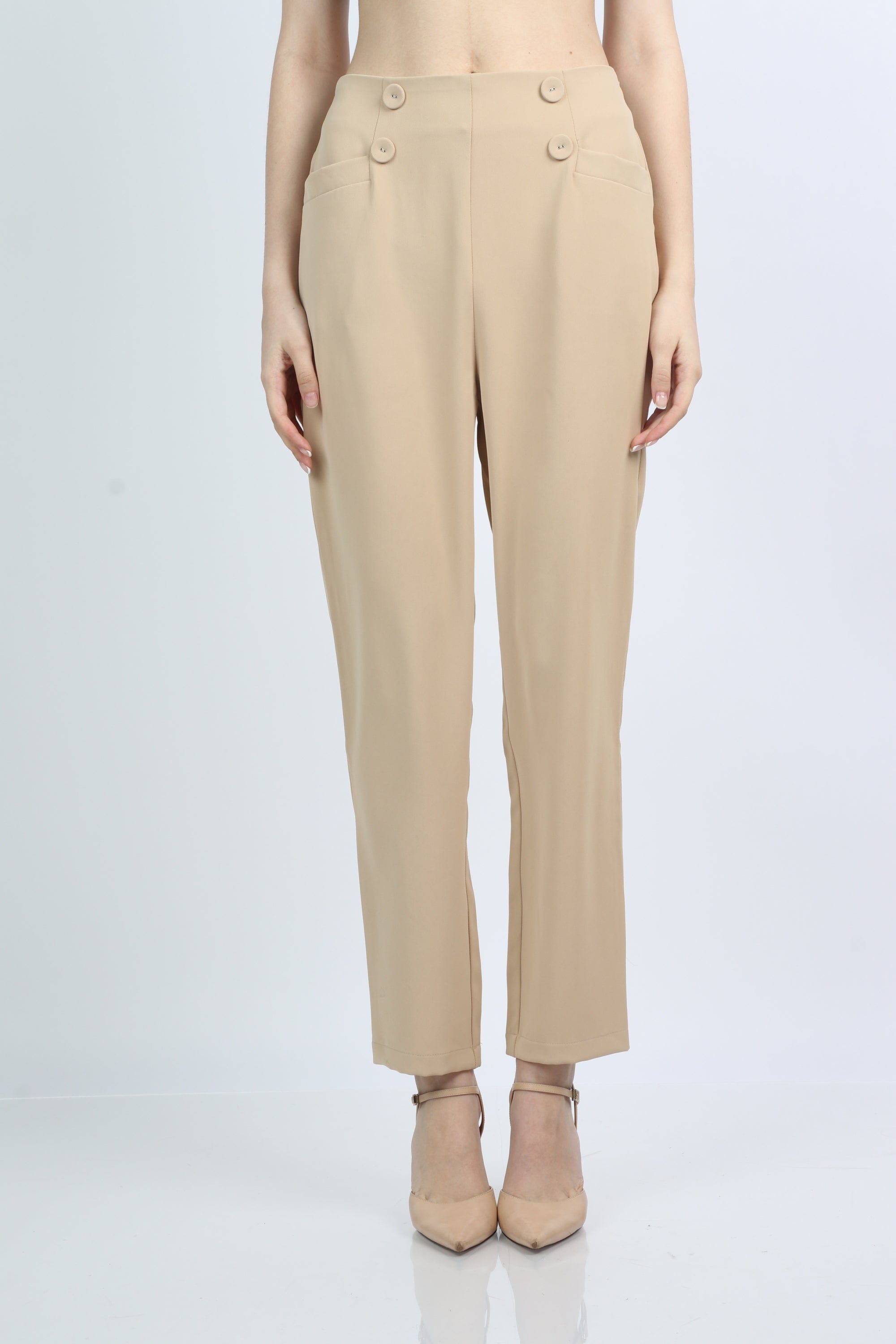 بنطلون رسمي هاي ويست بزراير على الخصر وسحاب طويل نسائي