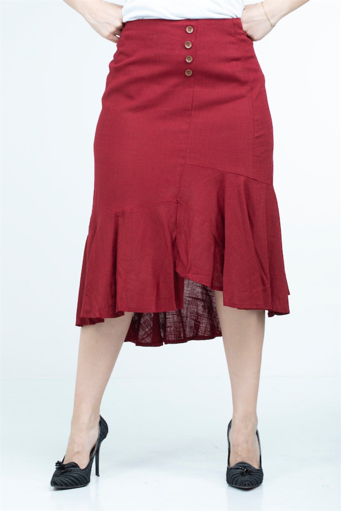 تنورة ميدي فسكوز بكلوش أسفل الخصر مزينة بأزرار أمامية