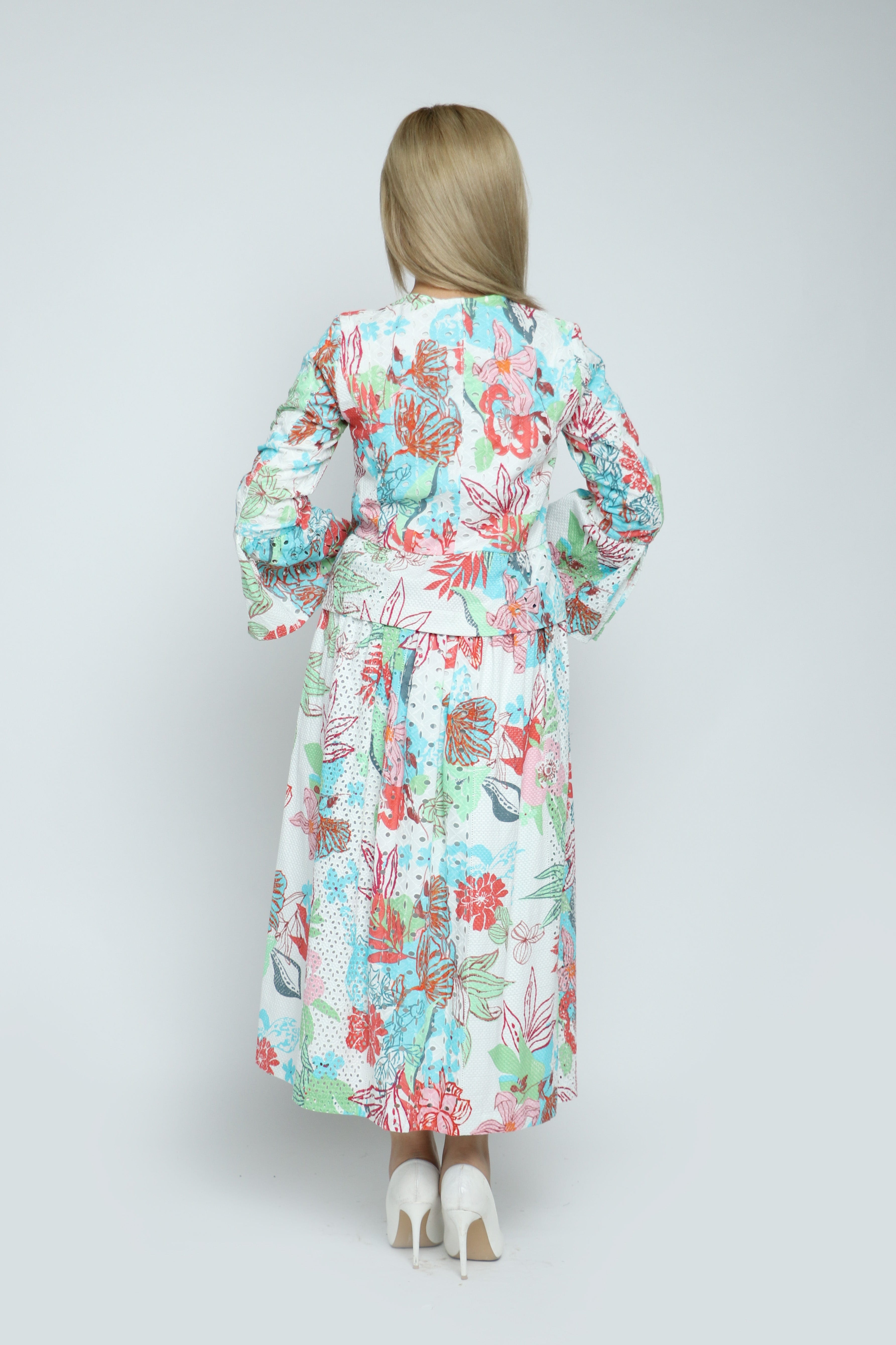 جاكيت منقوش بنقشة ورود كم طويل نسائي