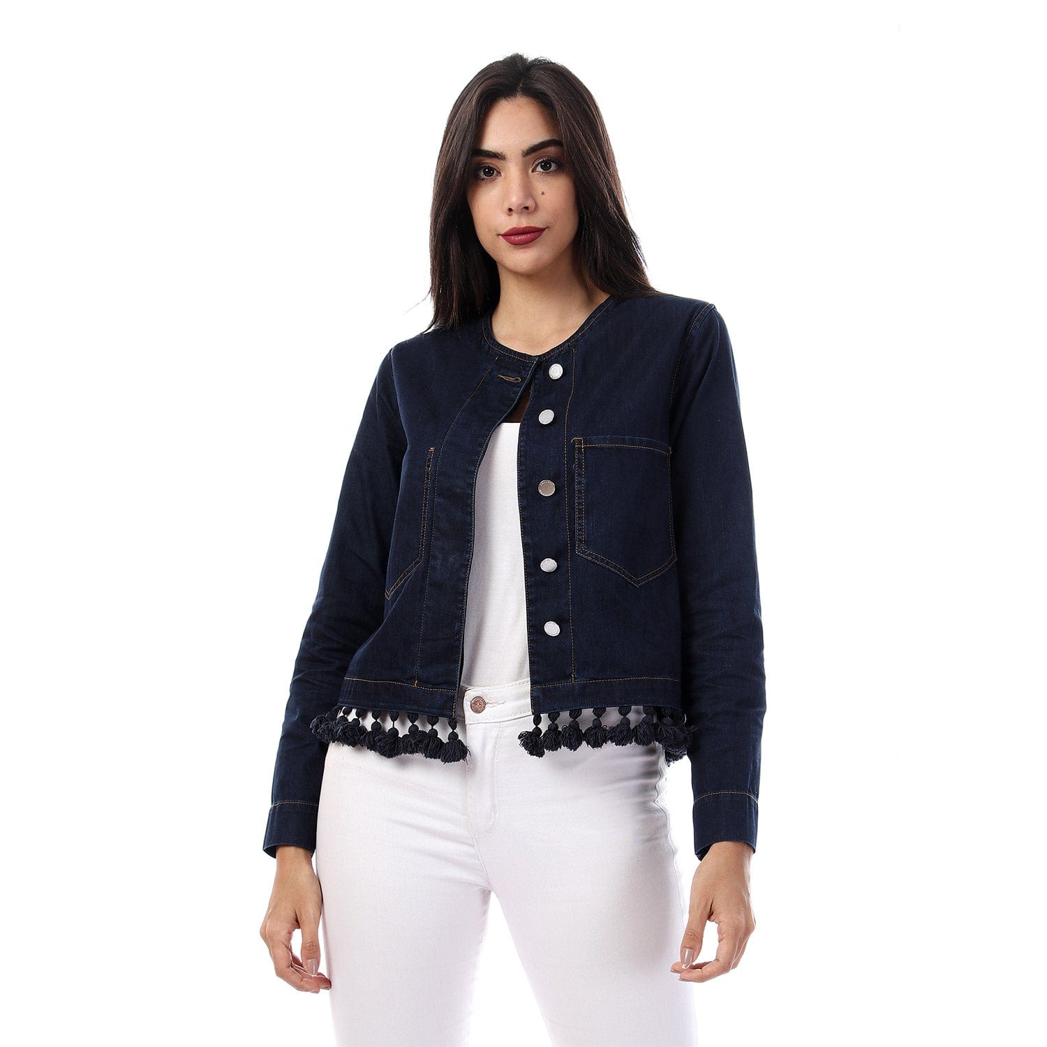 جاكيت قصير جينز بأزرار أمامية نسائي