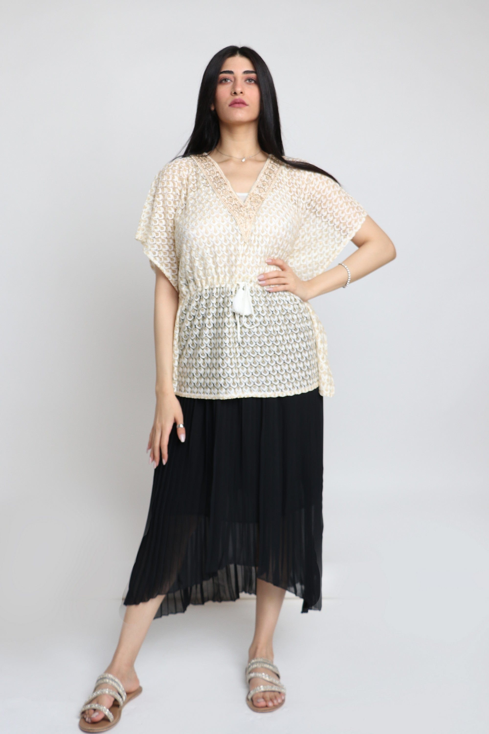 استمتعي بأناقة لا مثيل لها مع القفطان المخصر نص كم المفتوح من علامة داليدرس. يأتي هذا القفطان بلون الأوف وايت الجميل مع لمسات ذهبية تضفي لمسة من الفخامة. صُمم ليكون مريحًا وعصريًا، فهو مثالي للإطلالات المسائية والمناسبات الخاصة. يمكنك ارتداؤه مع فساتين أو بنطال لتاجدي إطلالة ساحرة. اجعلي لحظاتك مميزة مع هذا القفطان الرائع. احصلي عليه الآن عبر يولا السعودية وكوني دائمًا في قمة الأناقة! اطلبيه الآن واستمتعي بأفضل الخيارات. رقم المنتج: 24031436741