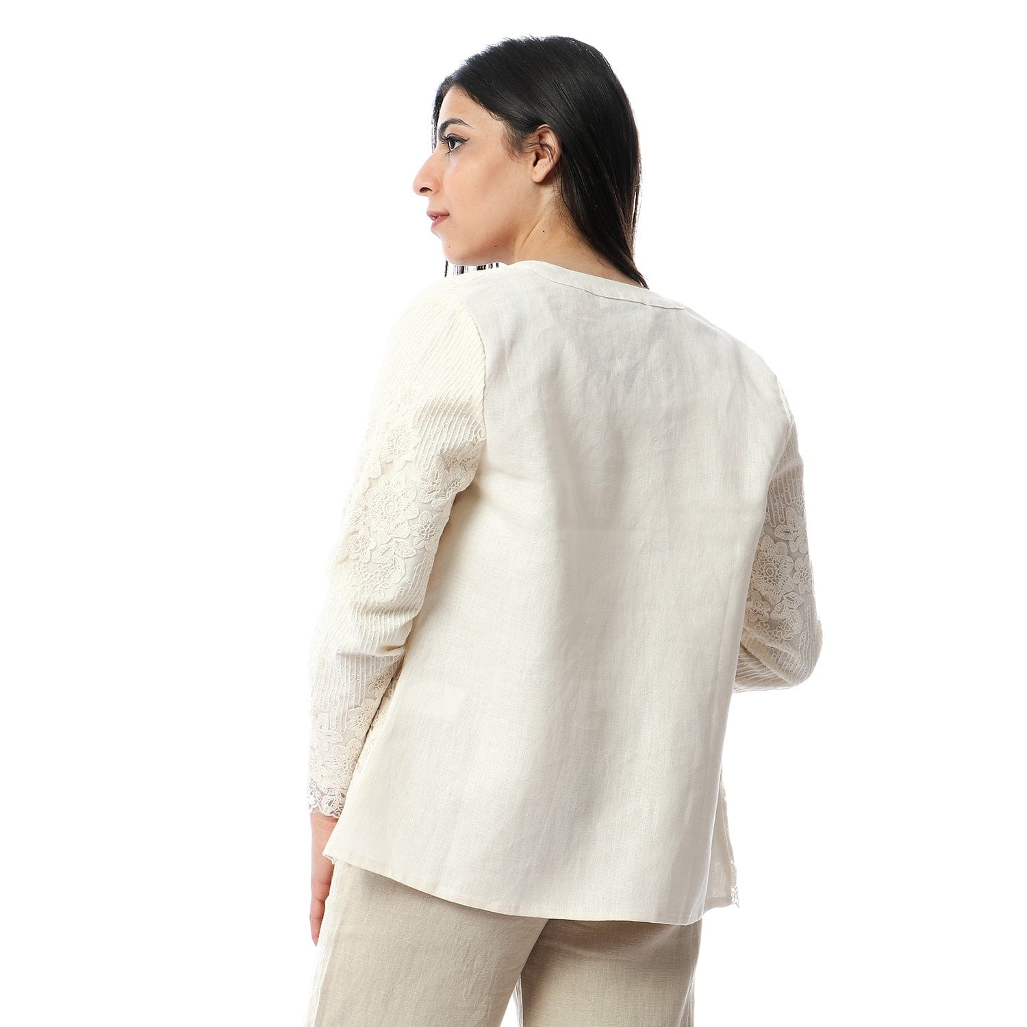 جاكيت دانتيل بأزرار أمامية كم طويل نسائي