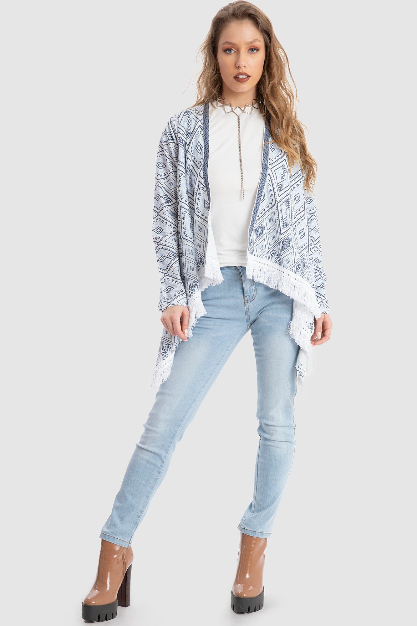 استمتعي بإطلالة مميزة مع الكارديجان القصير المنقوش بأكمام طويلة واسعة من داليدرس. يأتي هذا الكارديجان بلوني الأزرق والأبيض الجذابين، مما يجعله خيارًا مثاليًا لإضافة لمسة من الأناقة إلى ملابسك. مصنوع من خامات ناعمة توفر لك الراحة طوال اليوم، ويتميز بتصميمه العملي الذي يسهل ارتداؤه مع أي قطعة ملابس. يمكنك ارتداؤه مع فساتينك أو بنطلونك المفضل لتحصلي على إطلالة رائعة تناسب جميع المناسبات. لا تفوتي الفرصة، واطلبي الآن الكارديجان القصير المنقوش من يولا السعودية وكوني الأجمل دائمًا! رقم المنتج: 2607830103