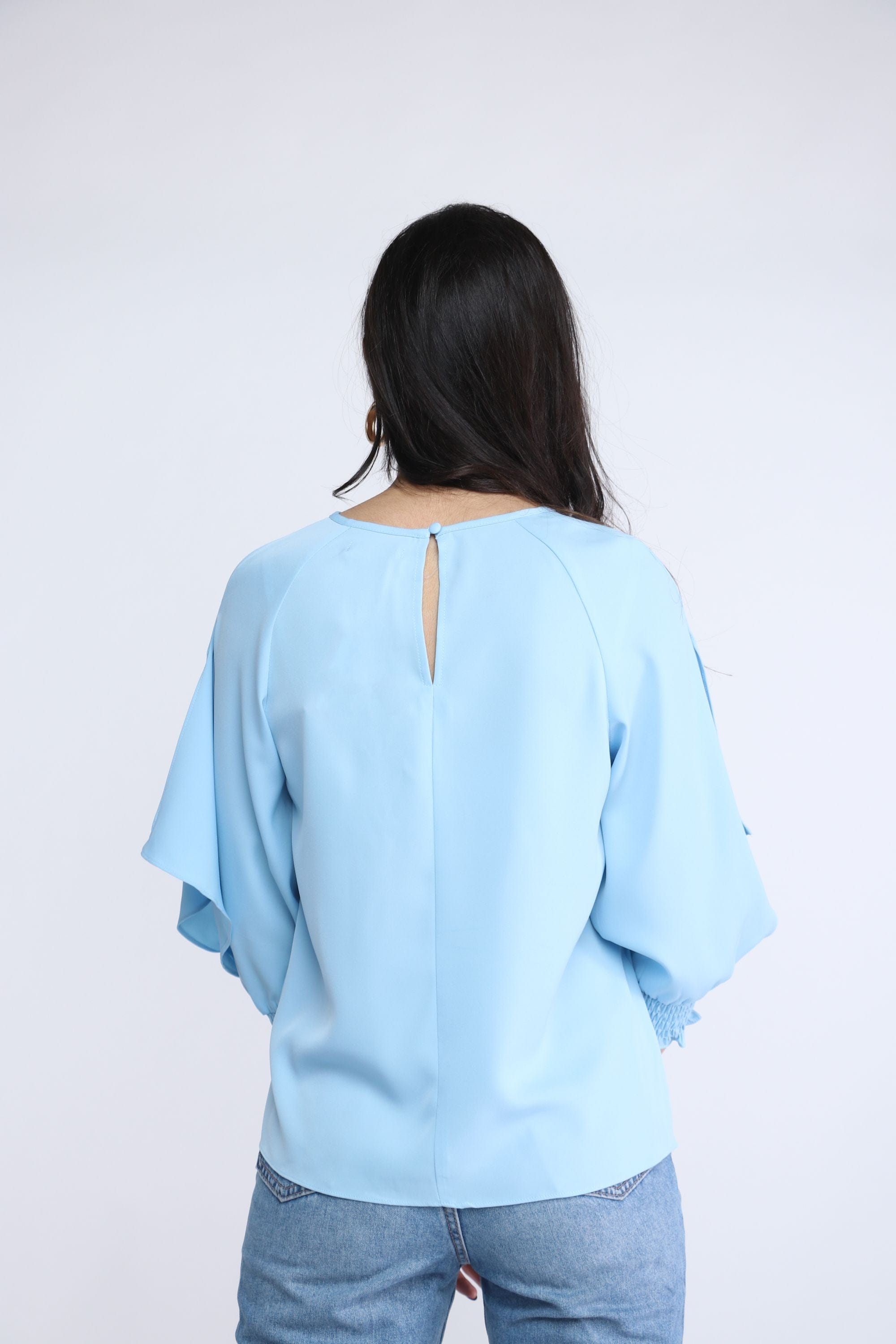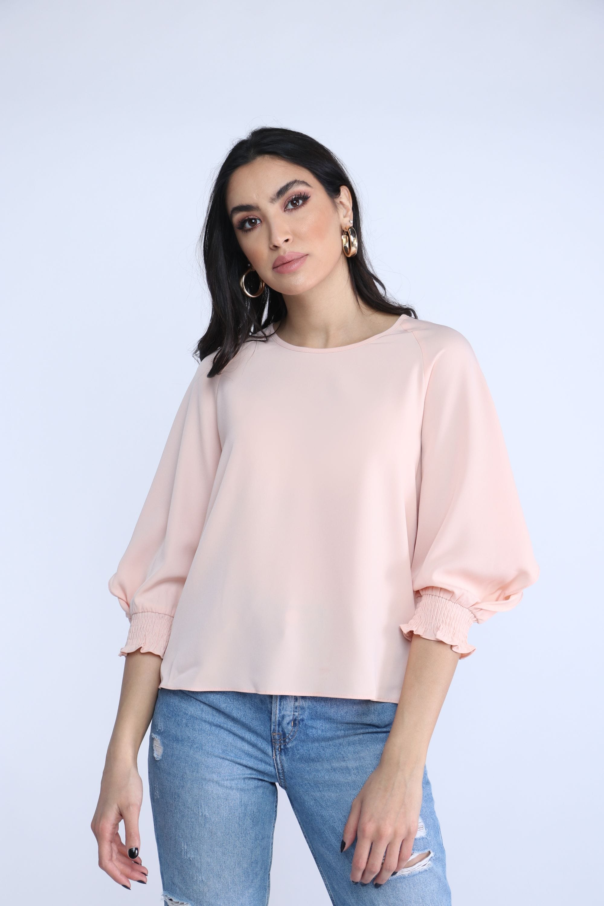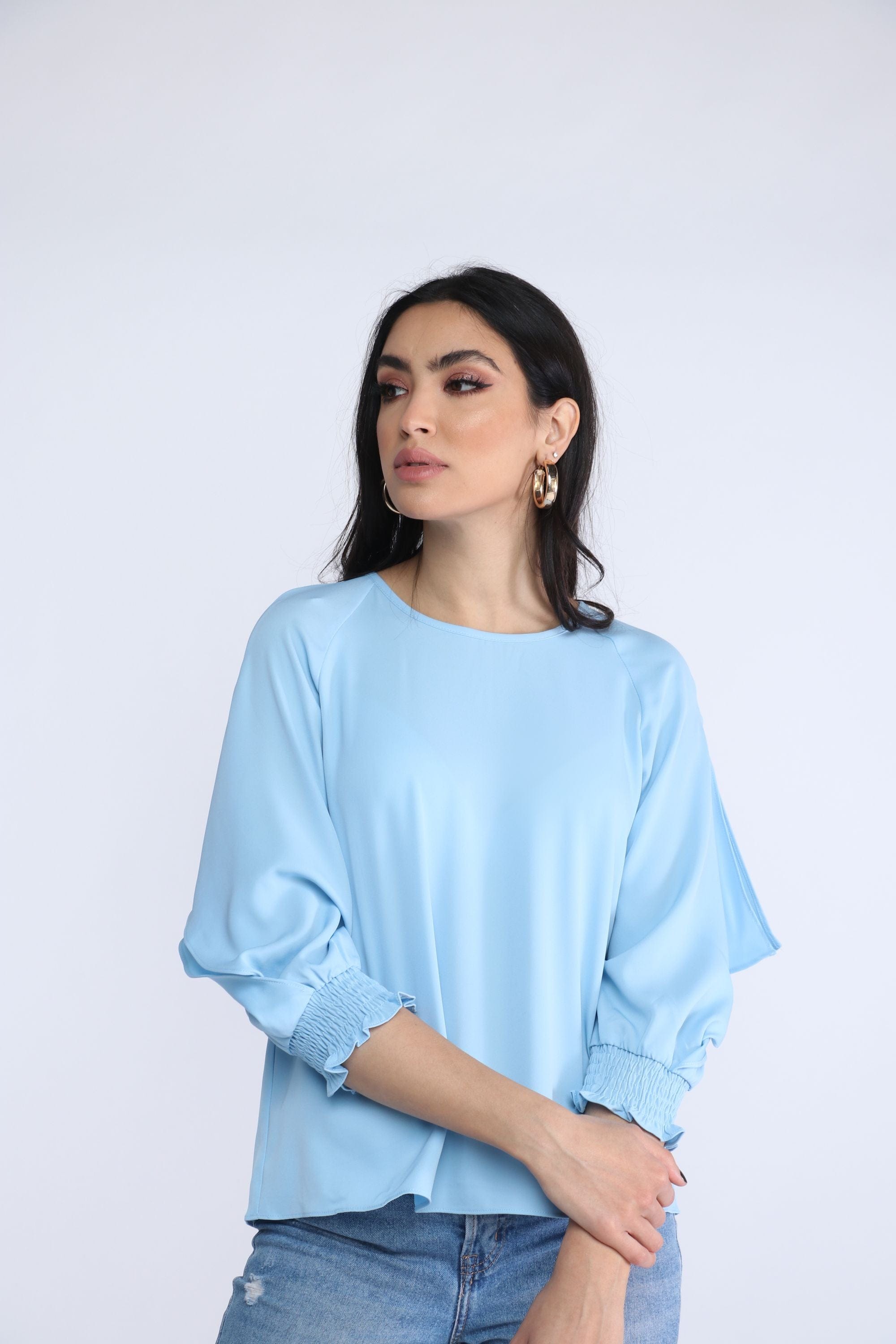 بلوزة سادة 3/4 كم أساور مكشكشة نسائي