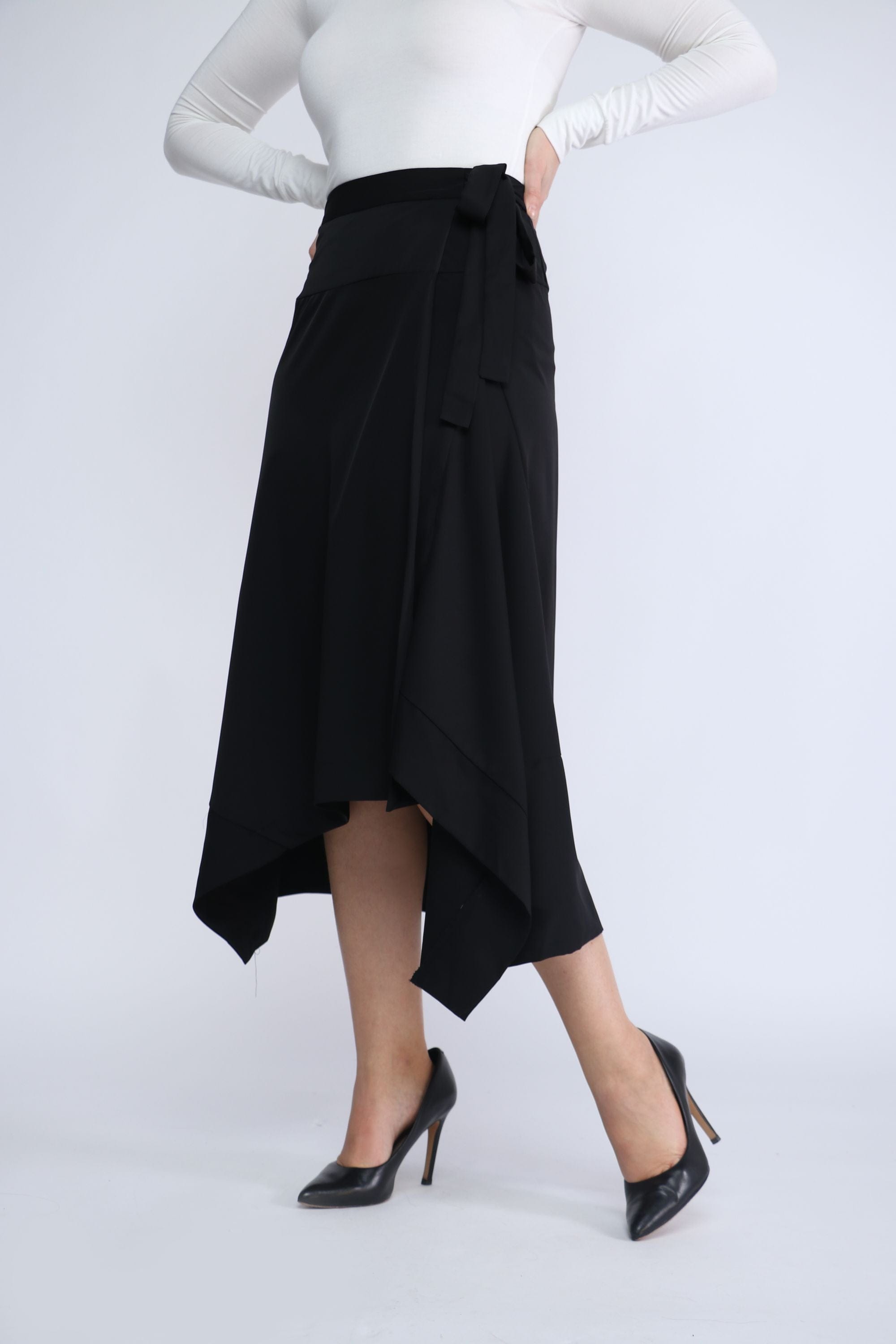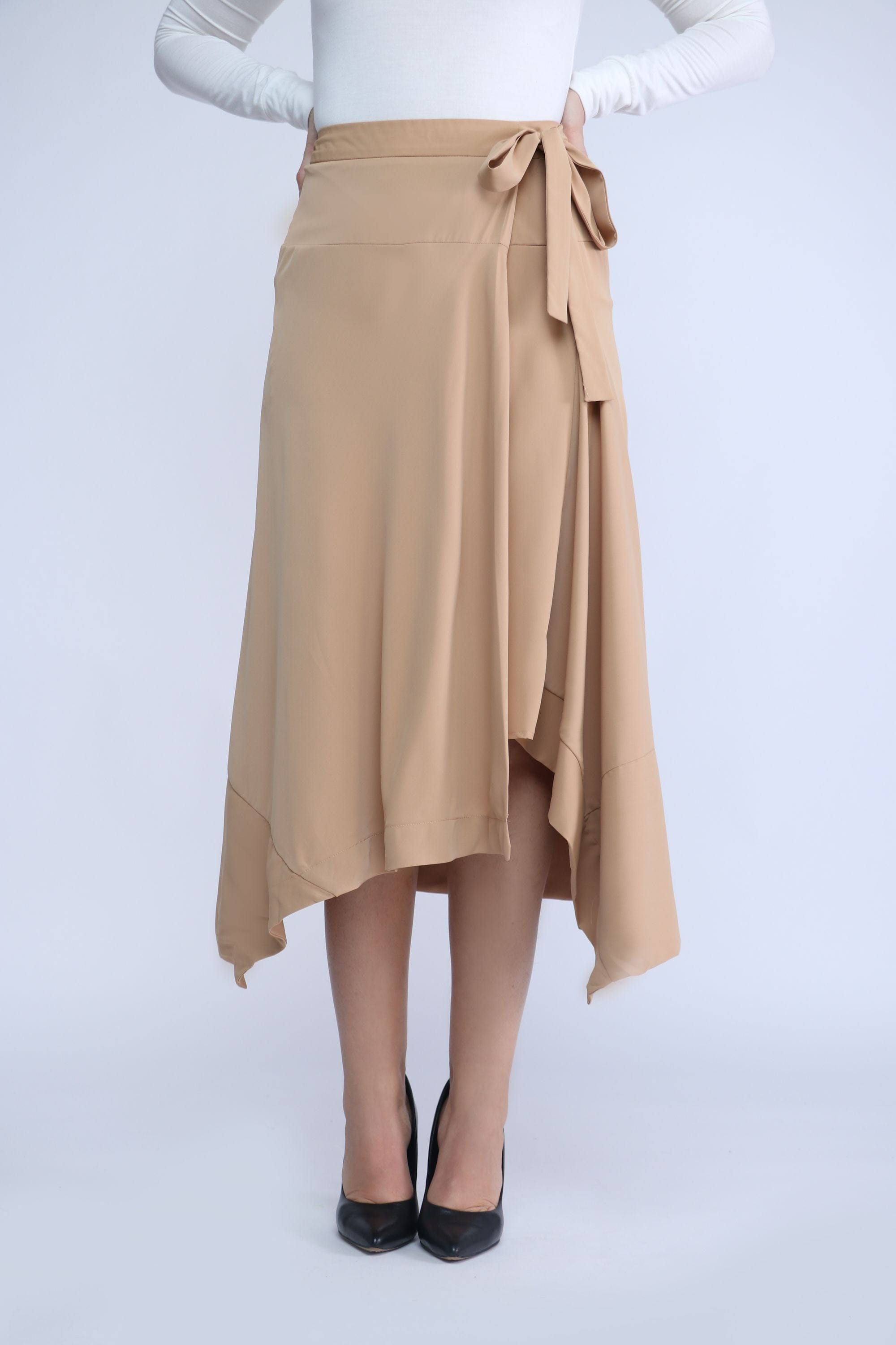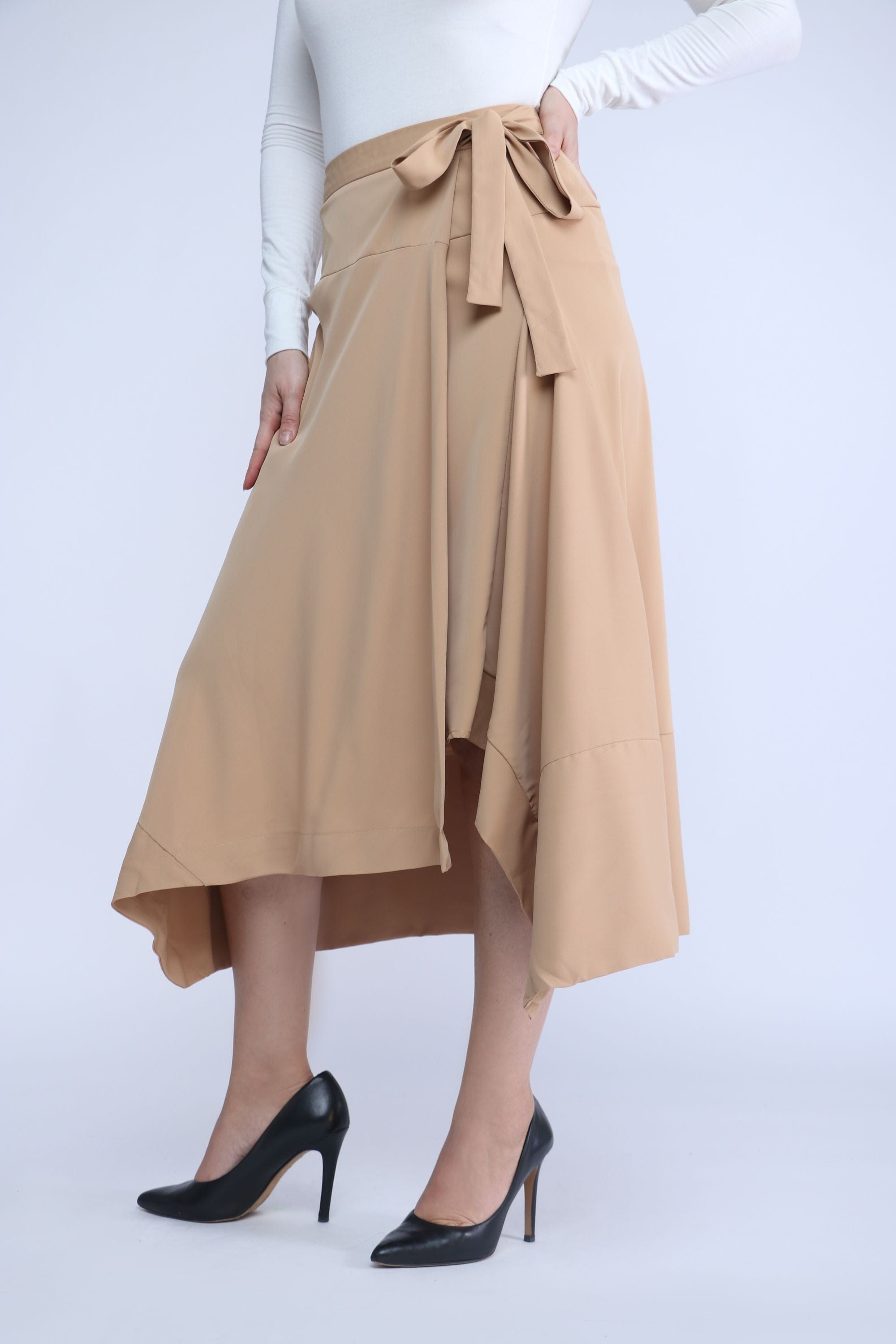تنورة ميدي بوليستر لف سادة برباط خصر