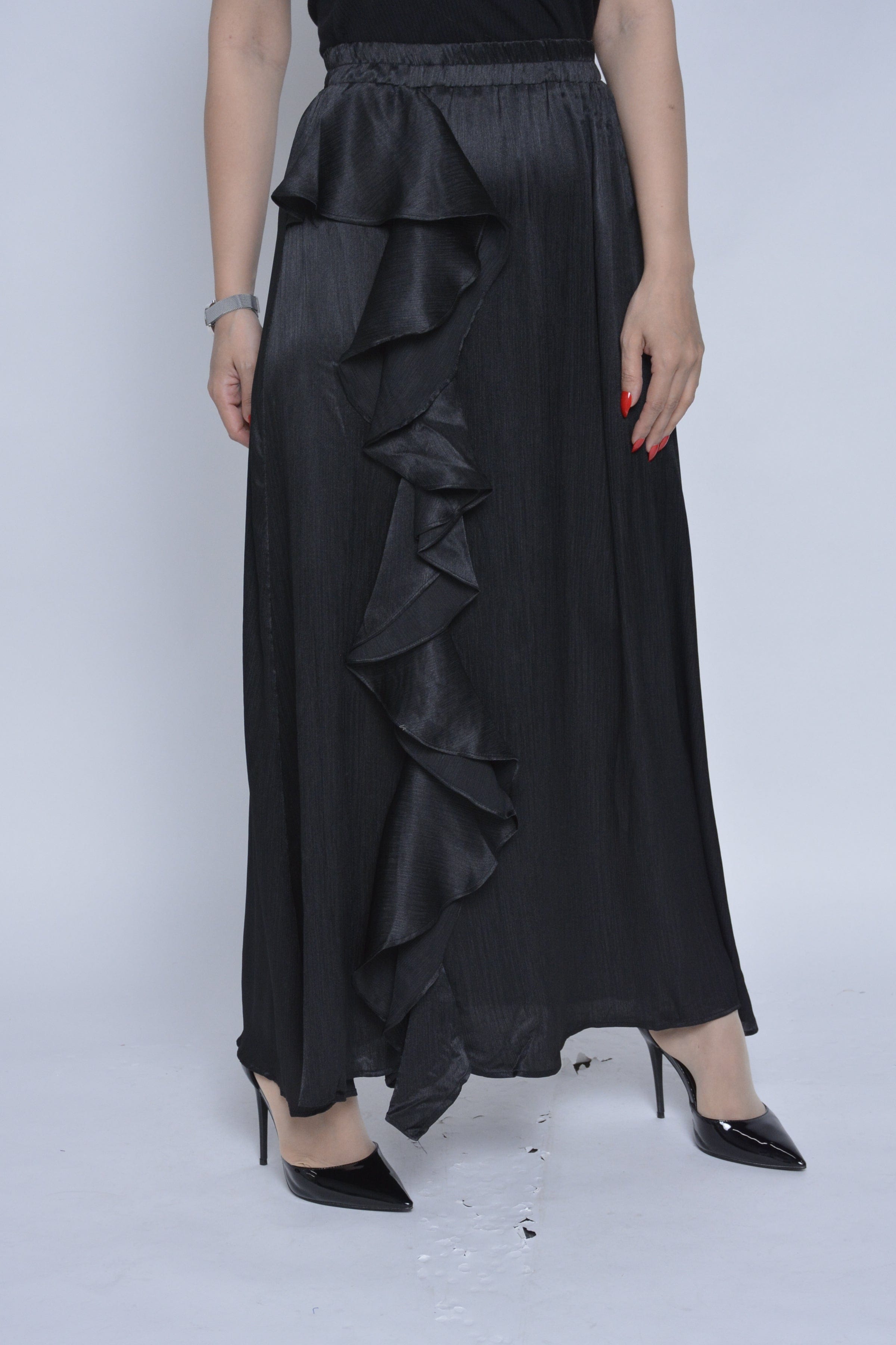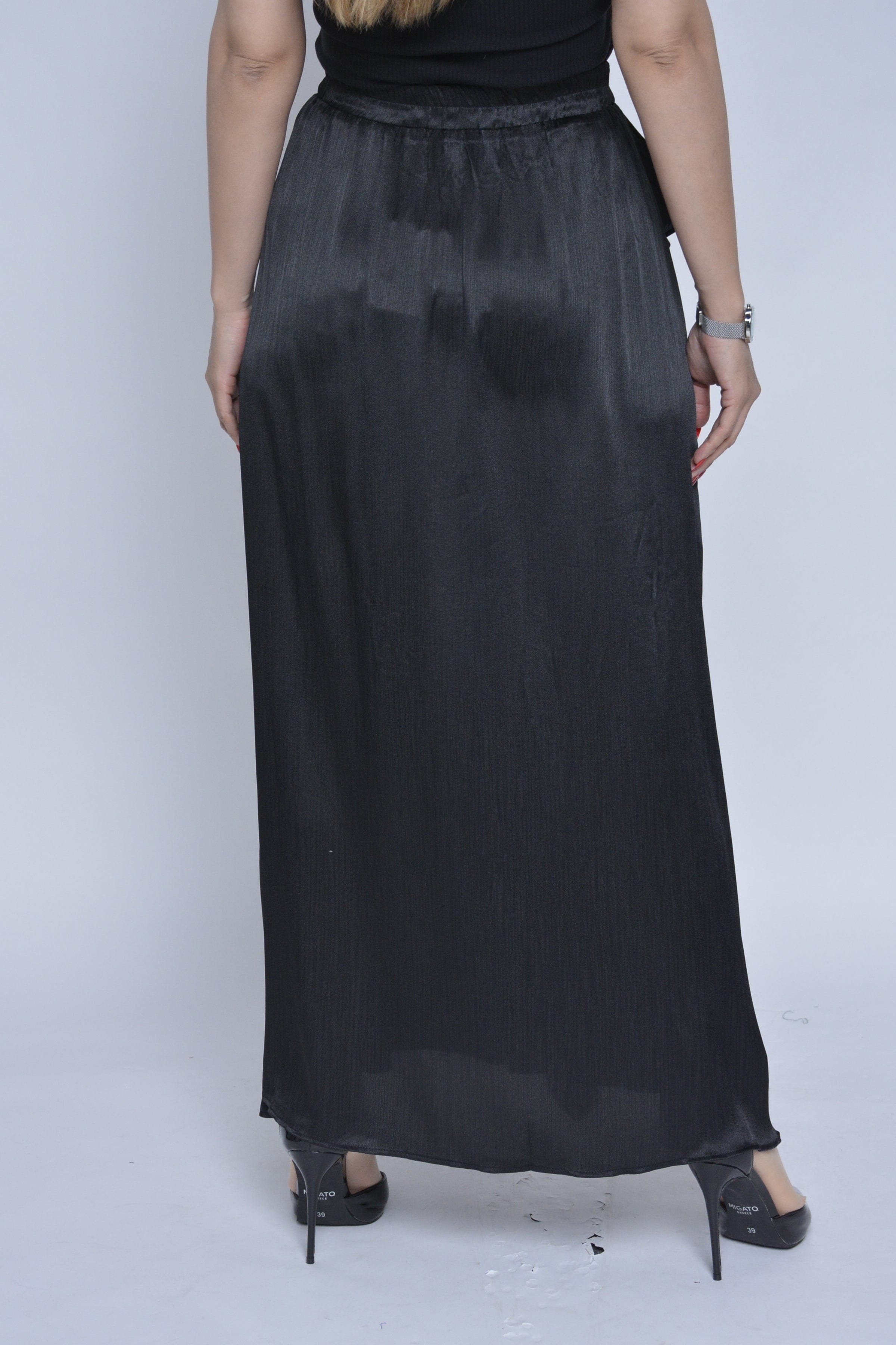 تنورة طويلة سادة لامعة بكشكش من أعلى لأسفل نسائية