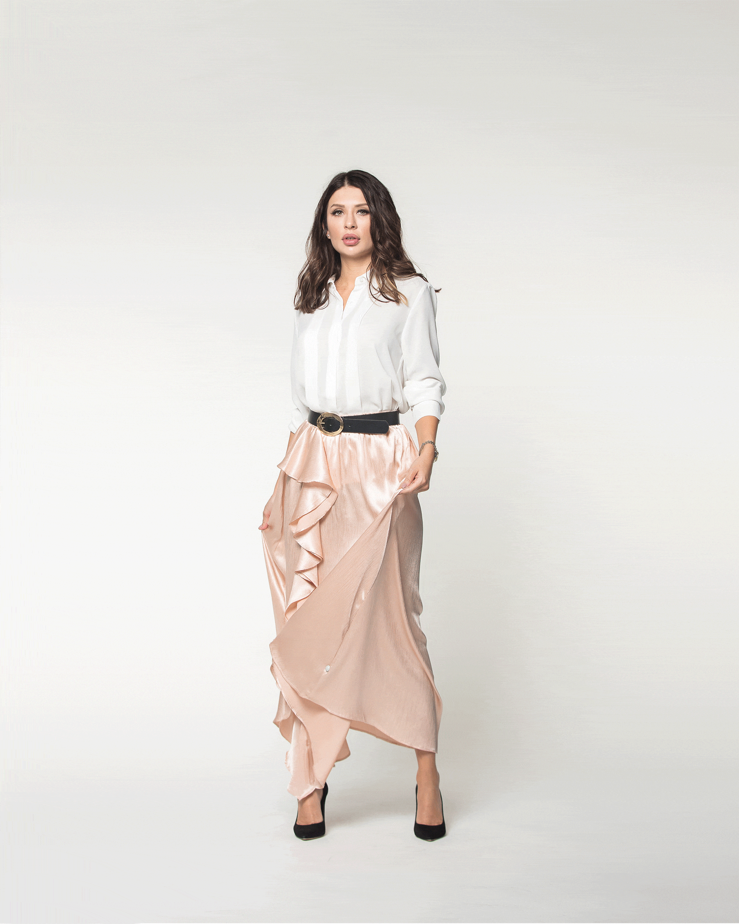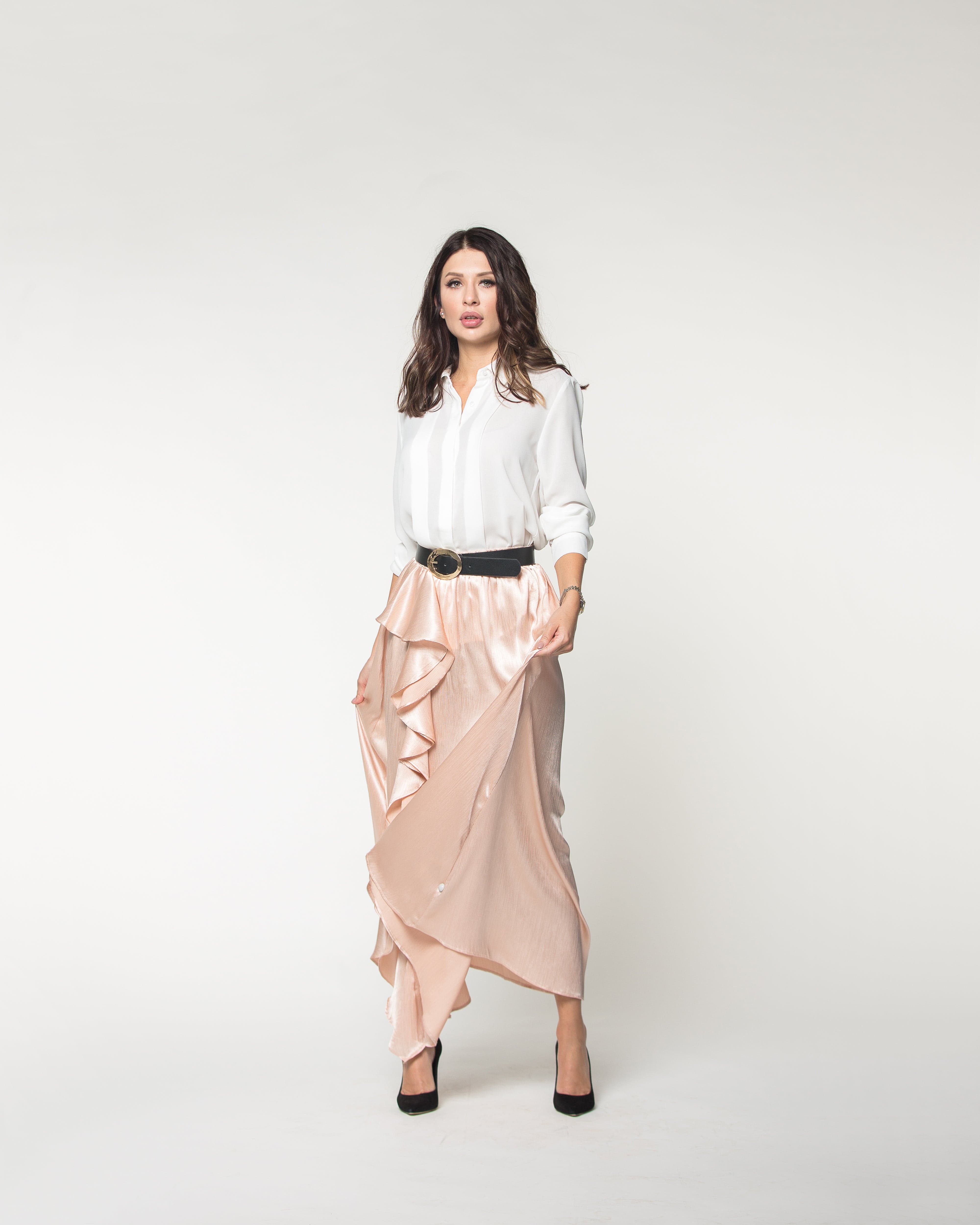 اكتشفي جاذبية الموضة مع تنورة طويلة سادة لامعة بكشكش من أعلى لأسفل للنساء. تألقي باللون الأسود الأنيق أو الخوخ الوردي الرائع، واشعري بالثقة والأناقة في كل مناسبة. تمتاز هذه التنورة بقصة طويلة ساحرة وتصميم بكشكش من أعلى لأسفل، مما يضفي لمسة من الأنوثة والجاذبية على إطلالتك. صنعت من خامة عالية الجودة لتضمن الراحة طوال اليوم. احصلي على هذه التنورة الرائعة الآن وامنحي نفسك إطلالة ساحرة ومميزة. اطلبي الآن عبر فاشن السعودية واستمتعي بالأناقة والتميز في كل وقت. رقم المنتج: lc1923-20q203