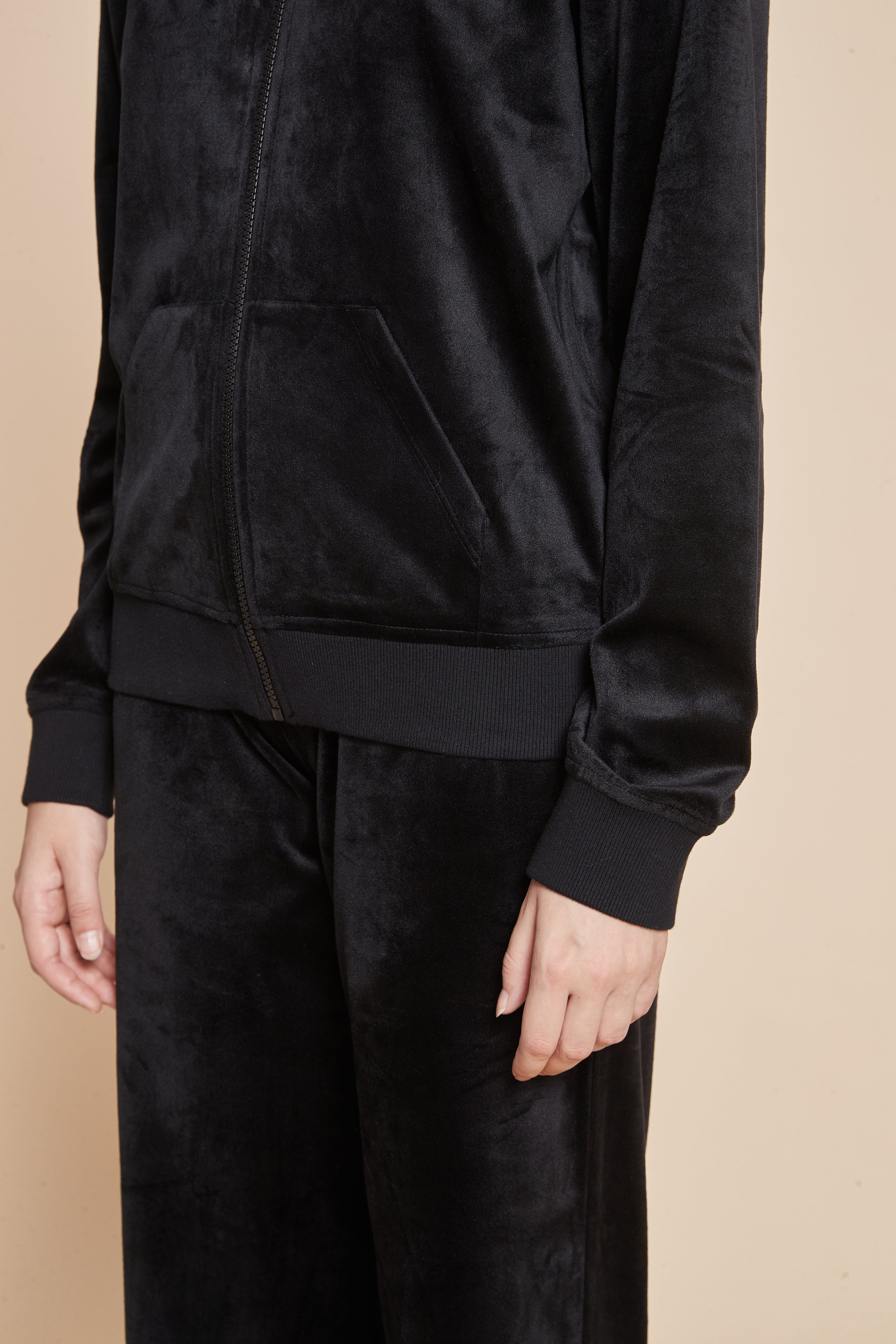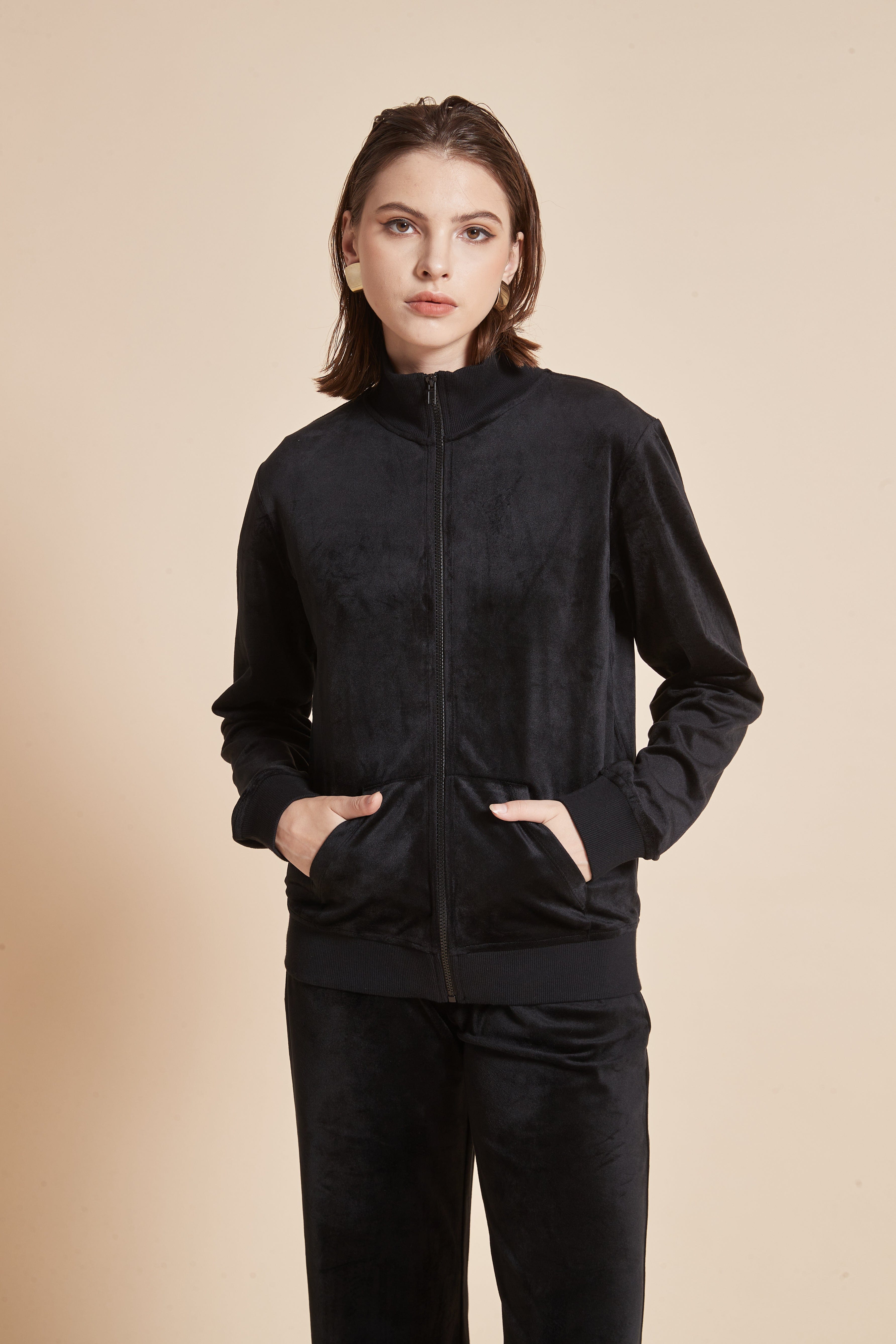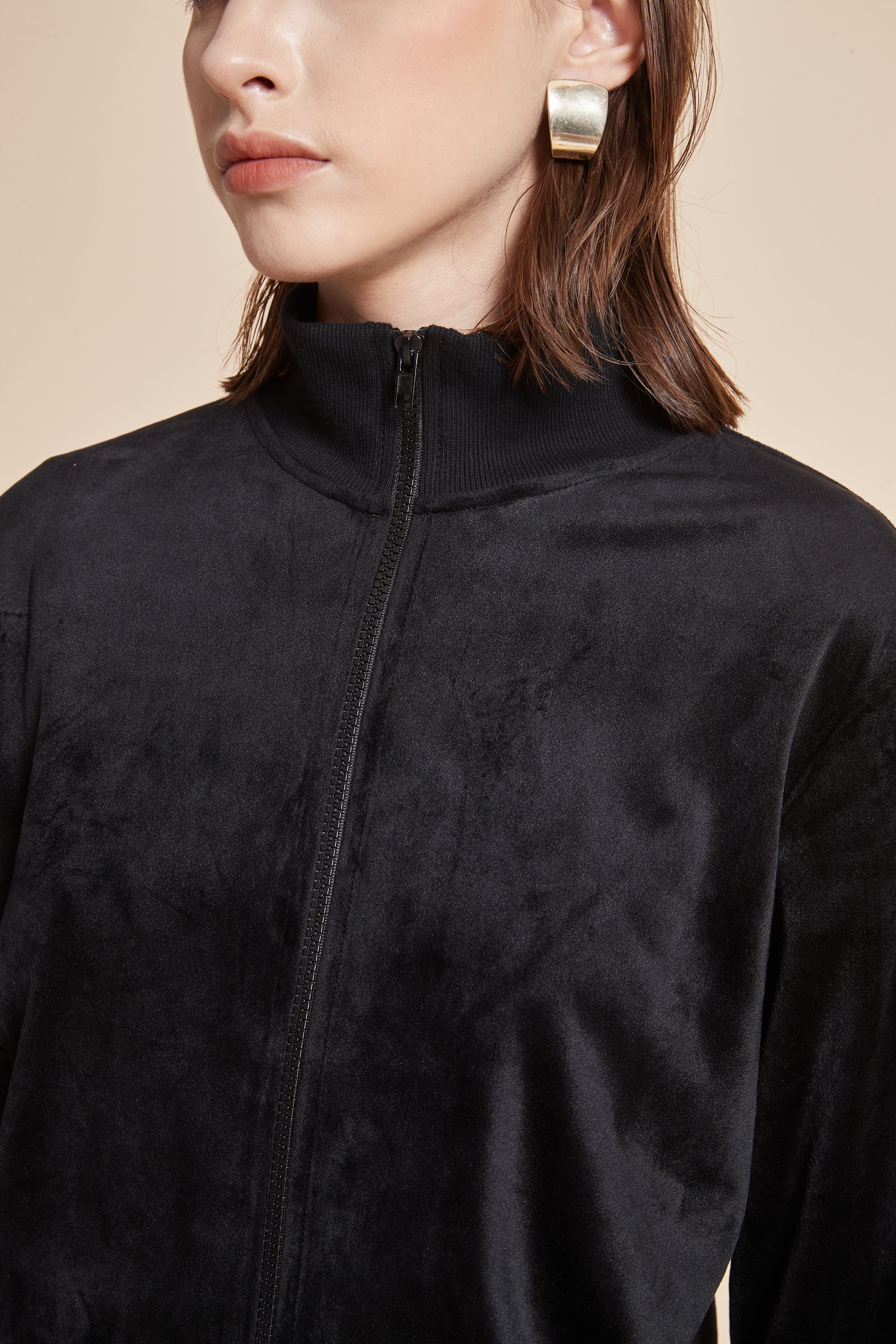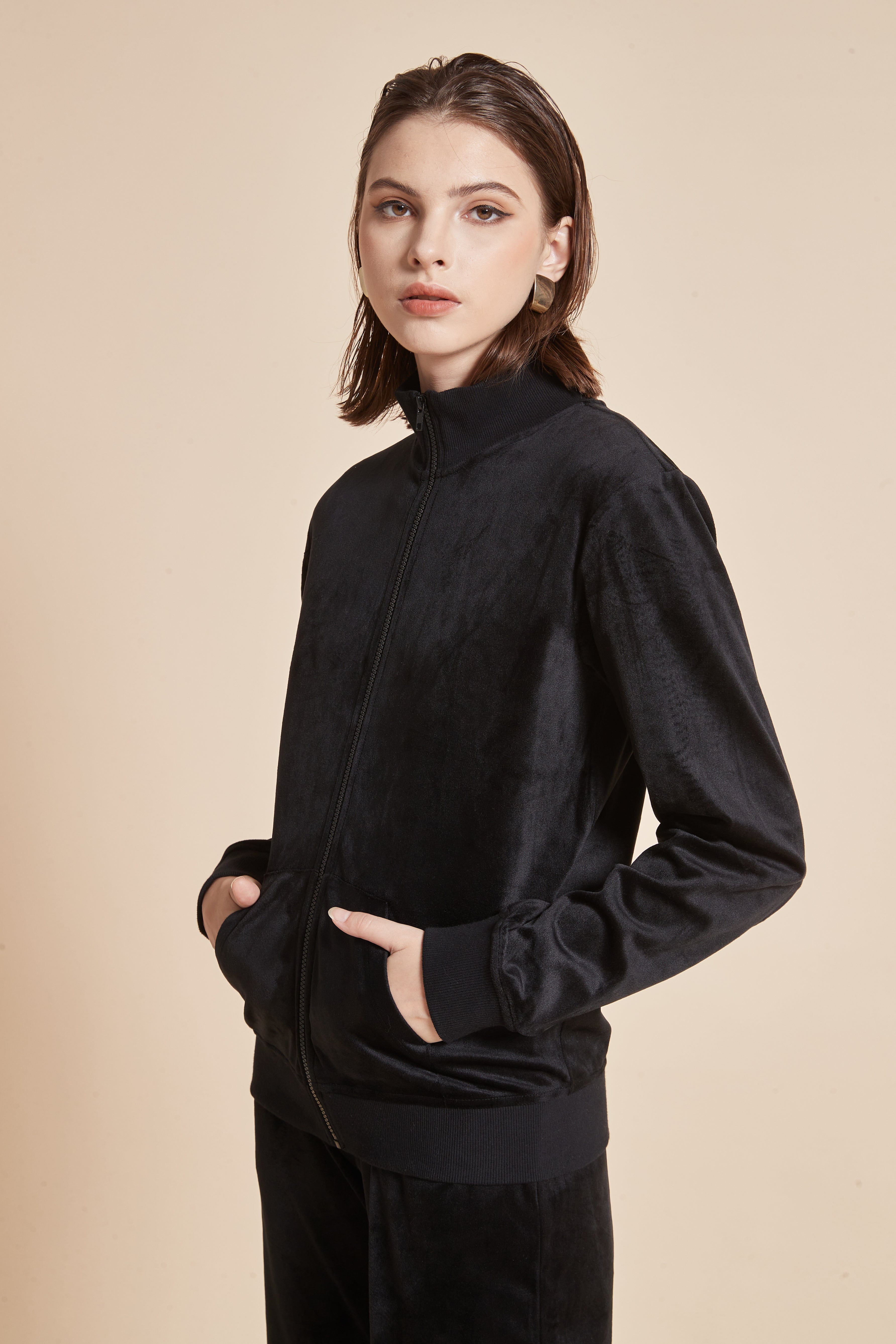 جاكيت مخملي بكم طويل وسحاب أمامي مع جيوب