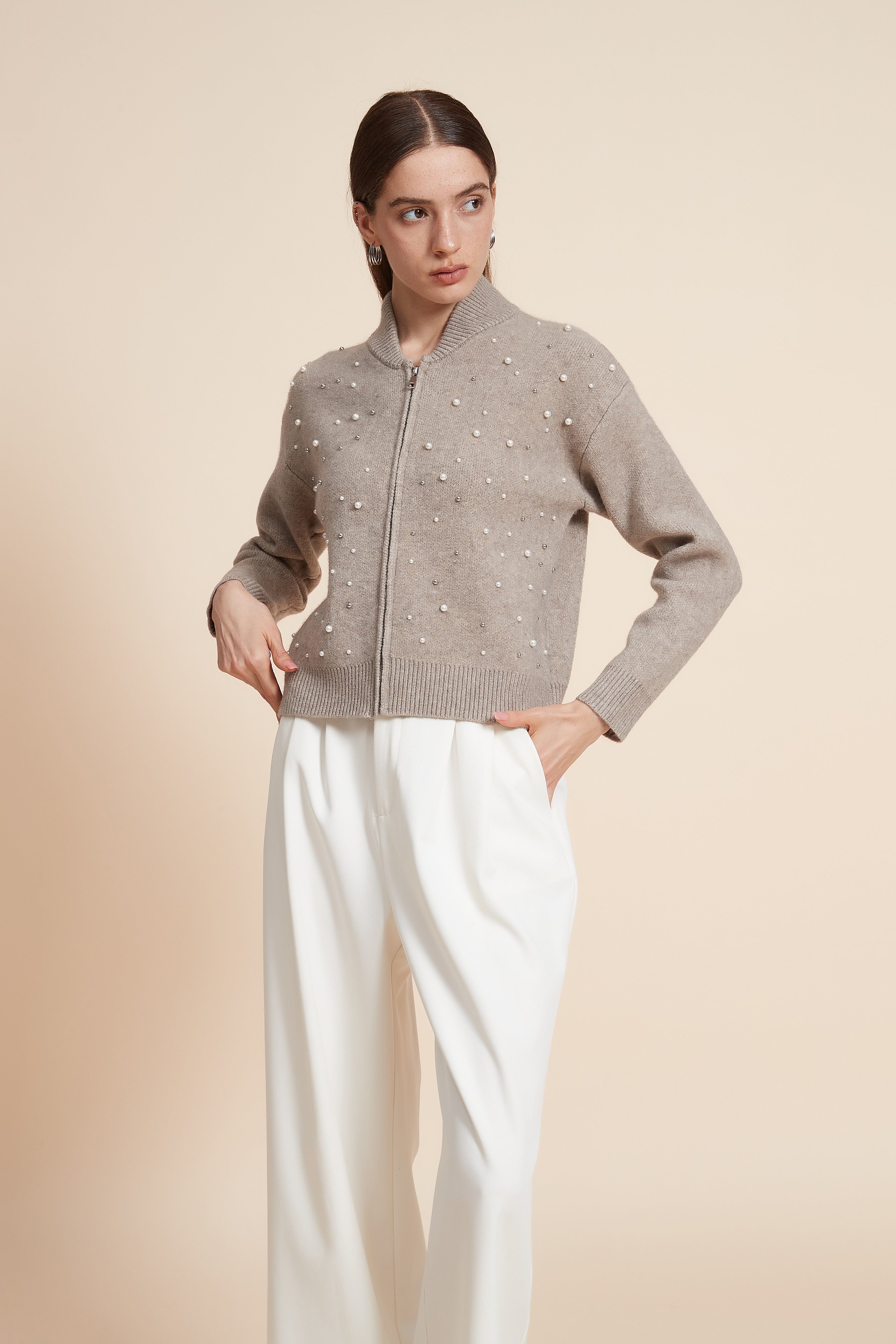 سويت شيرت قصير سادة مزين بلولي بسحاب