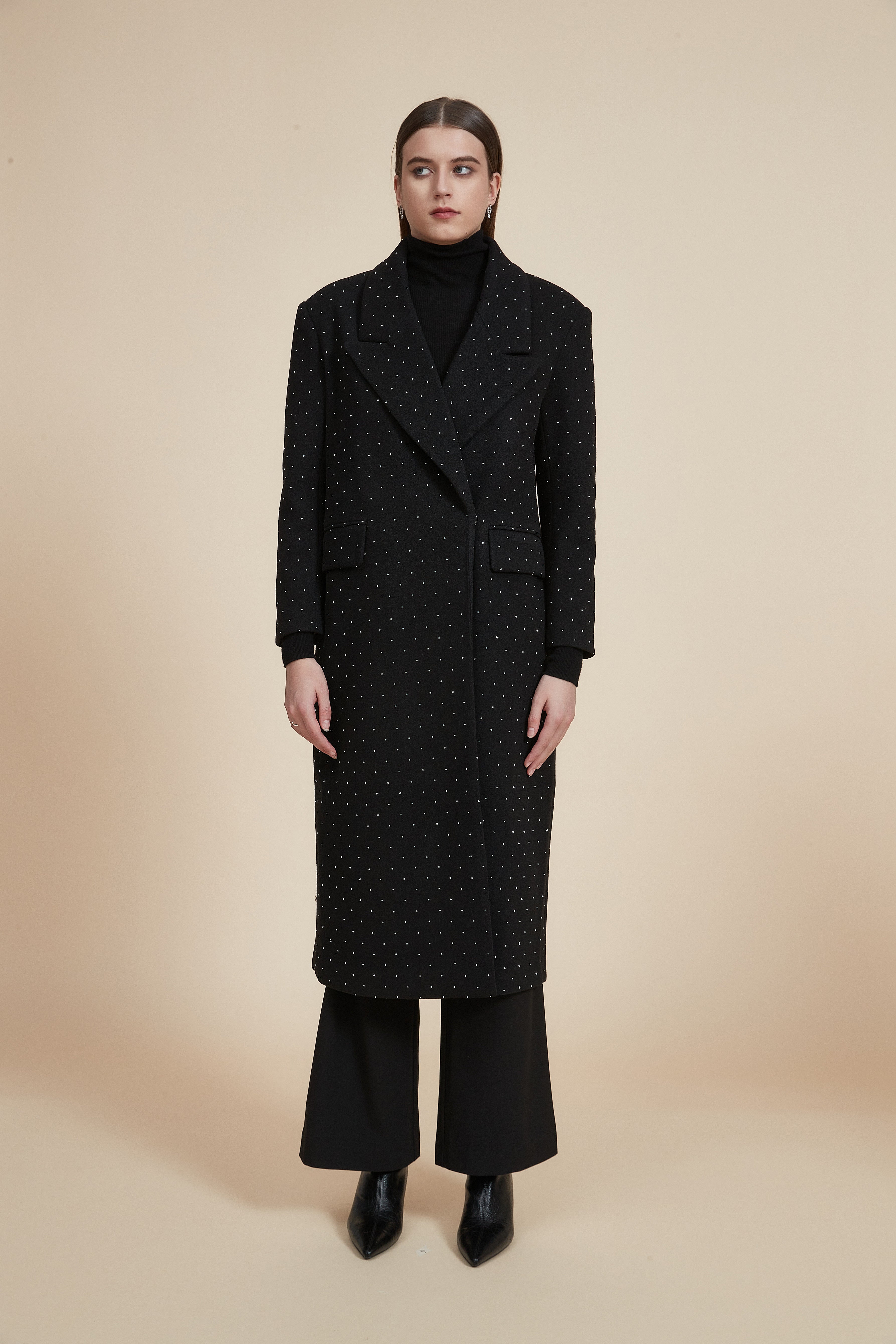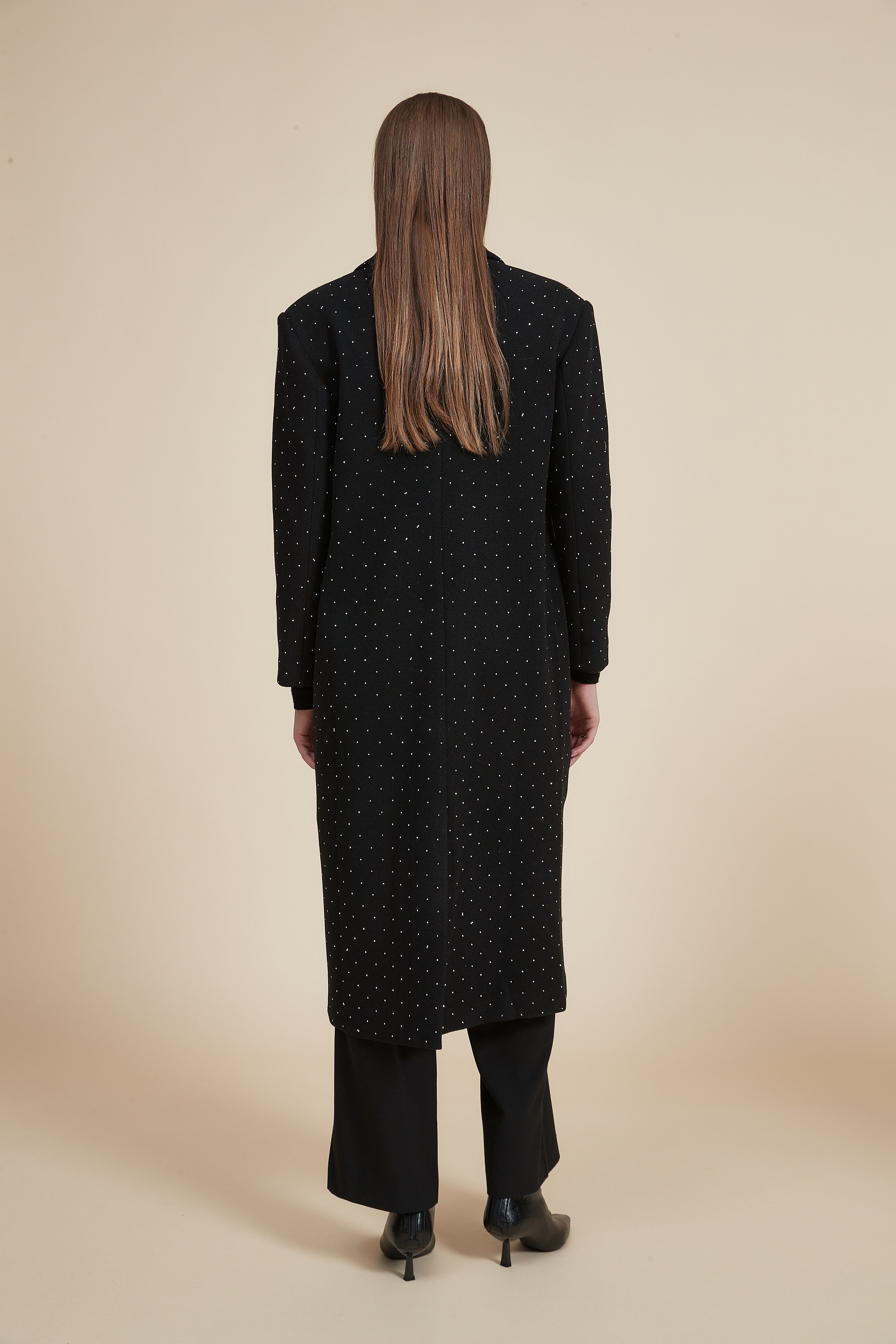 جاكيت طويل بجيوب أمامية وكم طويل منقط