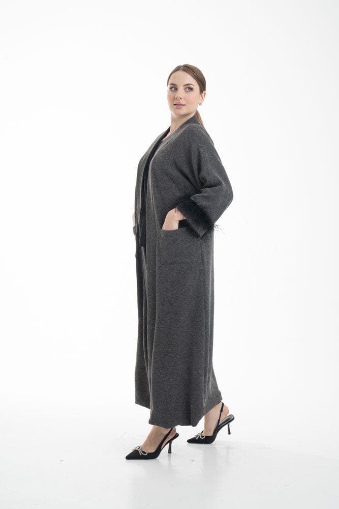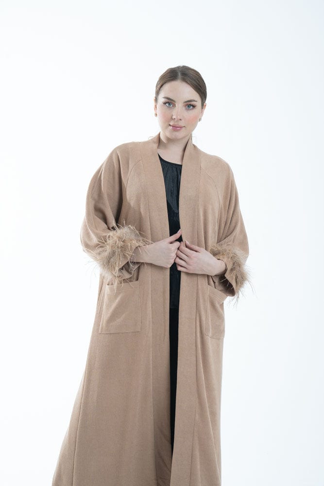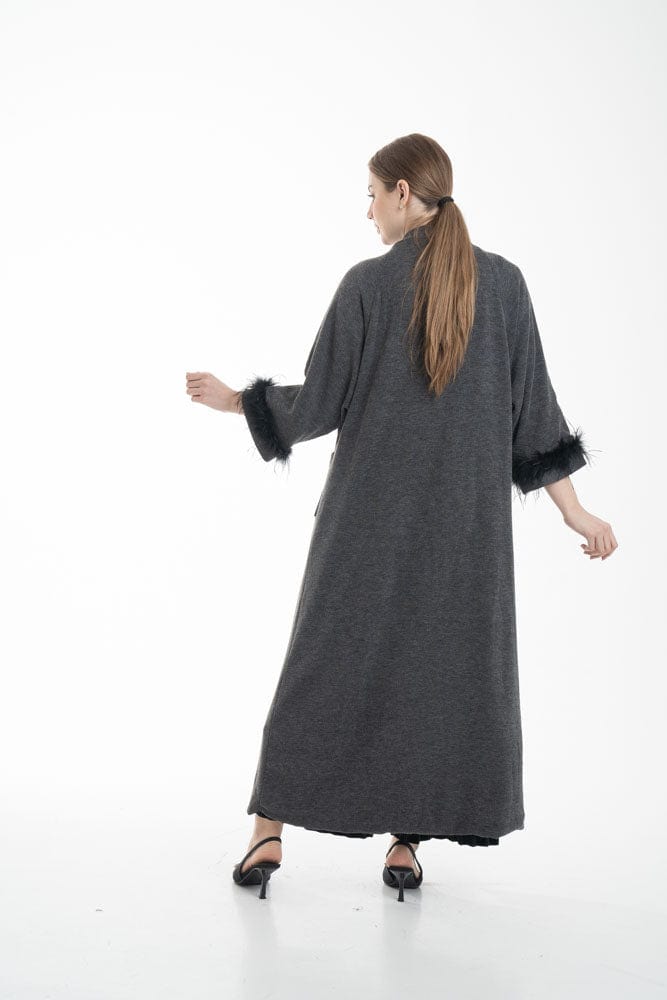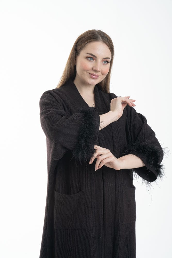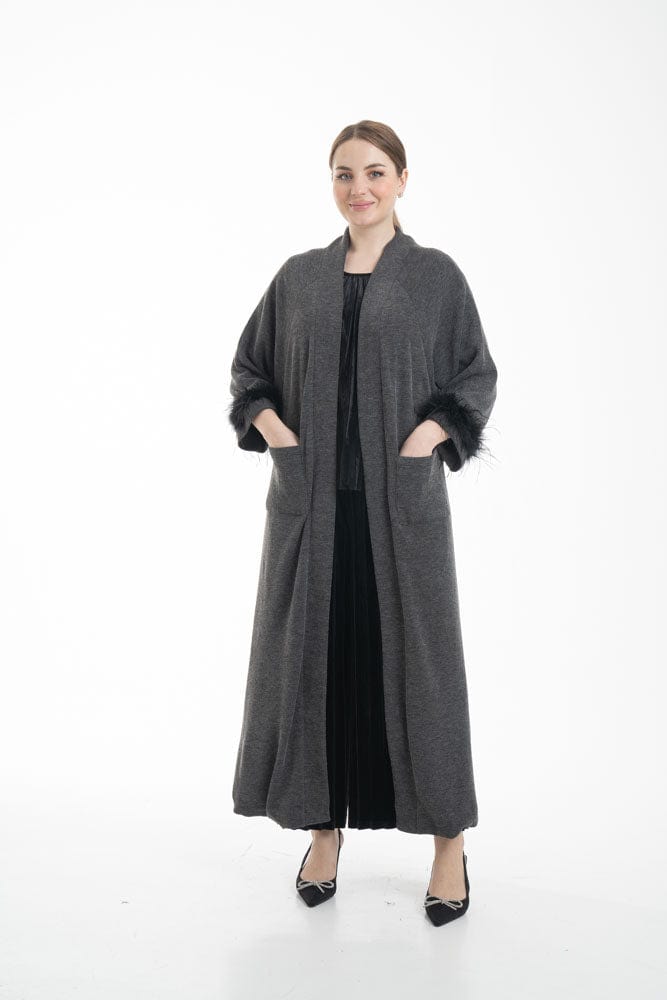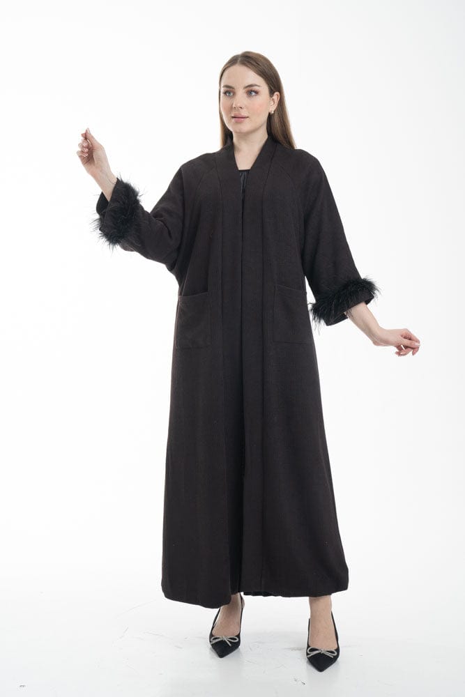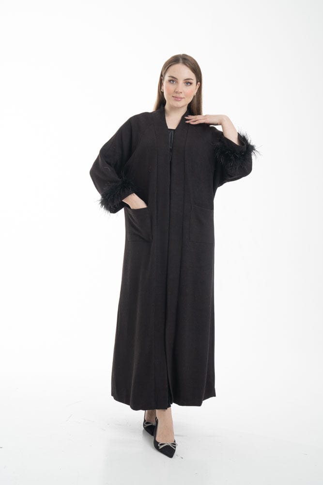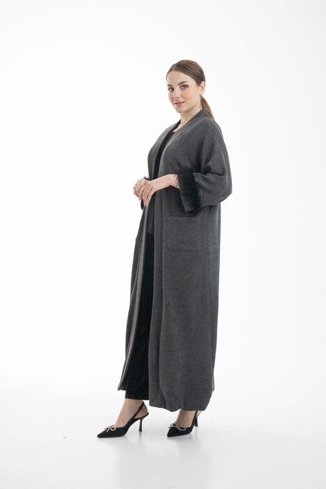 بالطو نسائي بأكمام طويلة مزين بفرو وجيوب أمامية