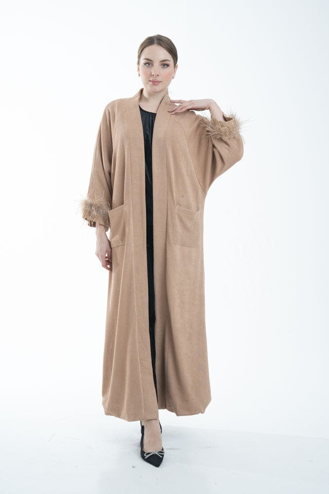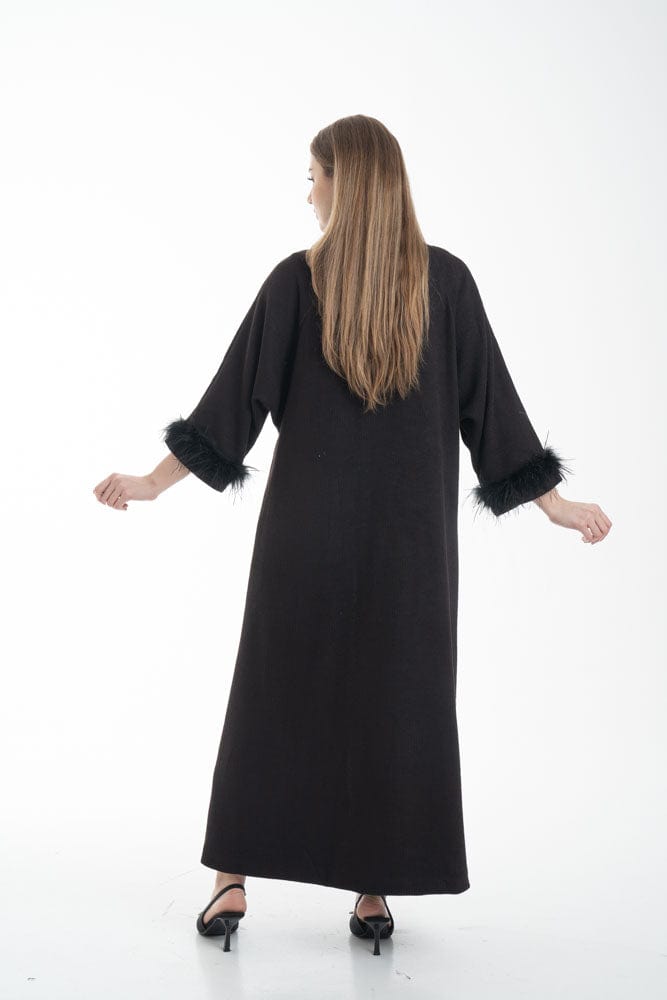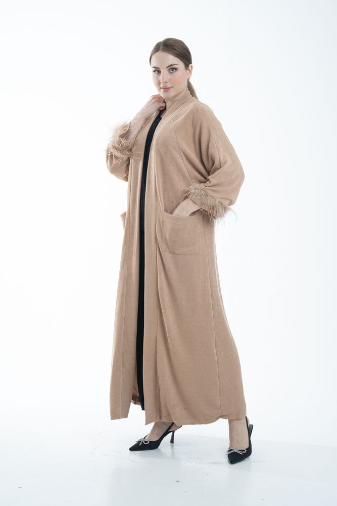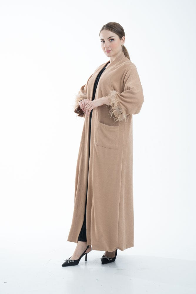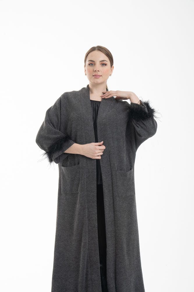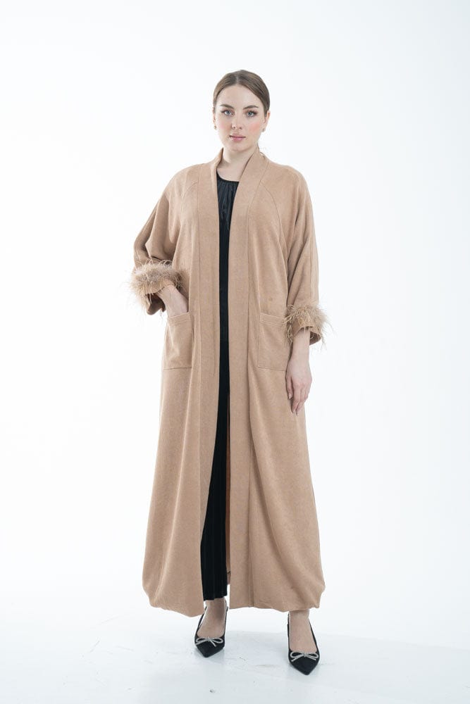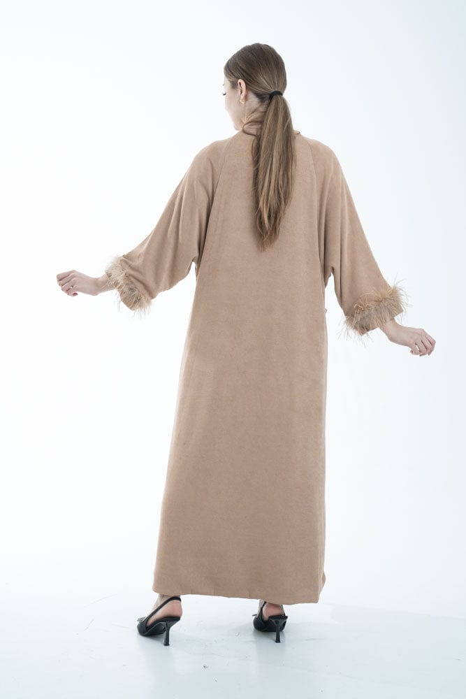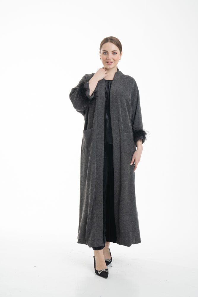 بالطو نسائي بأكمام طويلة مزين بفرو وجيوب أمامية