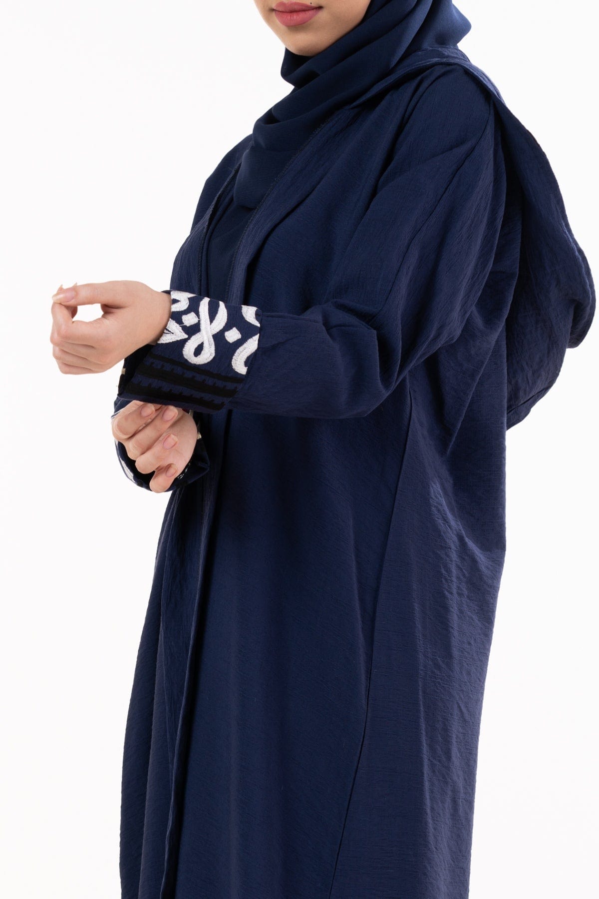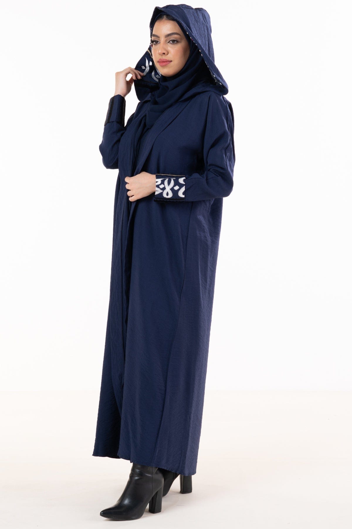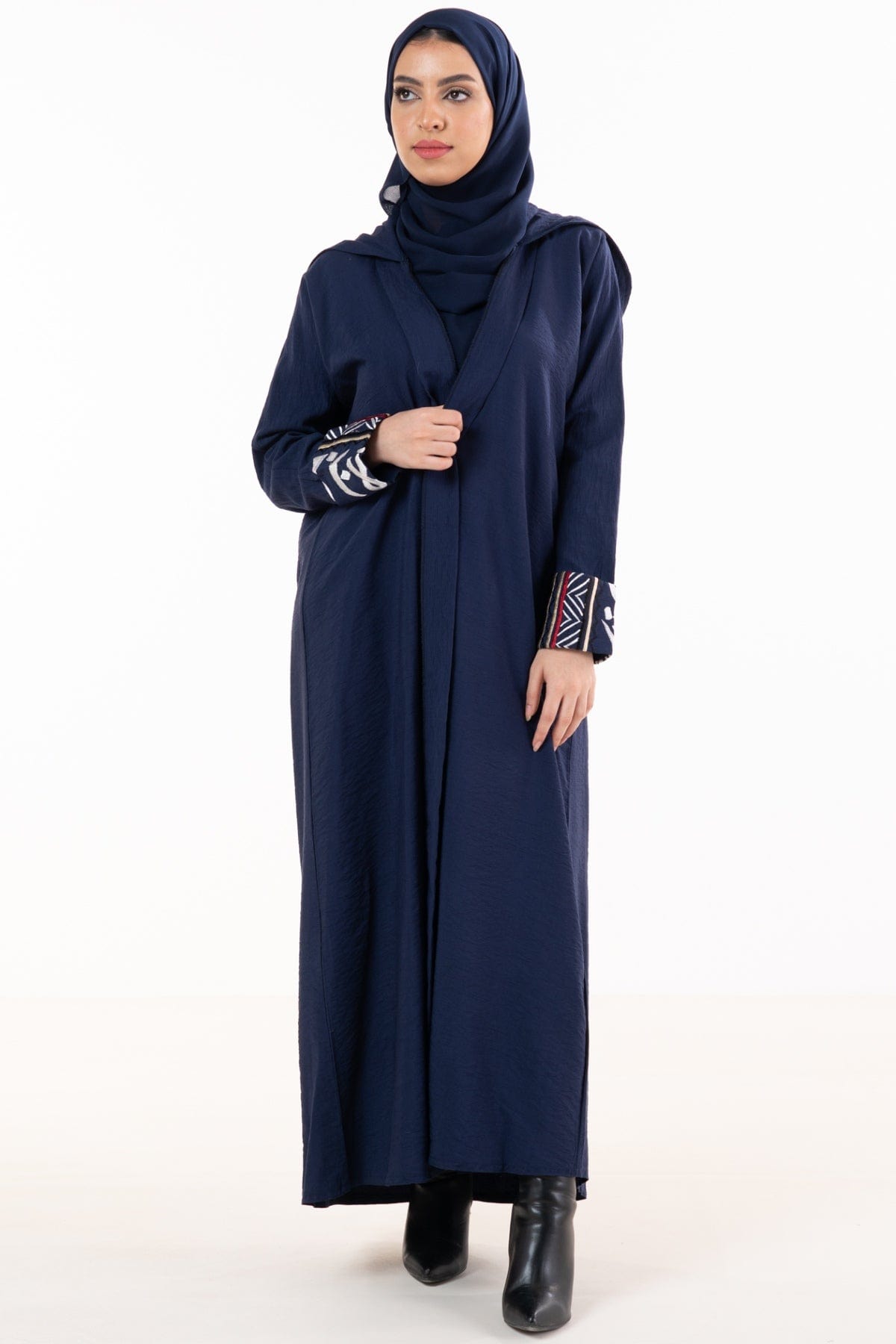 عباية كتان كلاسيك بمعصم ملون مع غطاء رأس