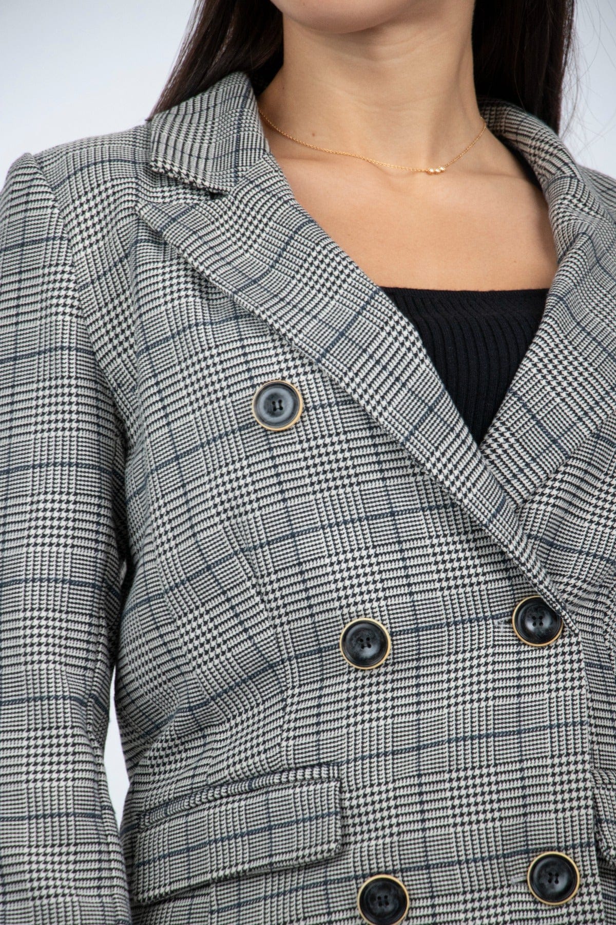بليزر شتوي مربعات بأزرار أمامية كم طويلة نسائي