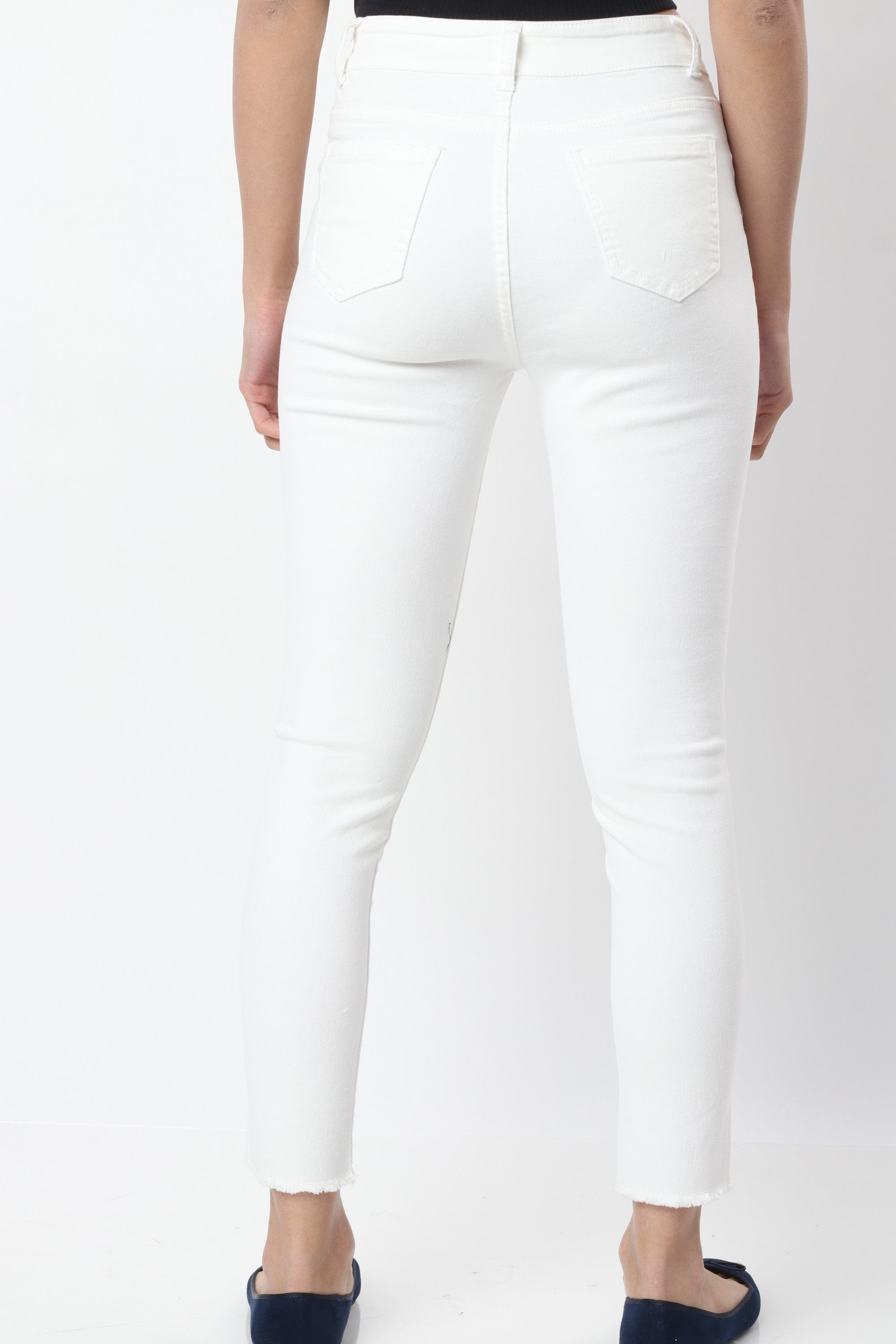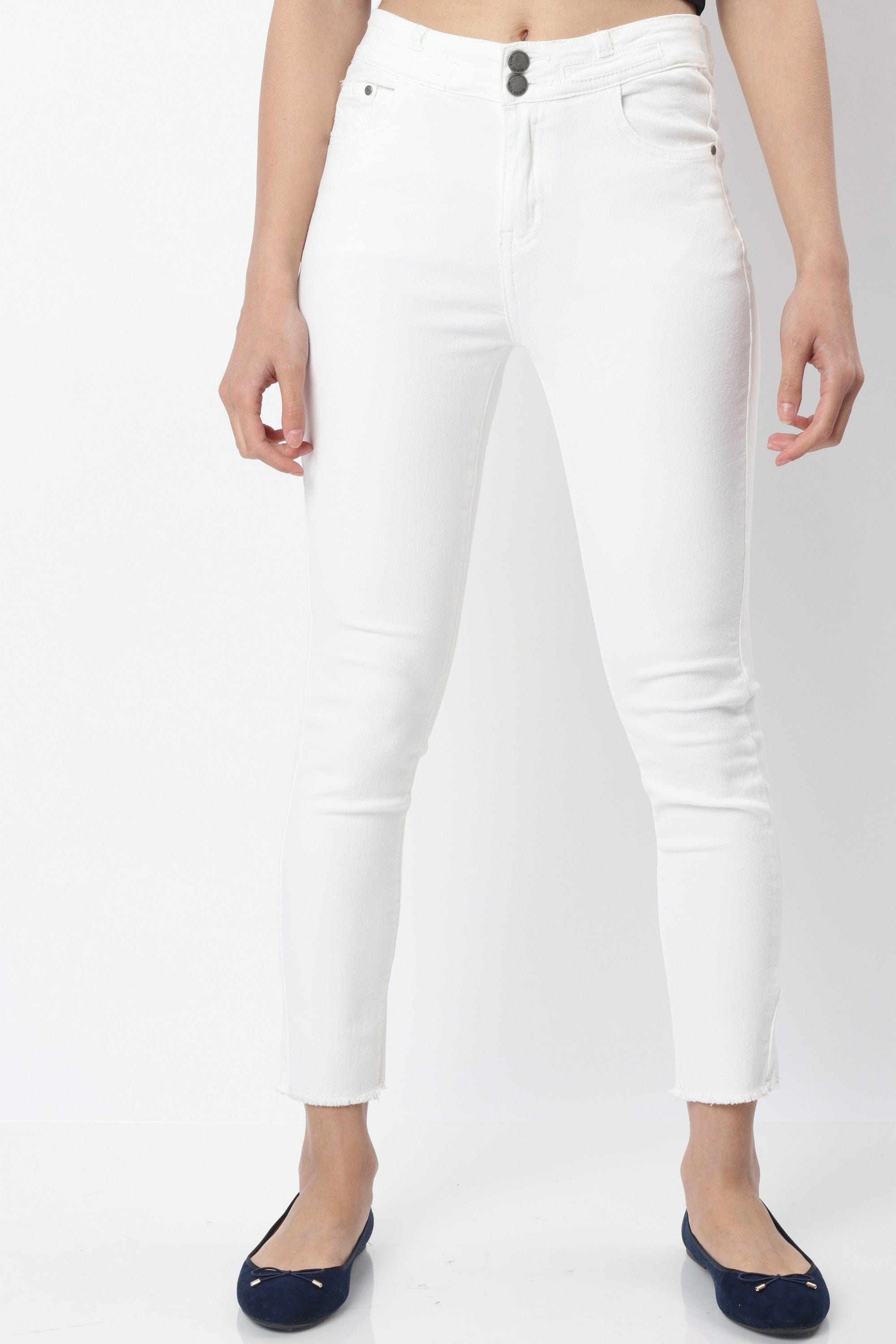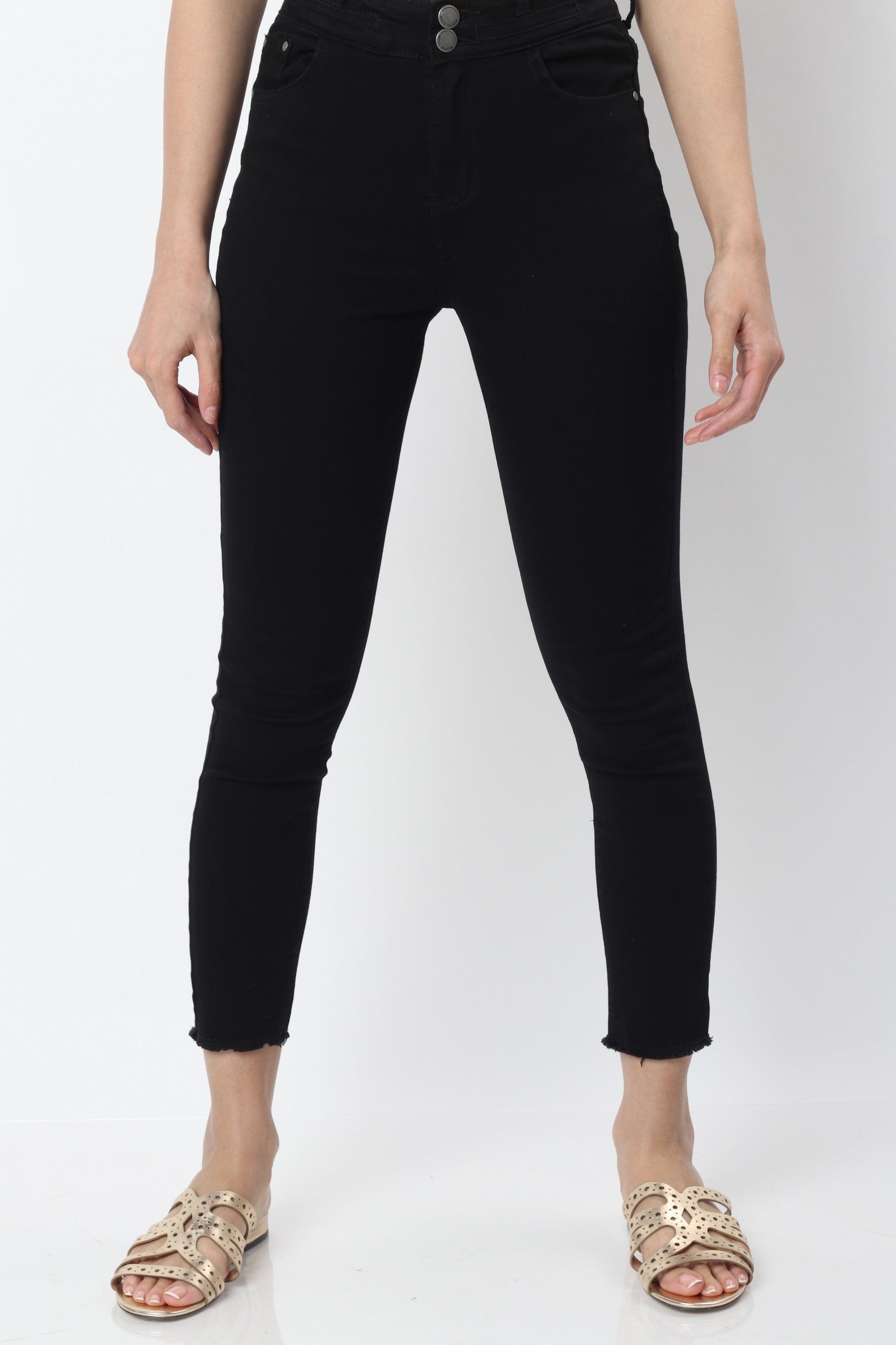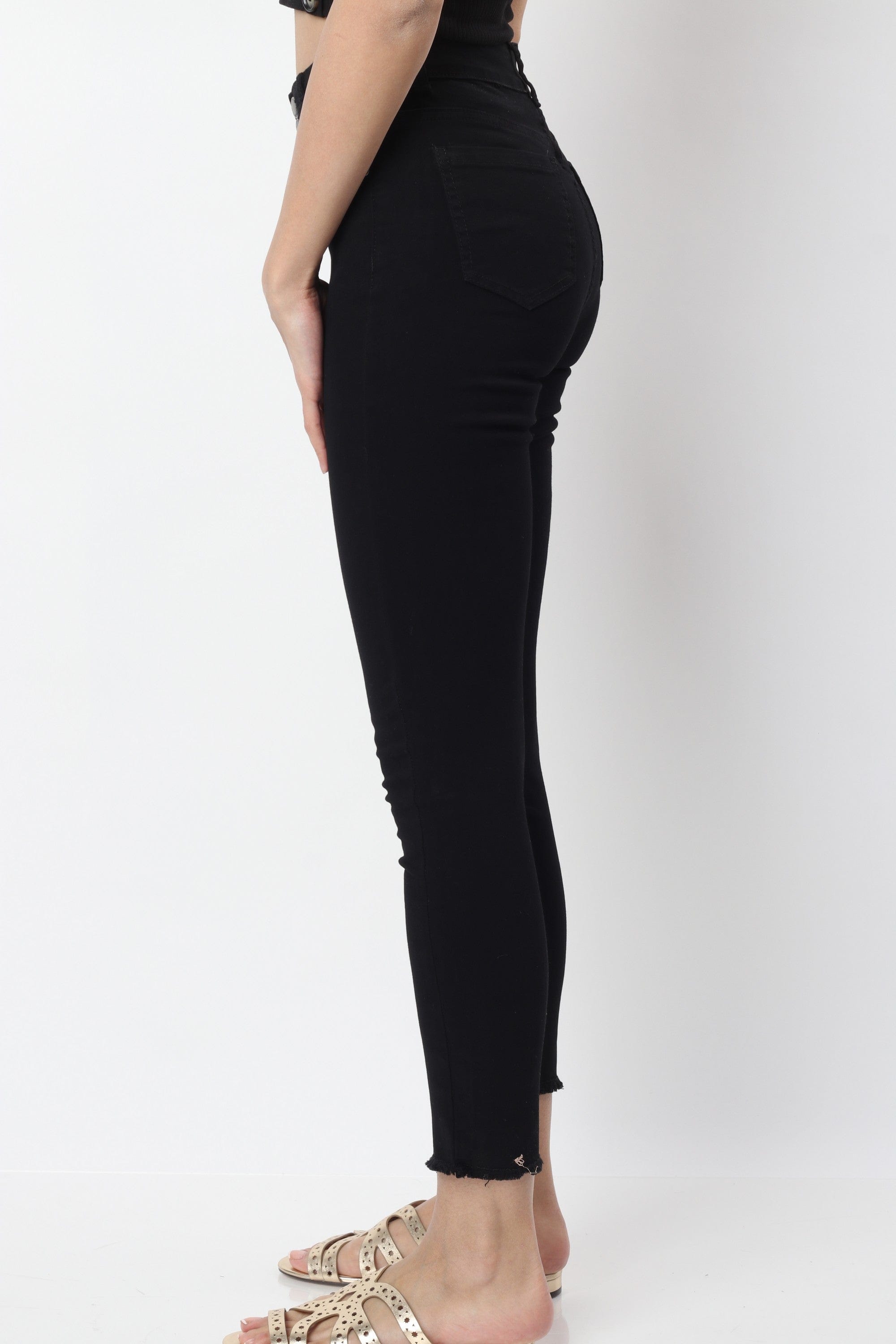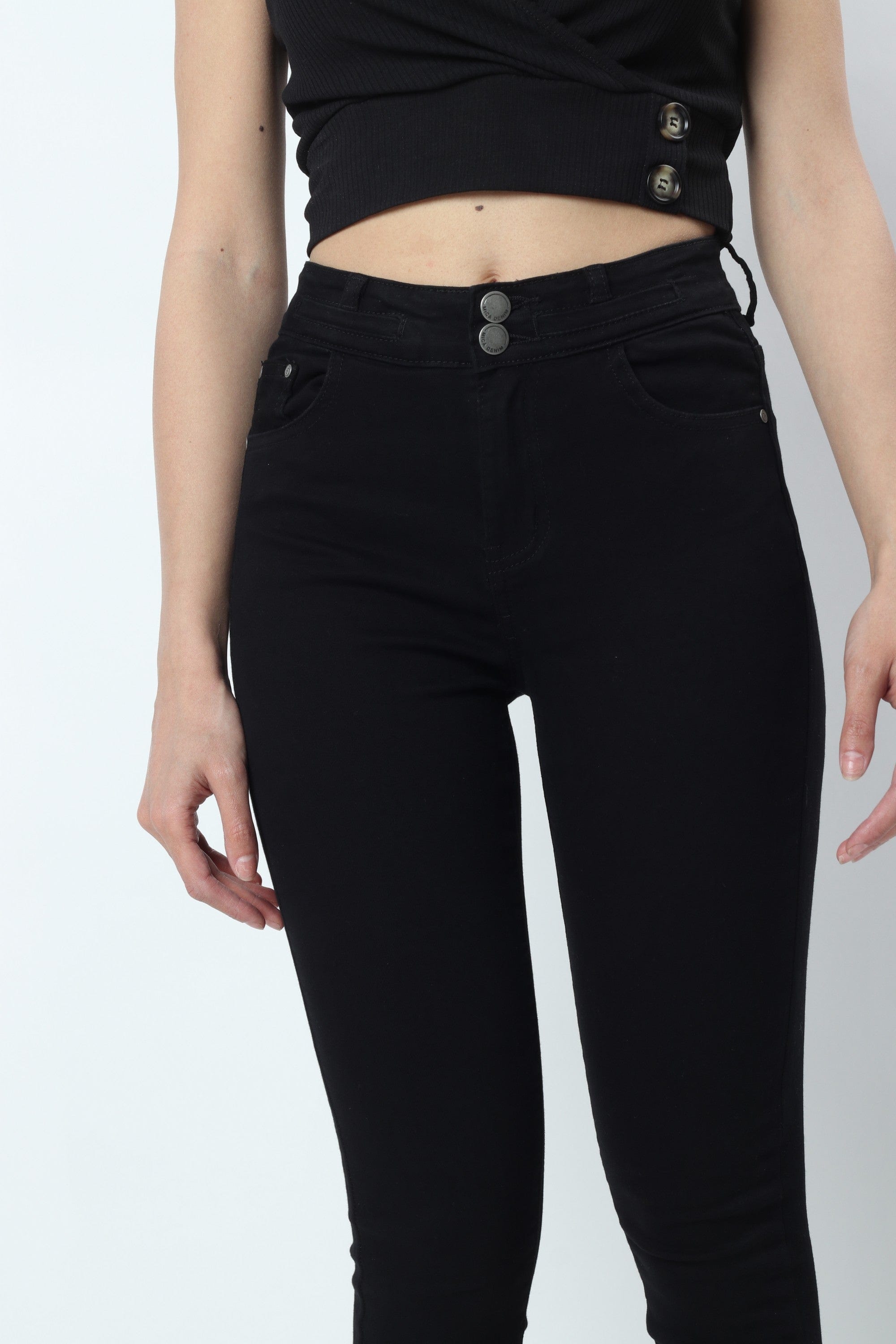 بنطلون جينز سكيني سادة طويل خصر مرتفع نسائي