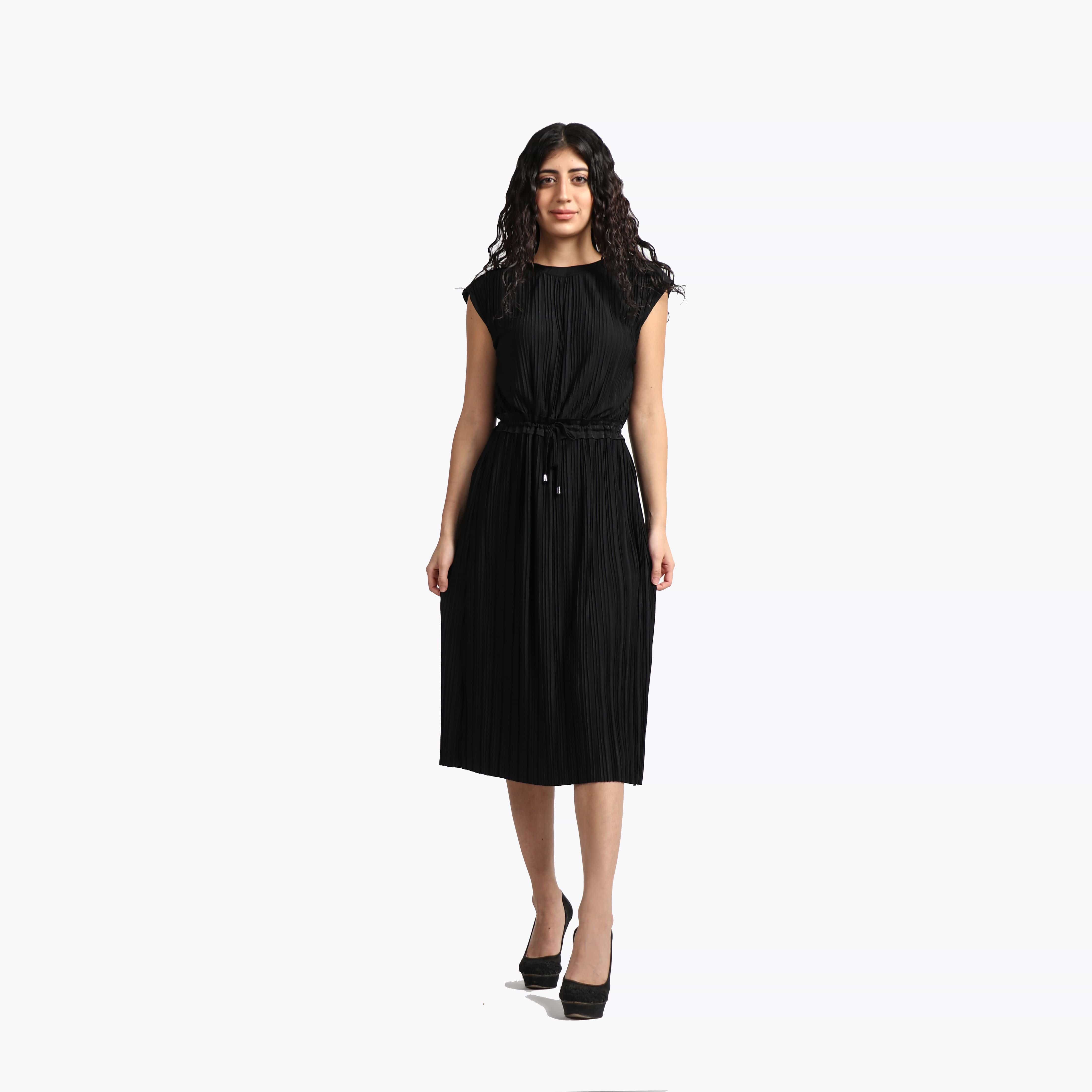 فستان ميدي بدون أكمام مزموم من الخصر