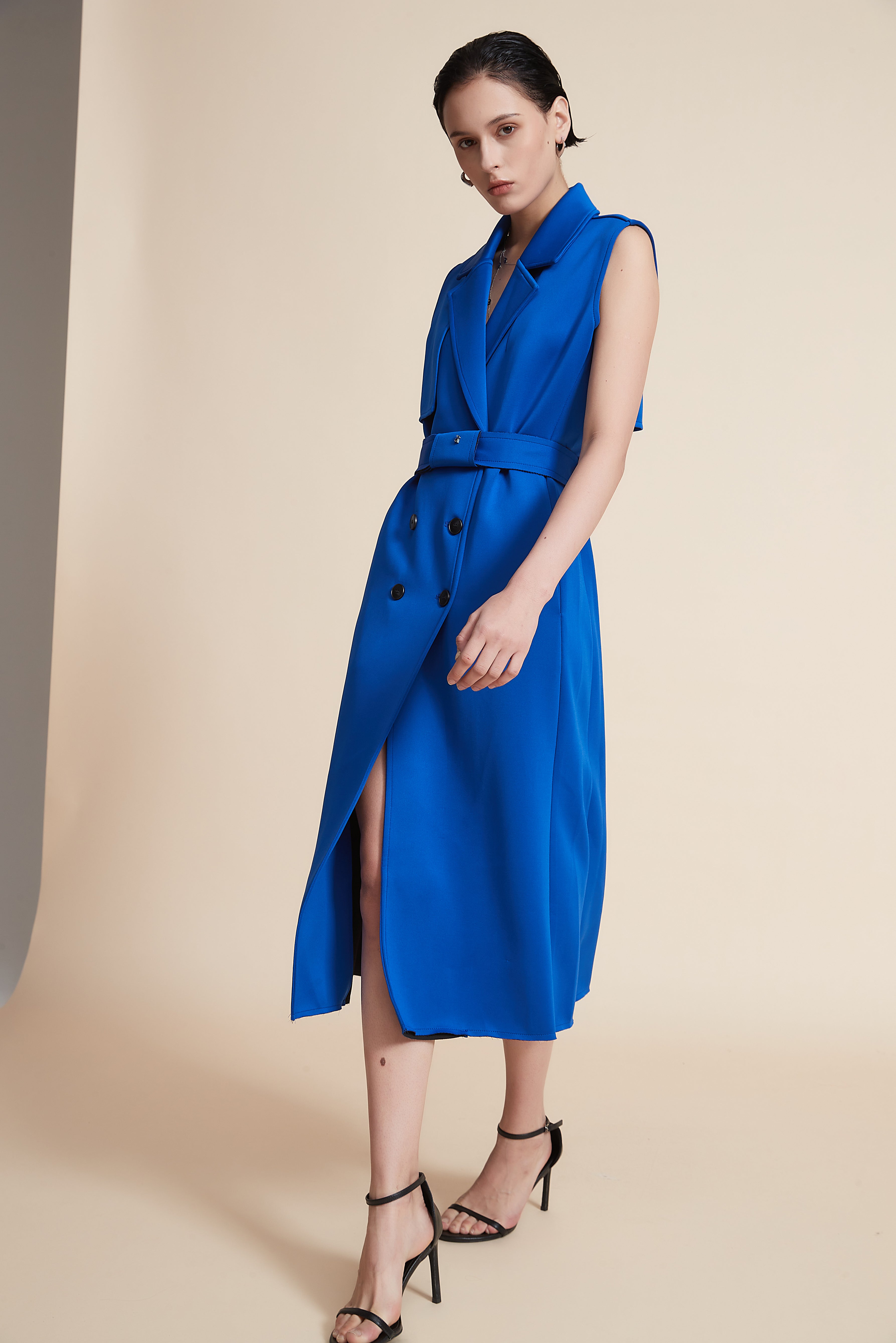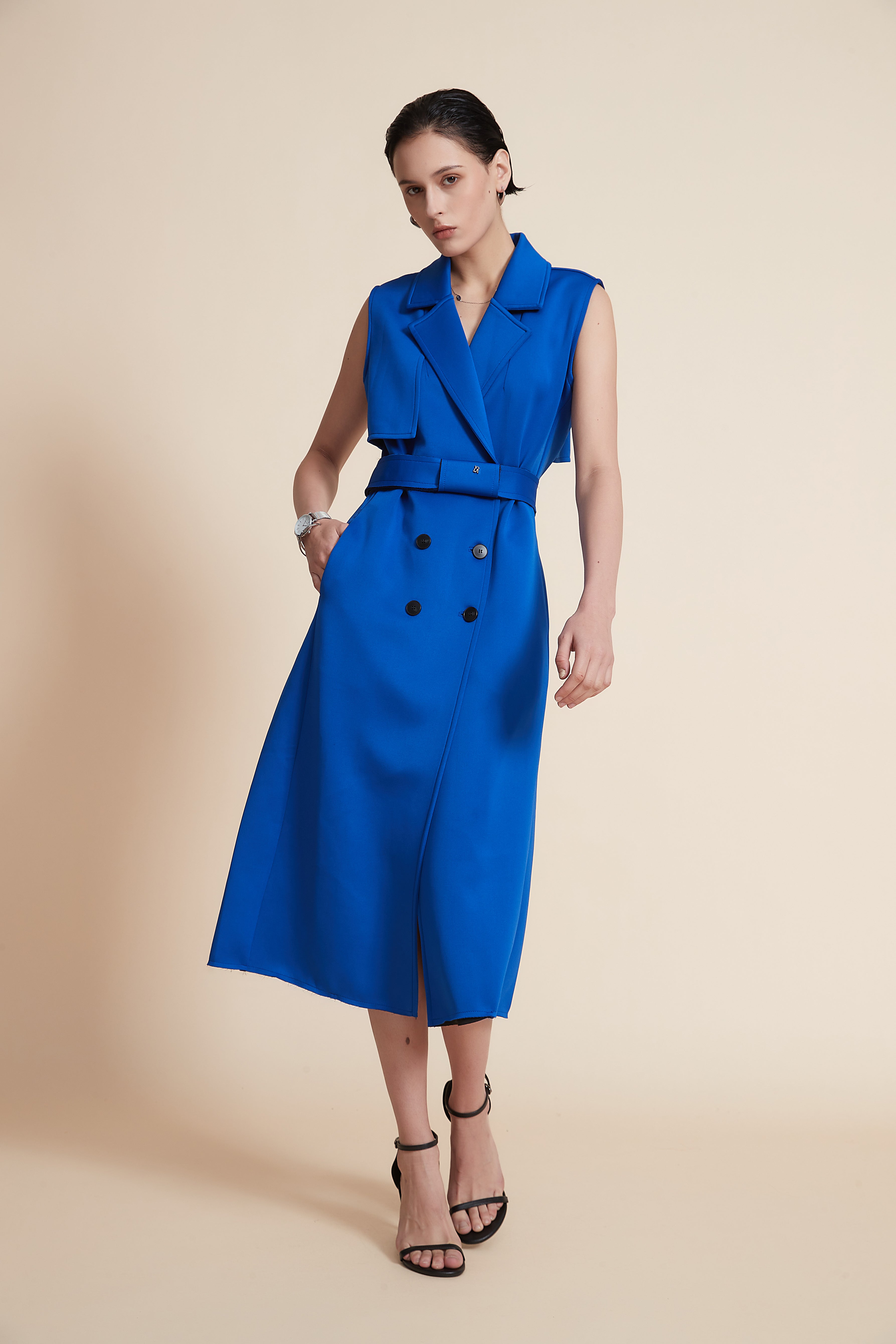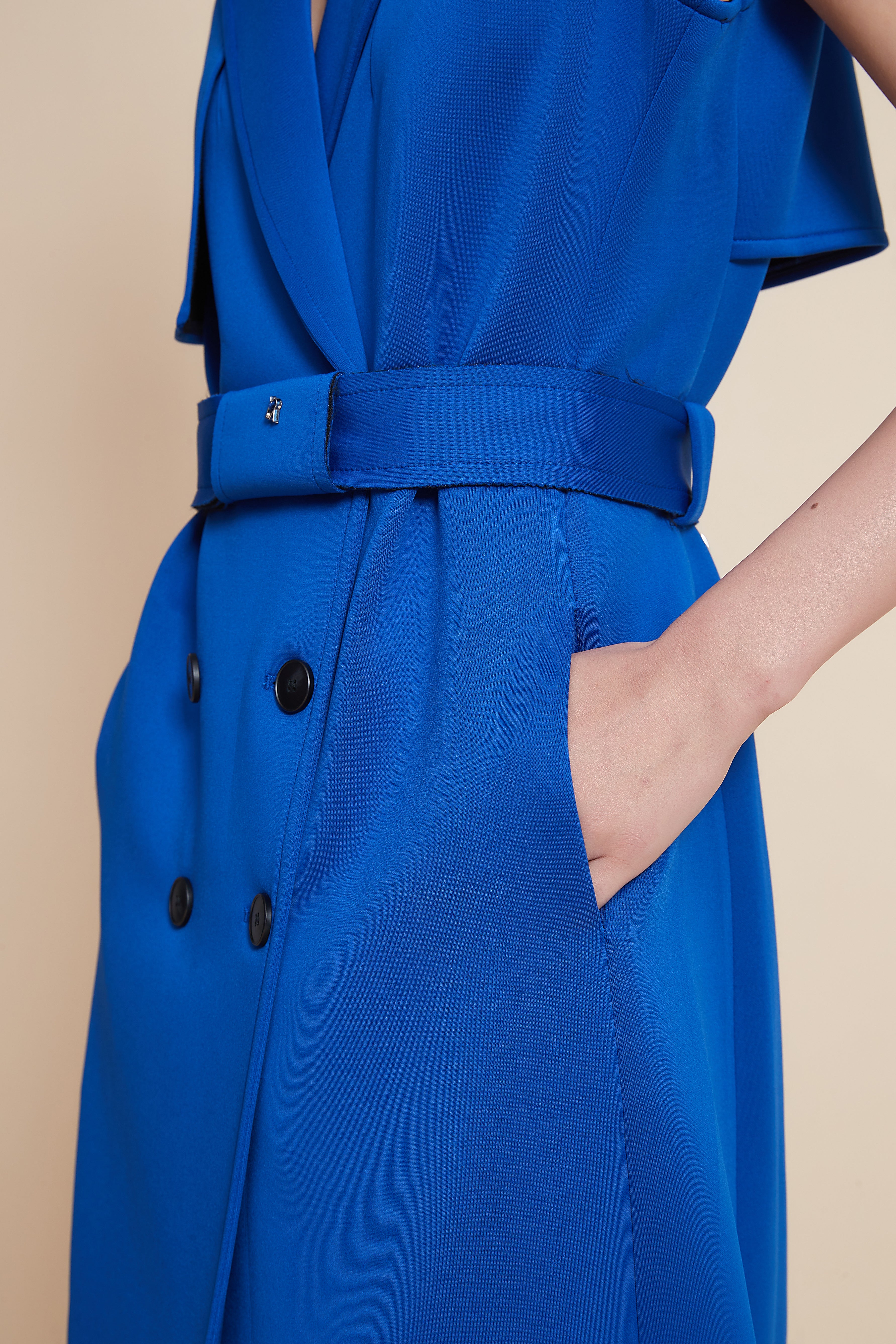 فستان ميدي بدون أكمام وبحزام عالخصر وأزرار امامية