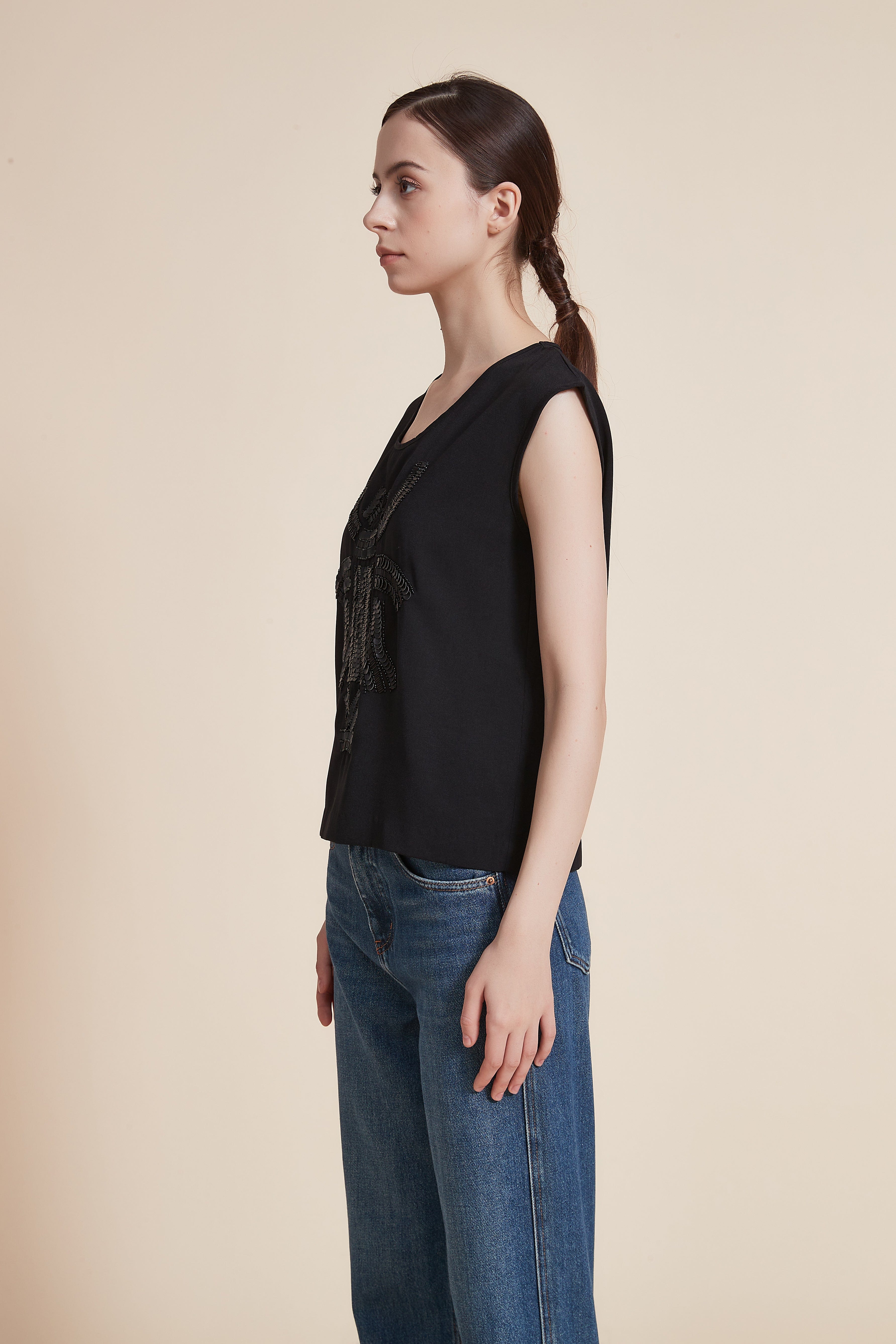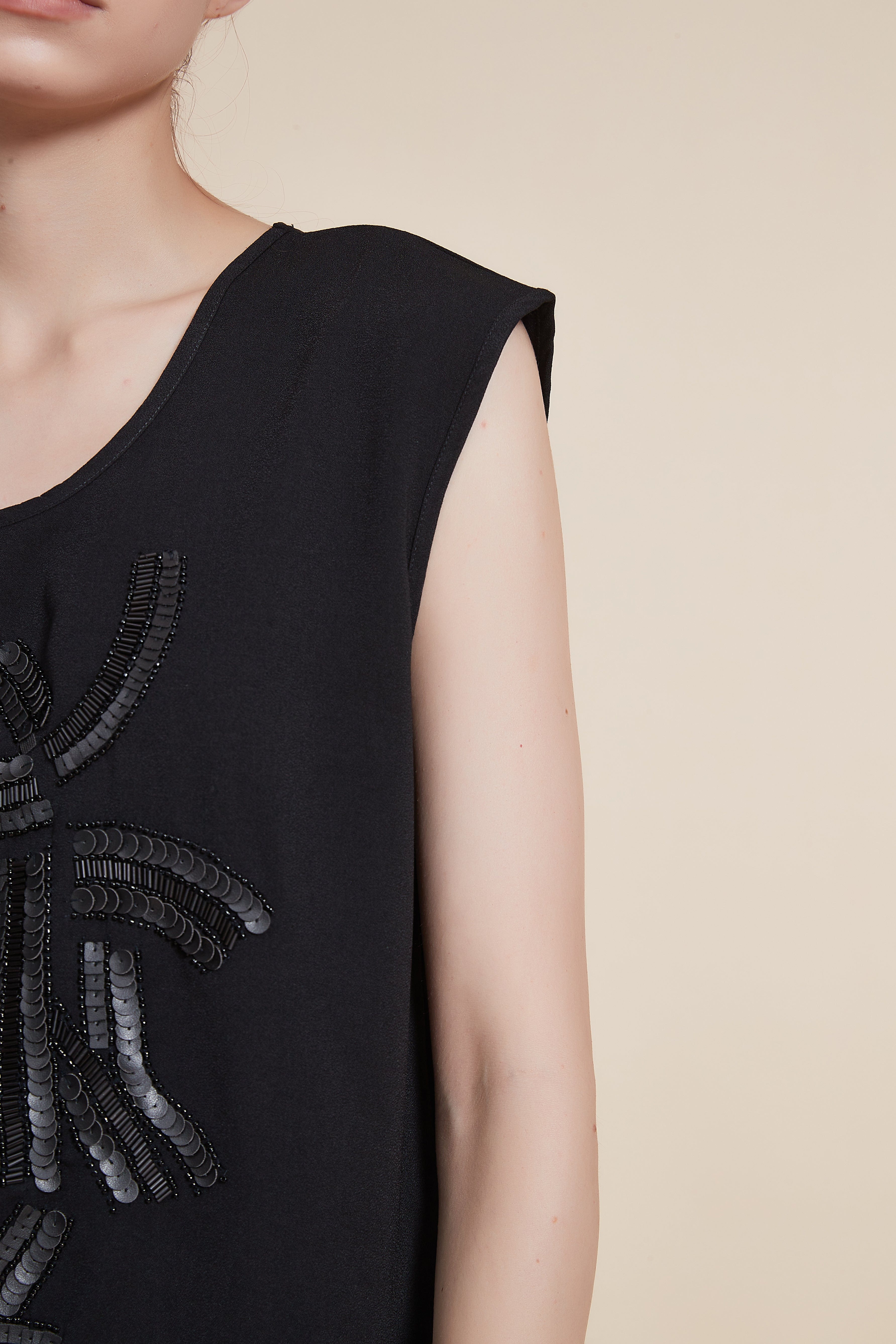 بلوزة بطول الخصر بدون أكمام وفتحة رقبة مستديرة