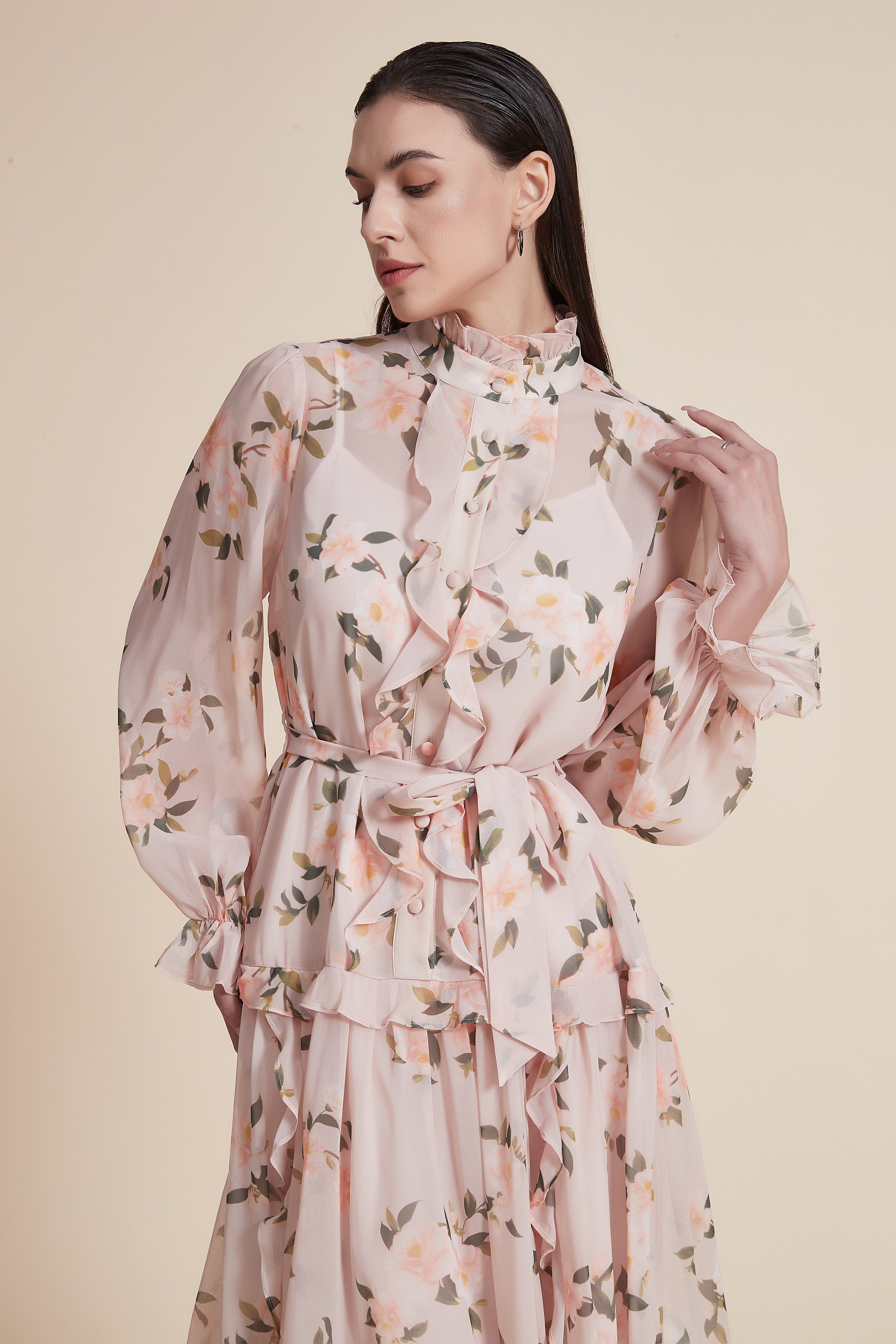 تحتاجين فستاناً أنثوياً ومريحاً للمناسبات الأنيقة؟ هذا الفستان ميدي بقصة A سيمنحك مظهرًا ناعماً ومناسباً لكل لقاء. مصنوع من 100% بوليستر خفيف، فهو مثالي لربيع وخريف معتدل؛ خفيف على الجسم ويحافظ على الشكل. الطباعة الشاملة بنقشة زهور وردية تضيف طابع رومانسي، وياقة صينية وأكمام طويلة تمنحان لمسة محفوظة وأنيقة. القصة عادية تسمح بالحركة بدون مبالغة، وإغلاق بأزرار مع حزام مرفق لتحديد الخصر حسب رغبتك. لا توجد جيوب ولا بطانة، ما يجعل الفستان رفيعًا وخفيفًا للنهار أو السهرة. ستحبين كيف يتحرك معك أثناء المشي؛ مثالي للخروجات الرومانسية، لقاءات العمل الأنيقة أو مناسبات نهاية الأسبوع. اعثري على مقاسك في فاشن السعودية وأضيفي هذه القطعة المتنوعة إلى خزانة ملابسك اليوم.