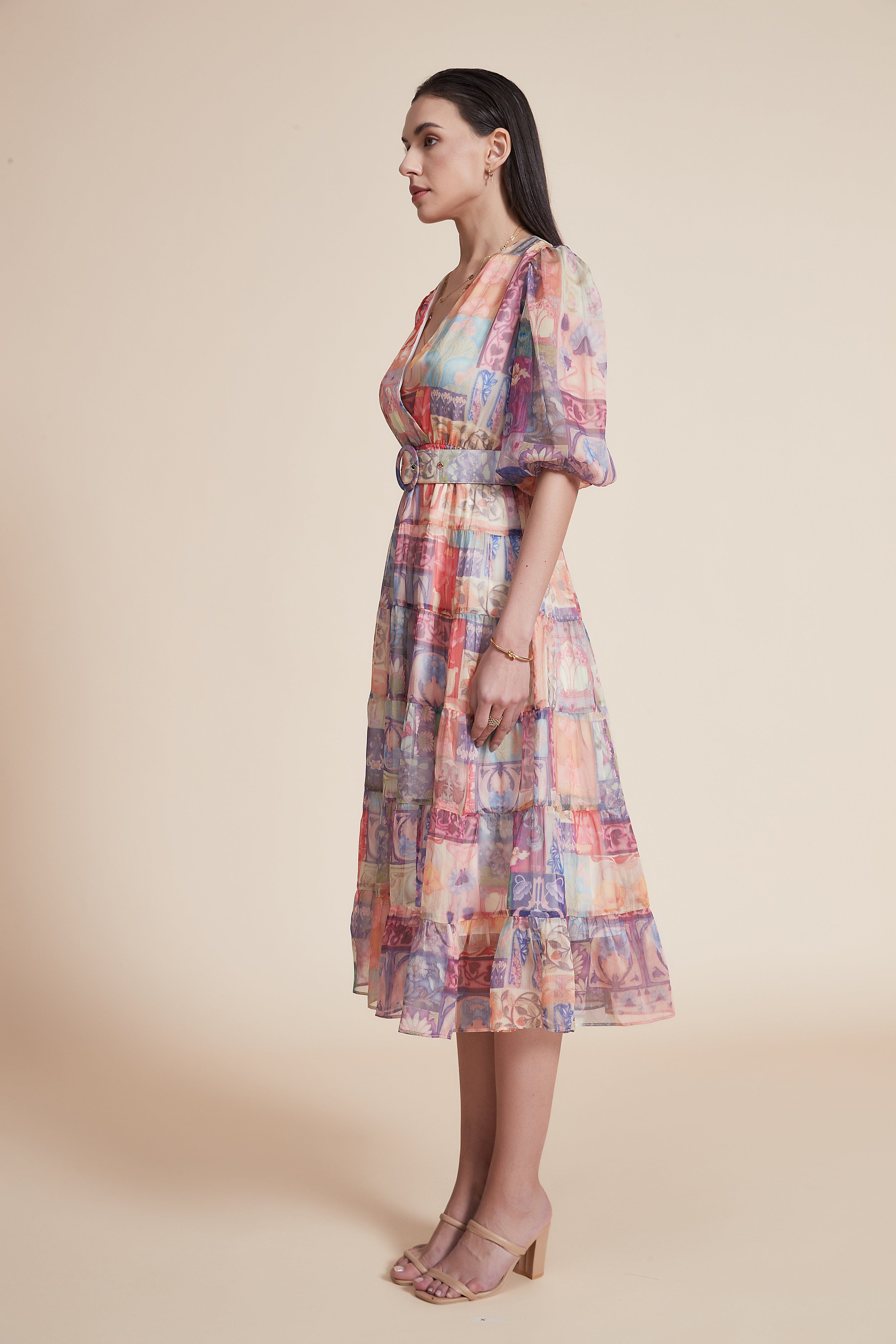 لو تبحثين عن فستان ميدي يضيف لمسة أنثوية لخزانة الربيع والخريف، هذا الفستان خيار رائع. الخامة 100% بوليستر رفيع تمنحك قطعة خفيفة وسهلة العناية، ومناسبة للأجواء المعتدلة. القصة A العادية تعطي انسيابية أنثوية وتسمح بالحركة، وياقة V مع كم منفوش قصير تضيفان روحًا مرحة وعصرية. الطباعة الشاملة المنقوشة متعدد الألوان تجذب النظر، والحزام المرفق يساعدك على تحديد الخصر حسب ذوقك. بدون بطانة وبدون جيوب، تصميمه عملي وبسيط ويعمل بشكل ممتاز للمناسبات الكاجوال—مثالي للخروجات الرومانسية أو لقاء القهوة مع الصديقات. ستحبين كيف يتحرك هذا الفستان معك ويعطي إطلالة مريحة وأنيقة في نفس الوقت. اعثري على مقاسك في فاشن السعودية وأضيفي هذه القطعة المتنوعة إلى خزانة ملابسك اليوم.