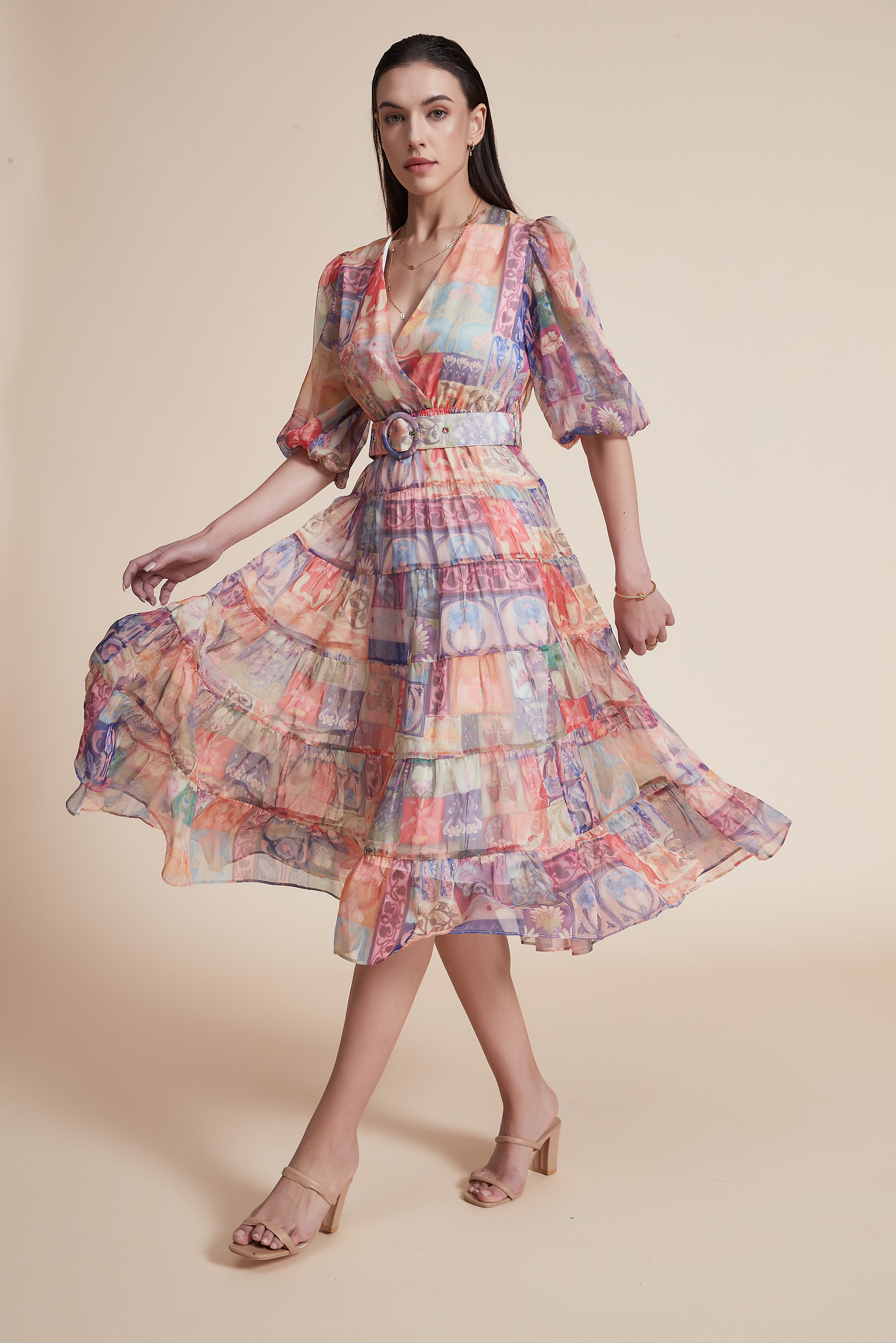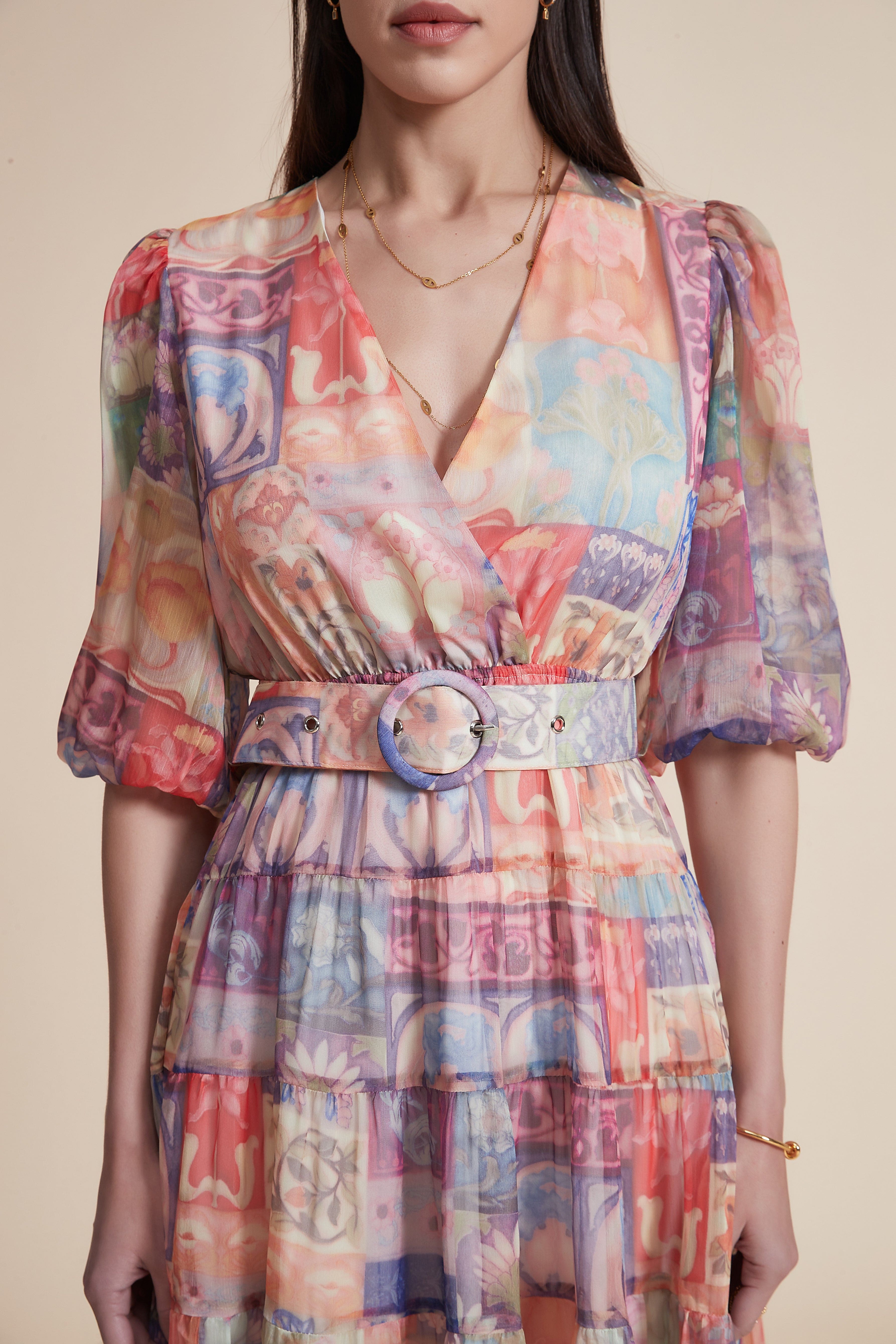 - العناية: اغسلي بالماء البارد على دورة لطيفة أو يدويًا، اقلبّي الفستان قبل الغسيل، لا تستخدمي مبيضًا، وكوي على حرارة منخفضة أو استخدمي بخار خفيف. يفضّل التجفيف بعيدًا عن الشمس المباشرة للحفاظ على الألوان.