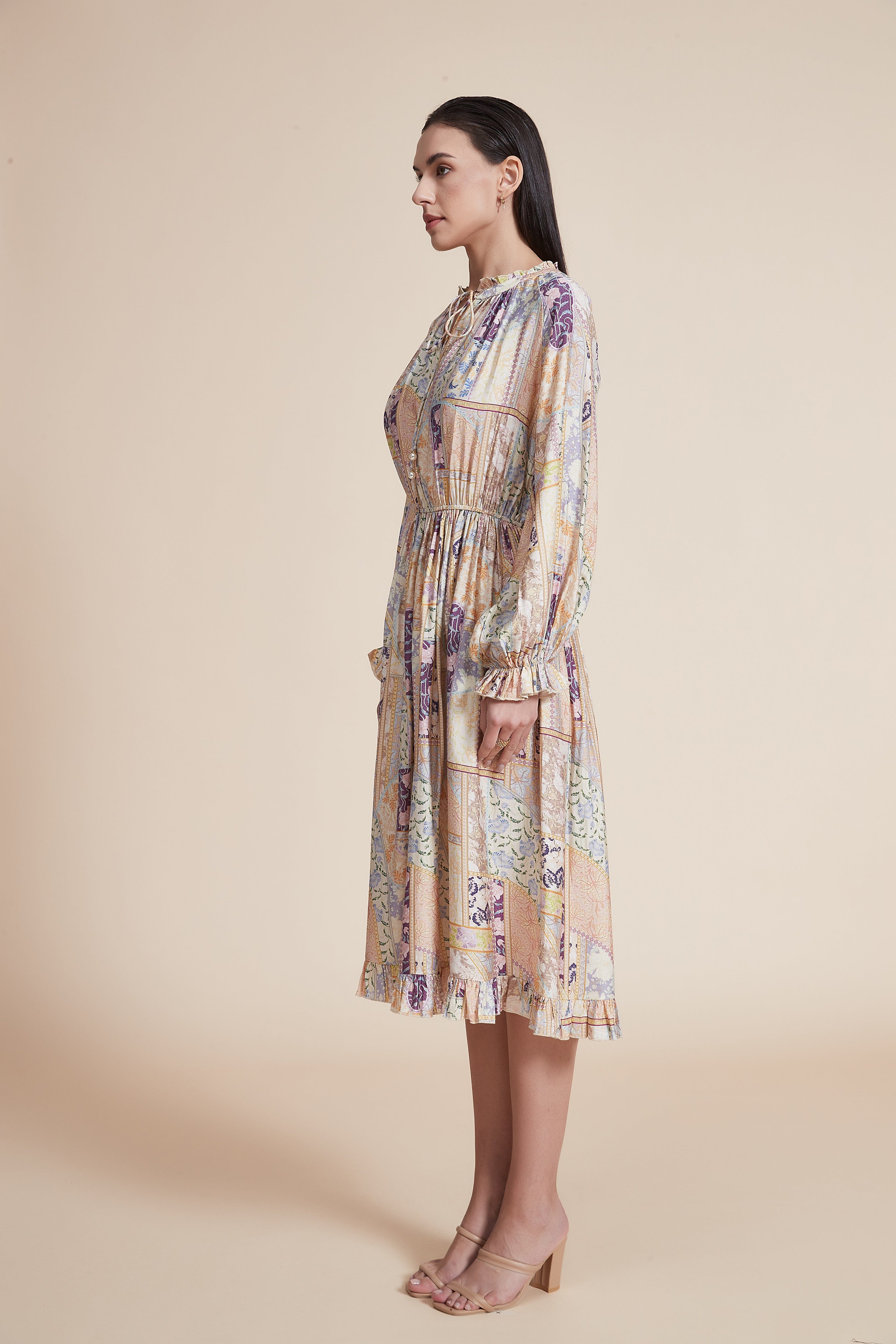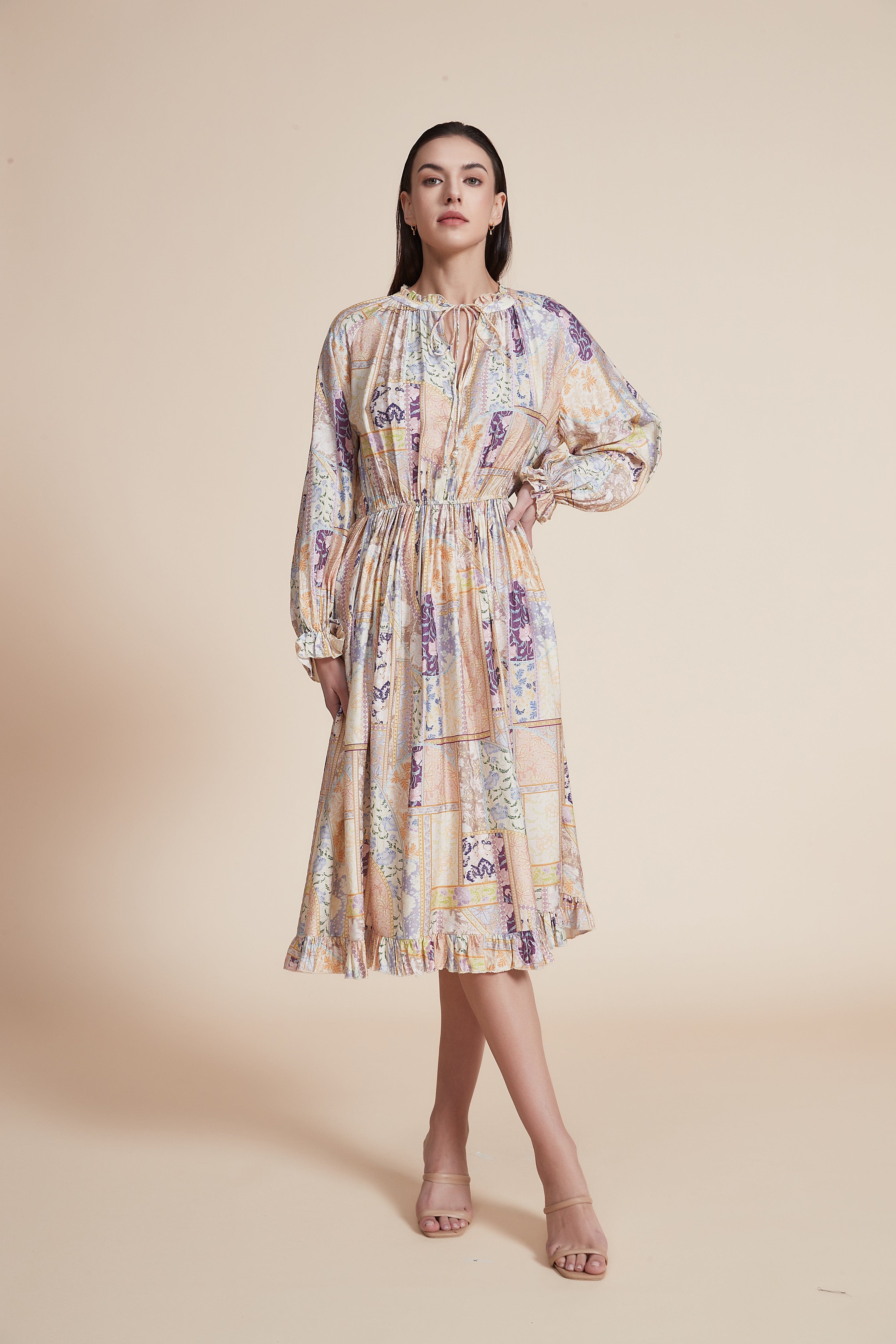 تتخيلين فستانًا يناسب خروجاتك اليومية ويظل أنثويًا في الوقت نفسه؟ هذا الفستان الميدي المنقوش بقصة A يصلح تمامًا لذلك. خامته 80% فيسكوز و20% بولياميد تشعرك بالنعومة وتمنح الوجهية مرونة خفيفة؛ مناسب لدرجة سمكه المتوسطة لكل المواسم. ياقة مستديرة وأكمام طويلة تمنحان مظهرًا مرتبًا وبسيطًا، والخصر المطاطي يحدد الخصر بدون تعقيد — لا حزام مطلوب. الفستان بدون بطانة وبدون جيوب، بقصة عادية تناسب القوامات المختلفة. ستحبين كيف يتحرك معك عند المشي، وهو رائع للخروجات الكاجوال والمناسبات الرومانسية الصغيرة وحتى يوم عملي أنيق. ملون ومنقوش، فلا تحتاجين لمجهود كبير في التنسيق؛ قطعة يومية أنثوية تضيف لمسة لطيفة لخزانتك. اعثري على مقاسك في فاشن السعودية وأضيفي هذه القطعة المتنوعة إلى خزانة ملابسك اليوم.
