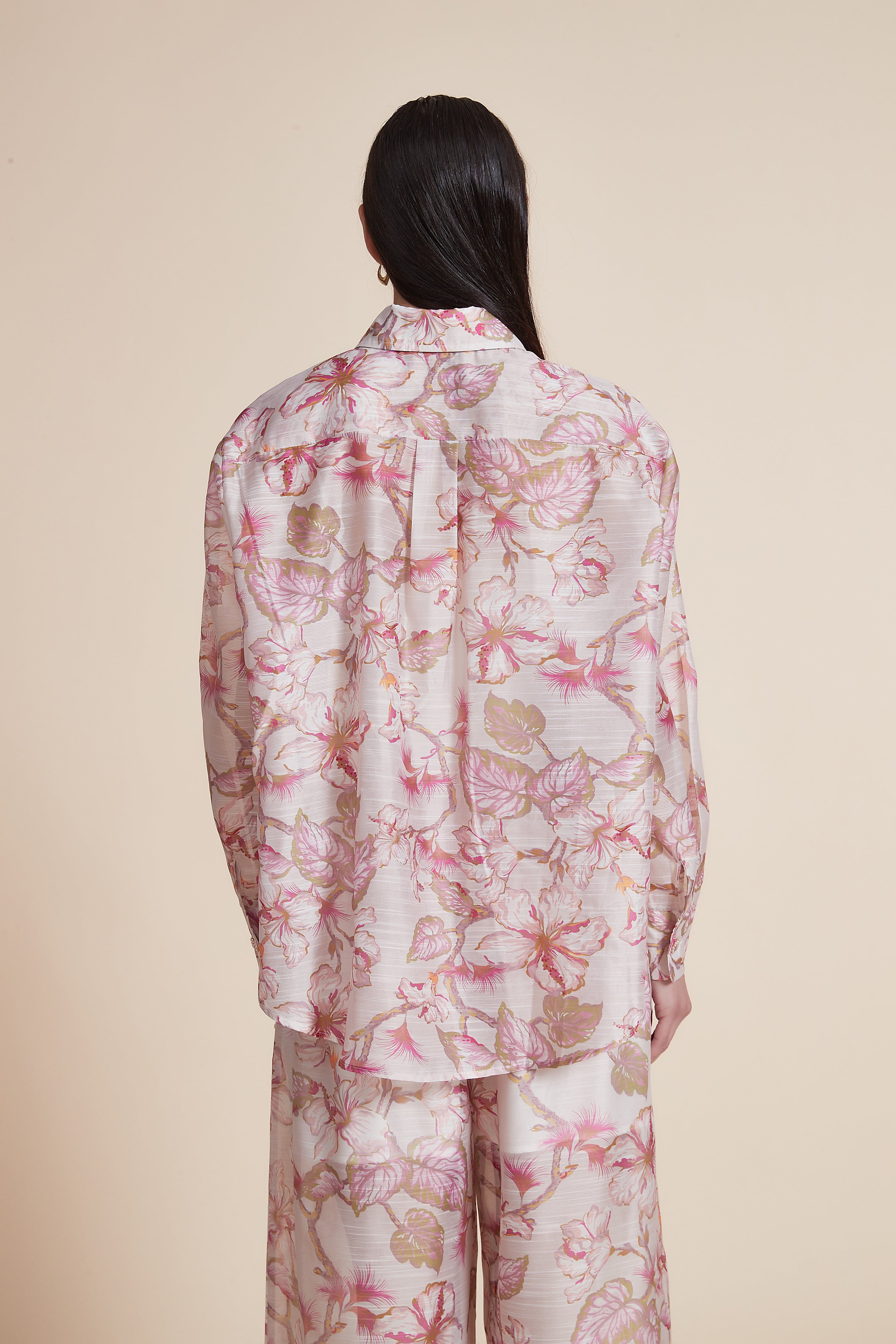 قميص مورد بطول الخصر واسع واكمام طويلة