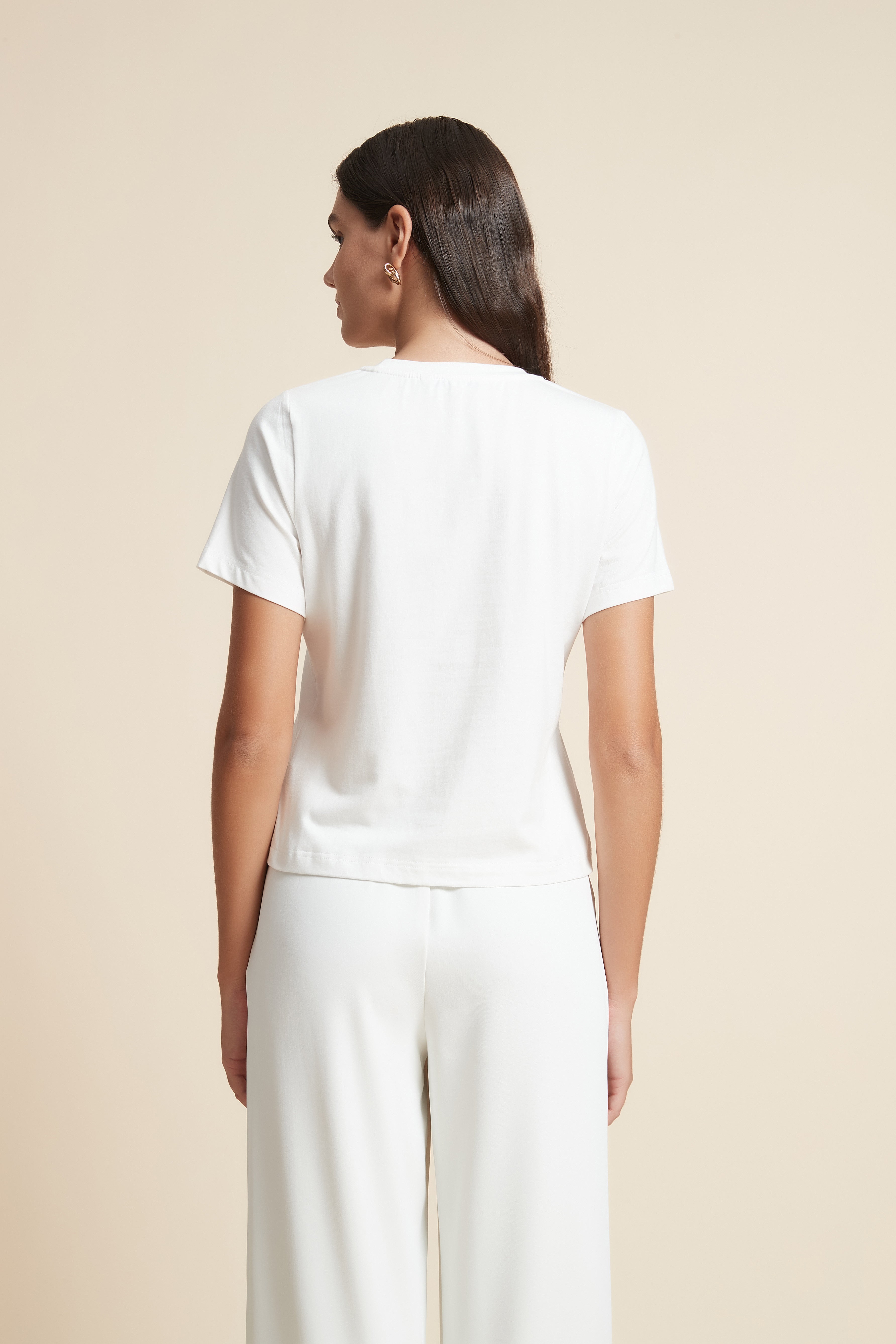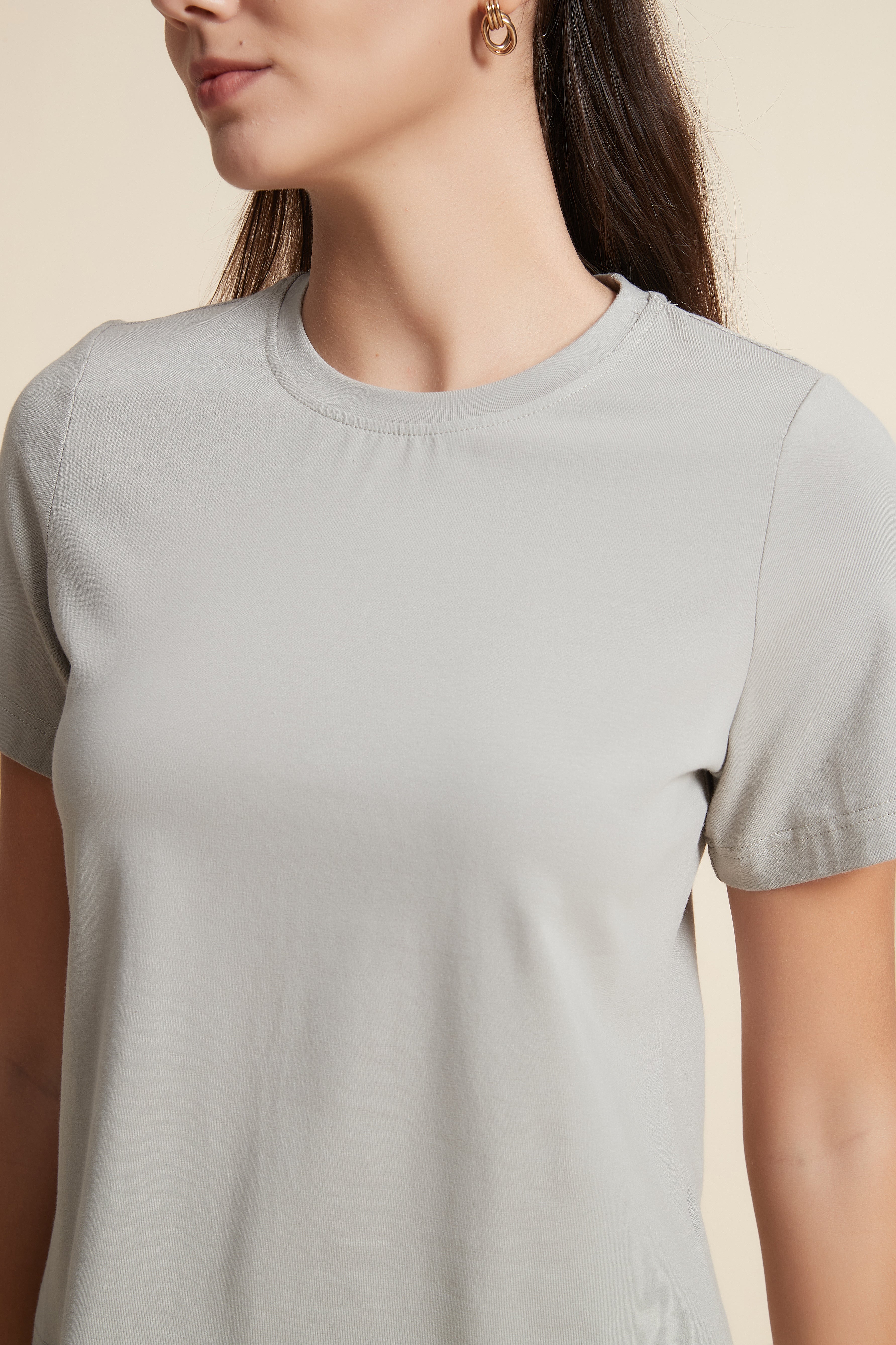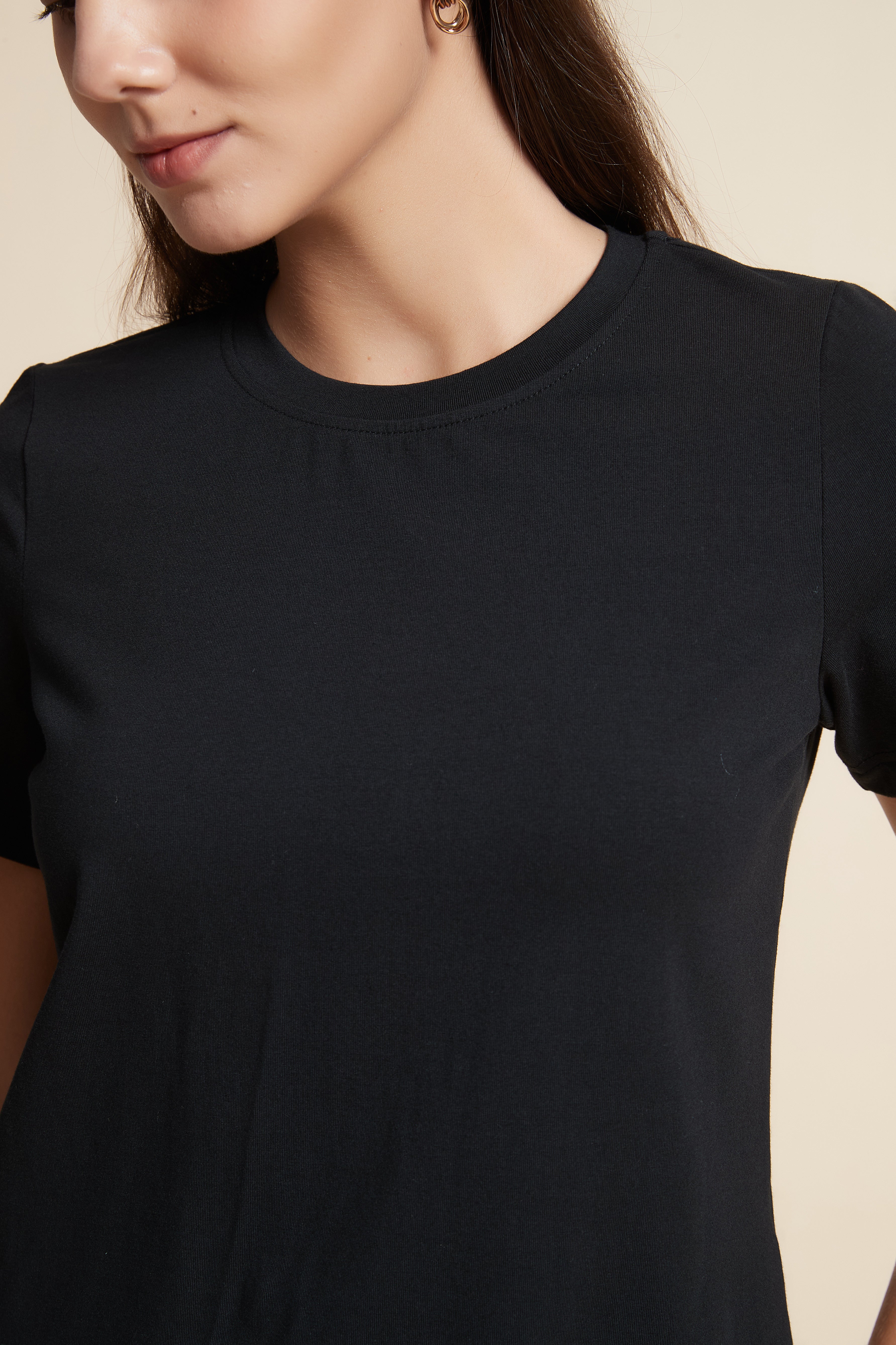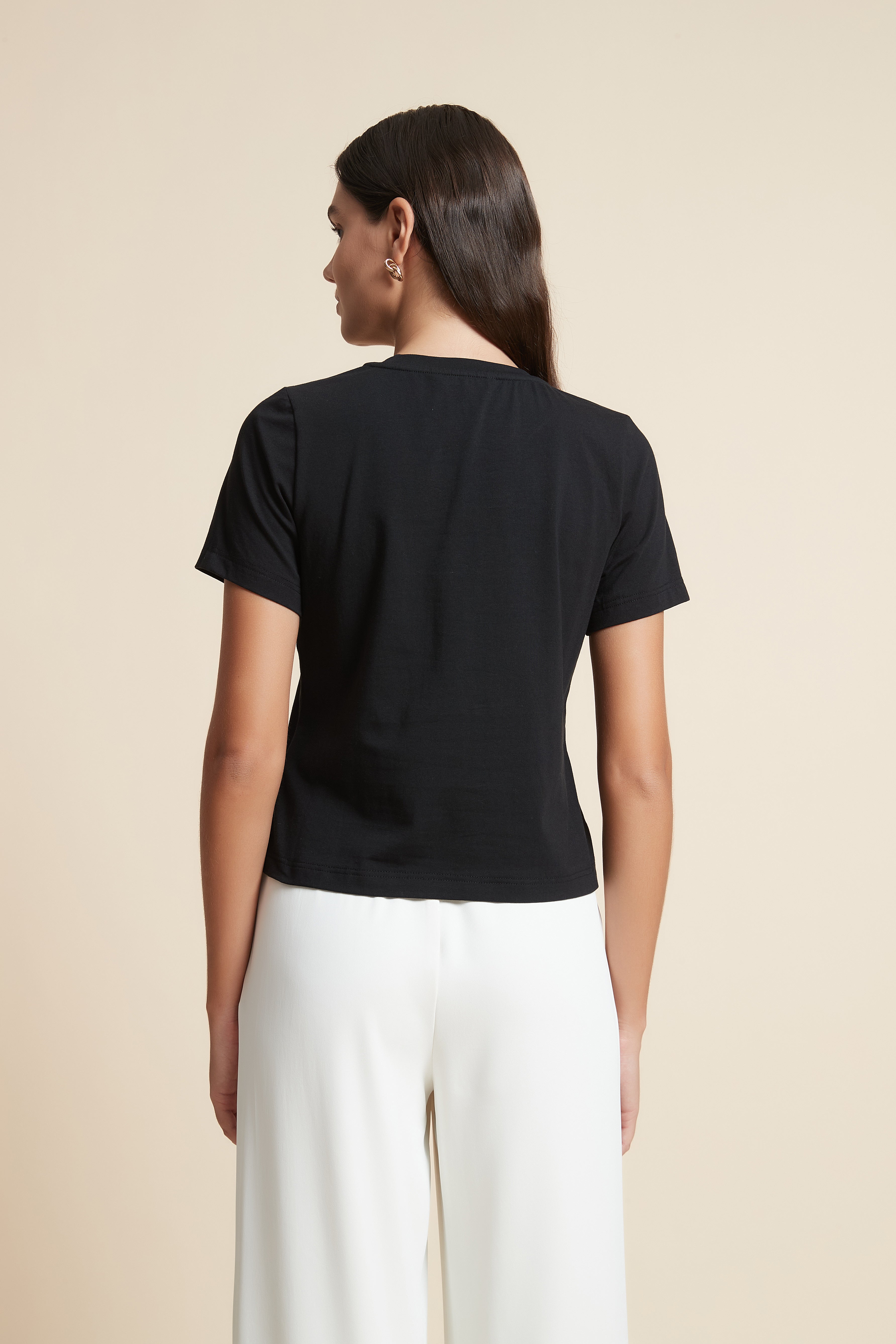 تي شيرت نص كم بفتحة رقبة دائرية