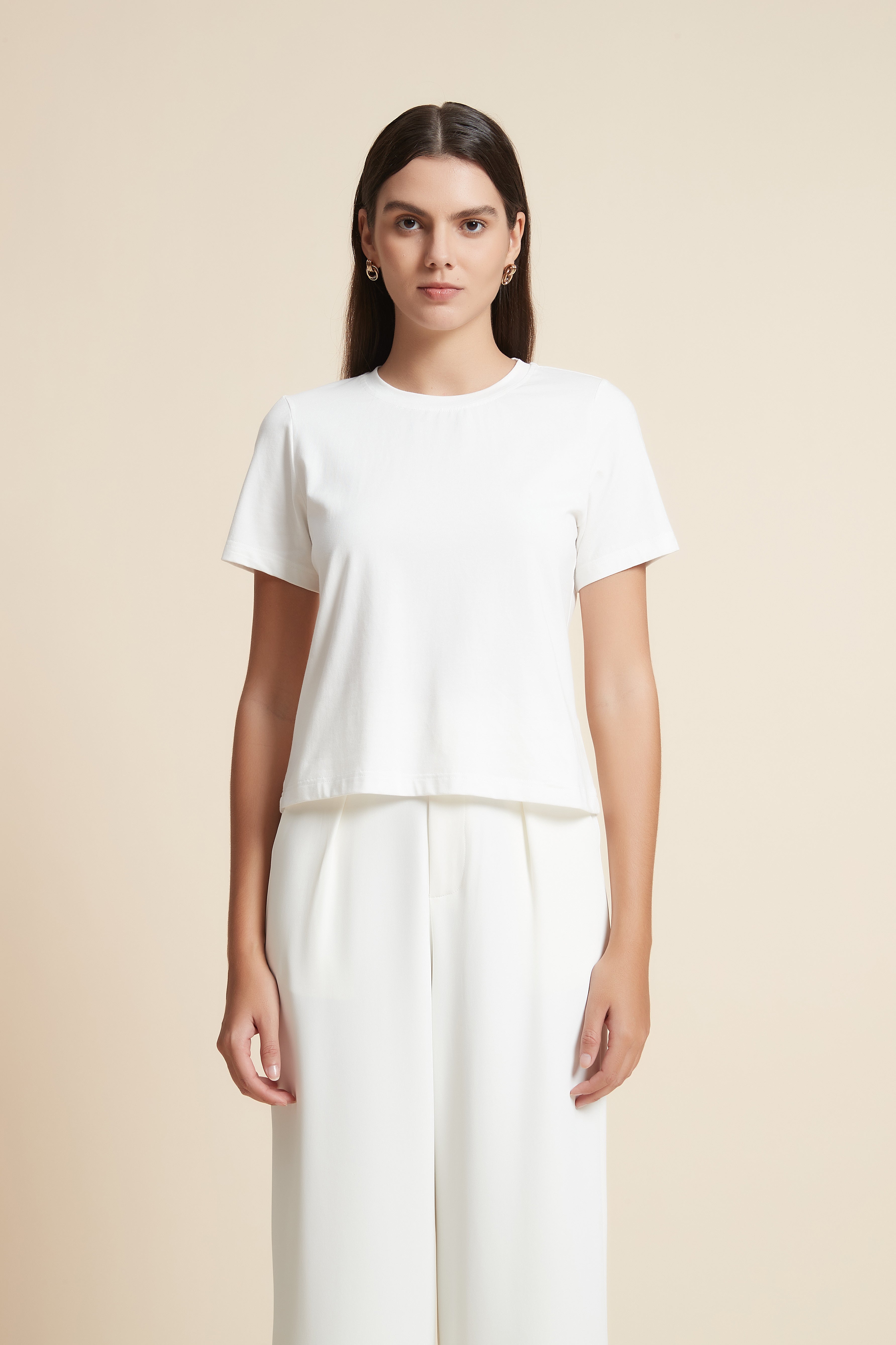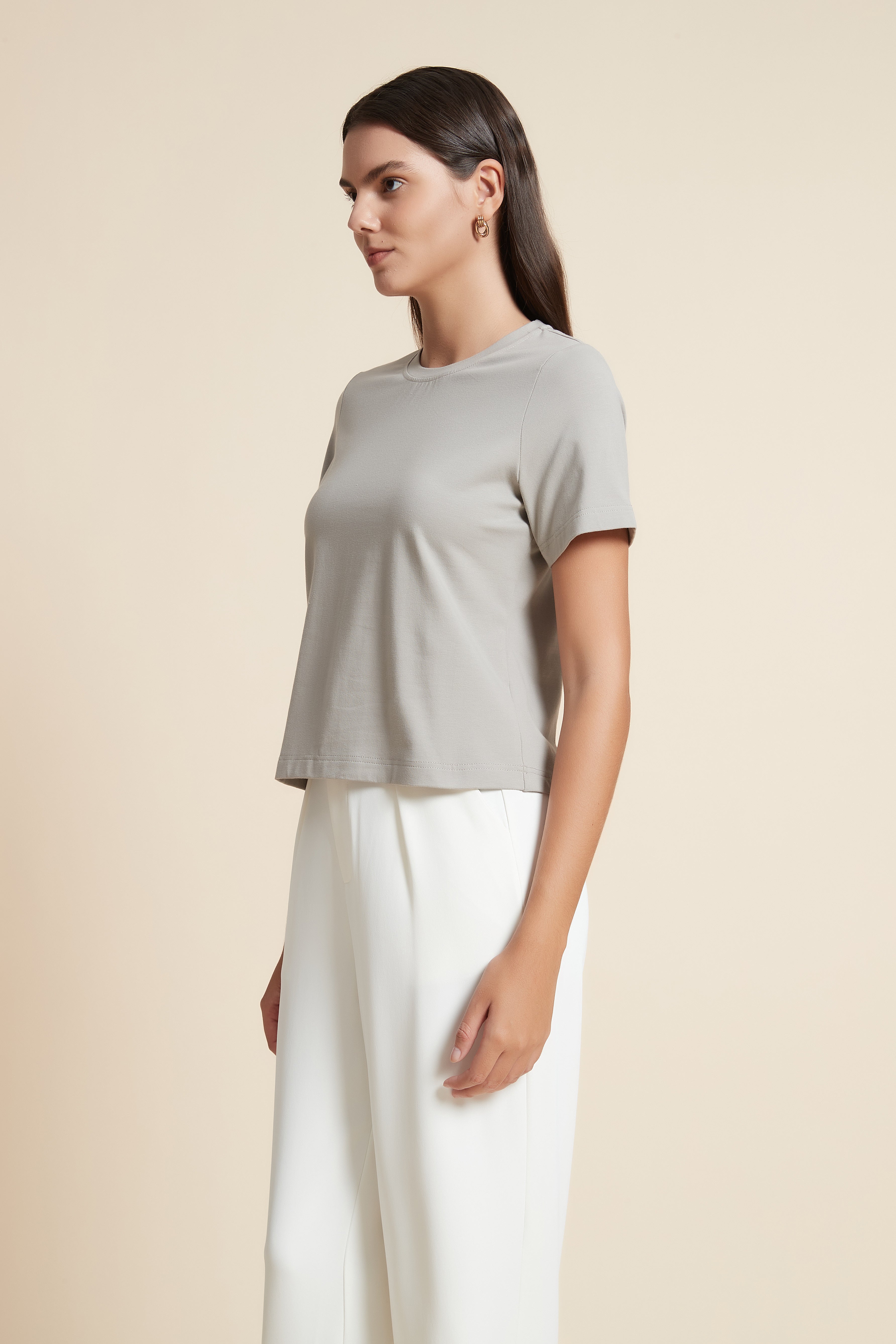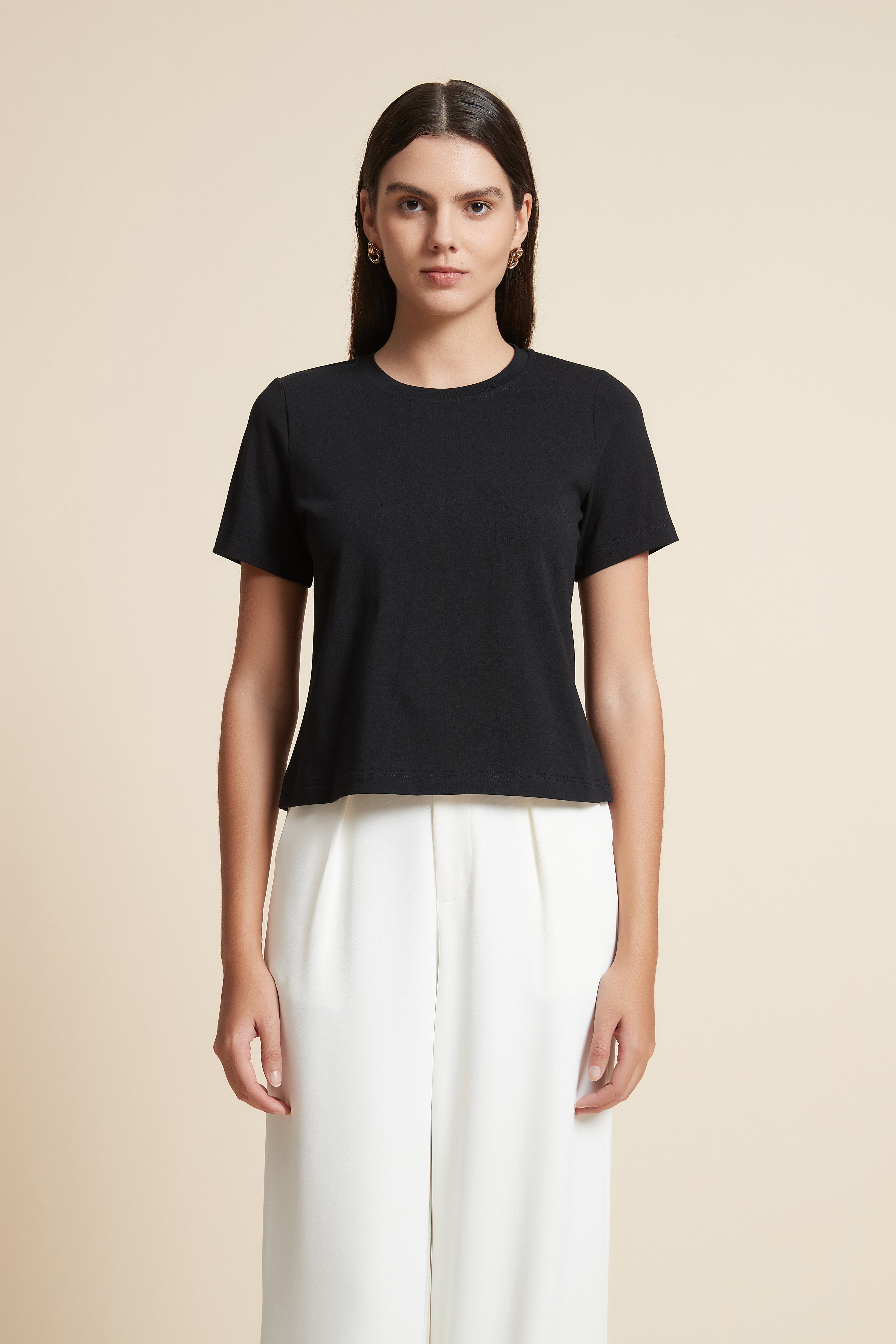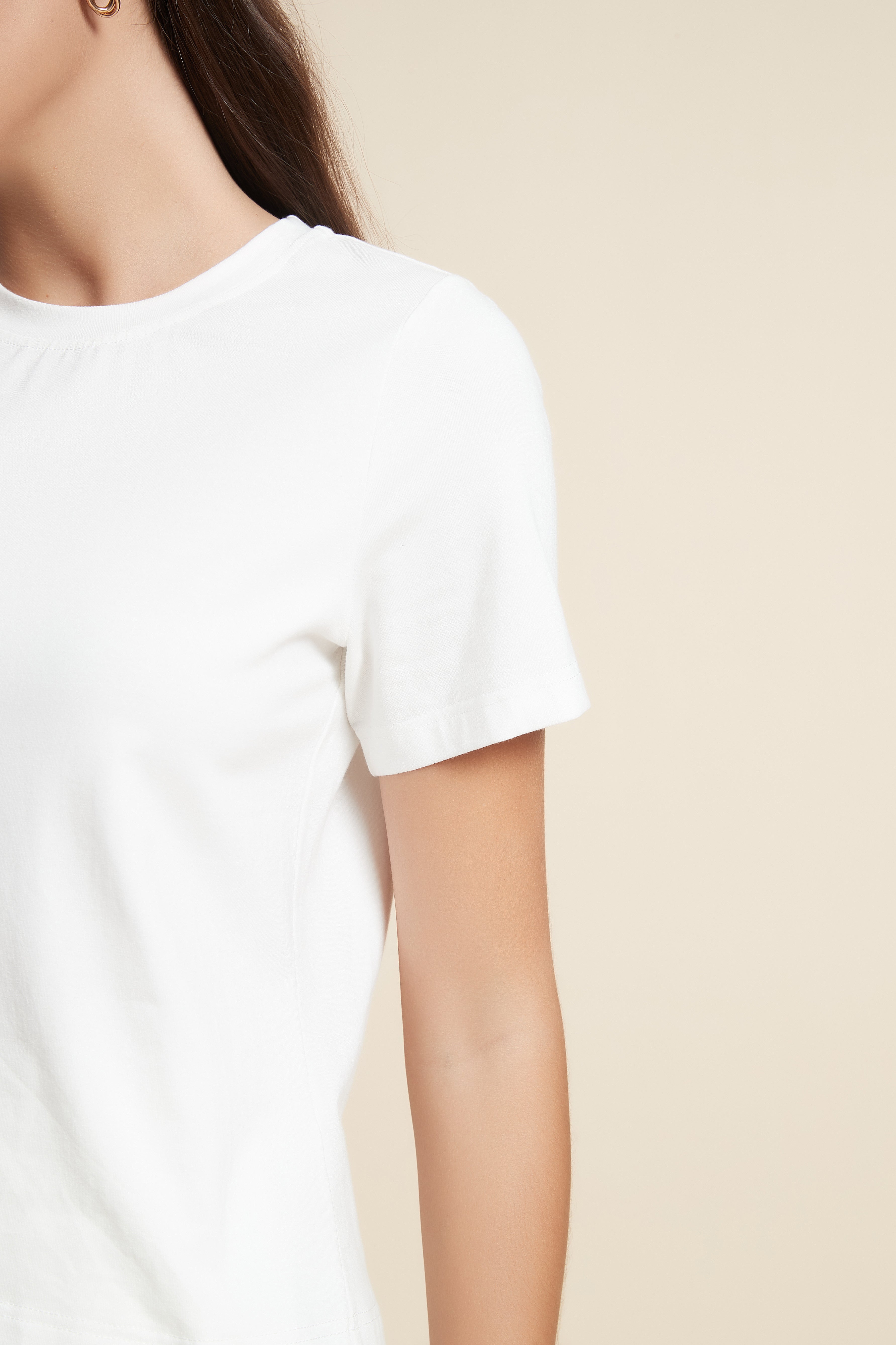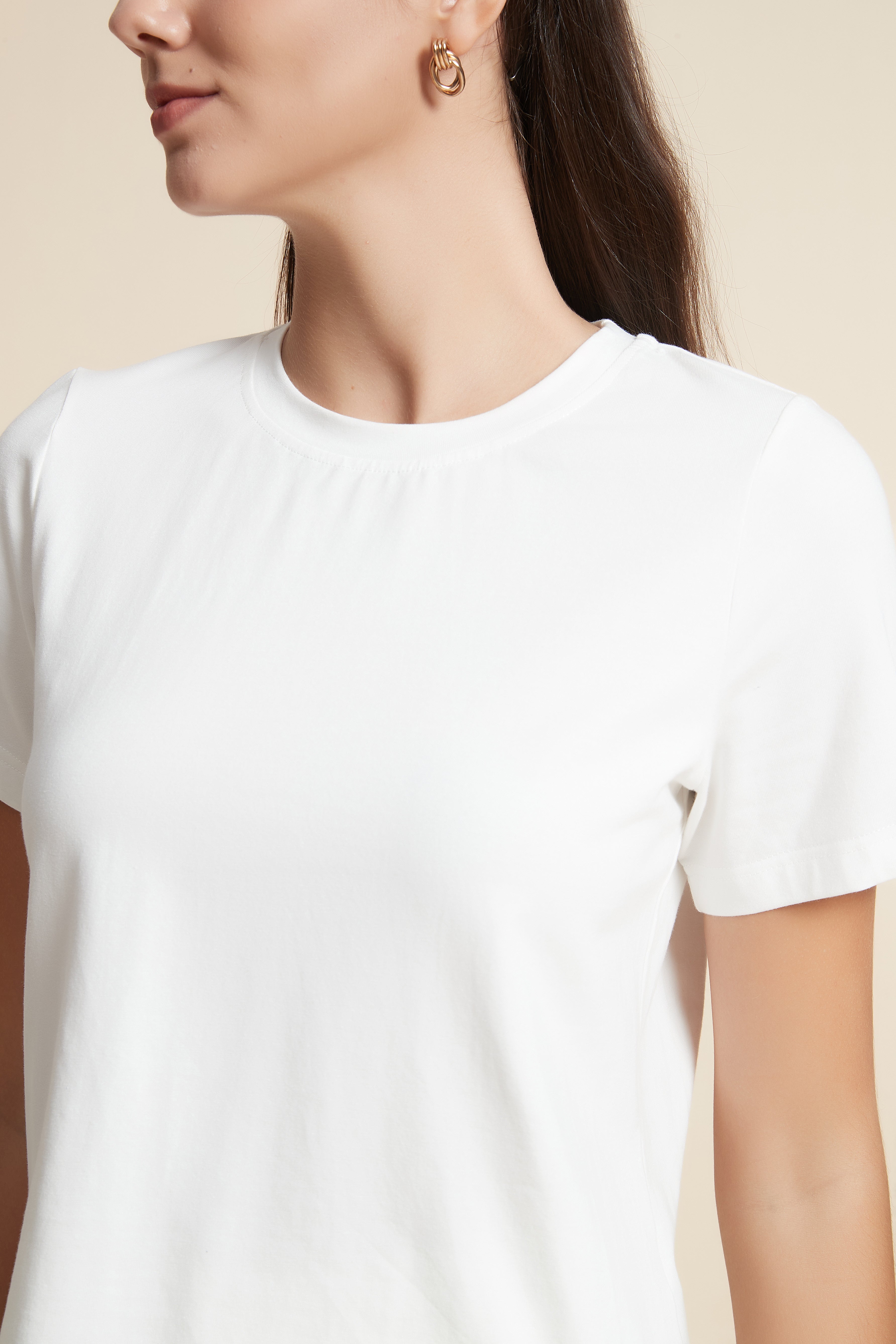تي شيرت نص كم بفتحة رقبة دائرية