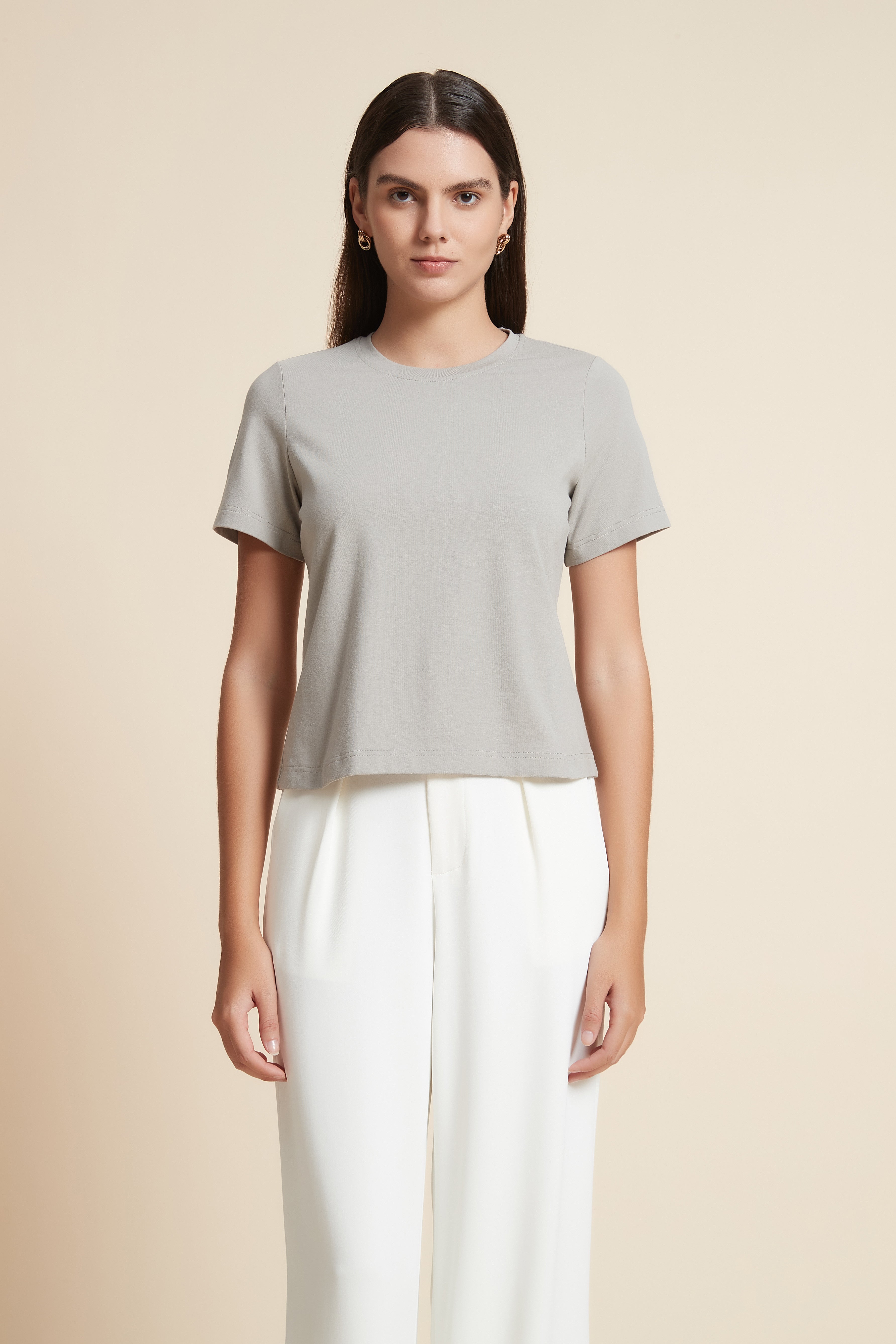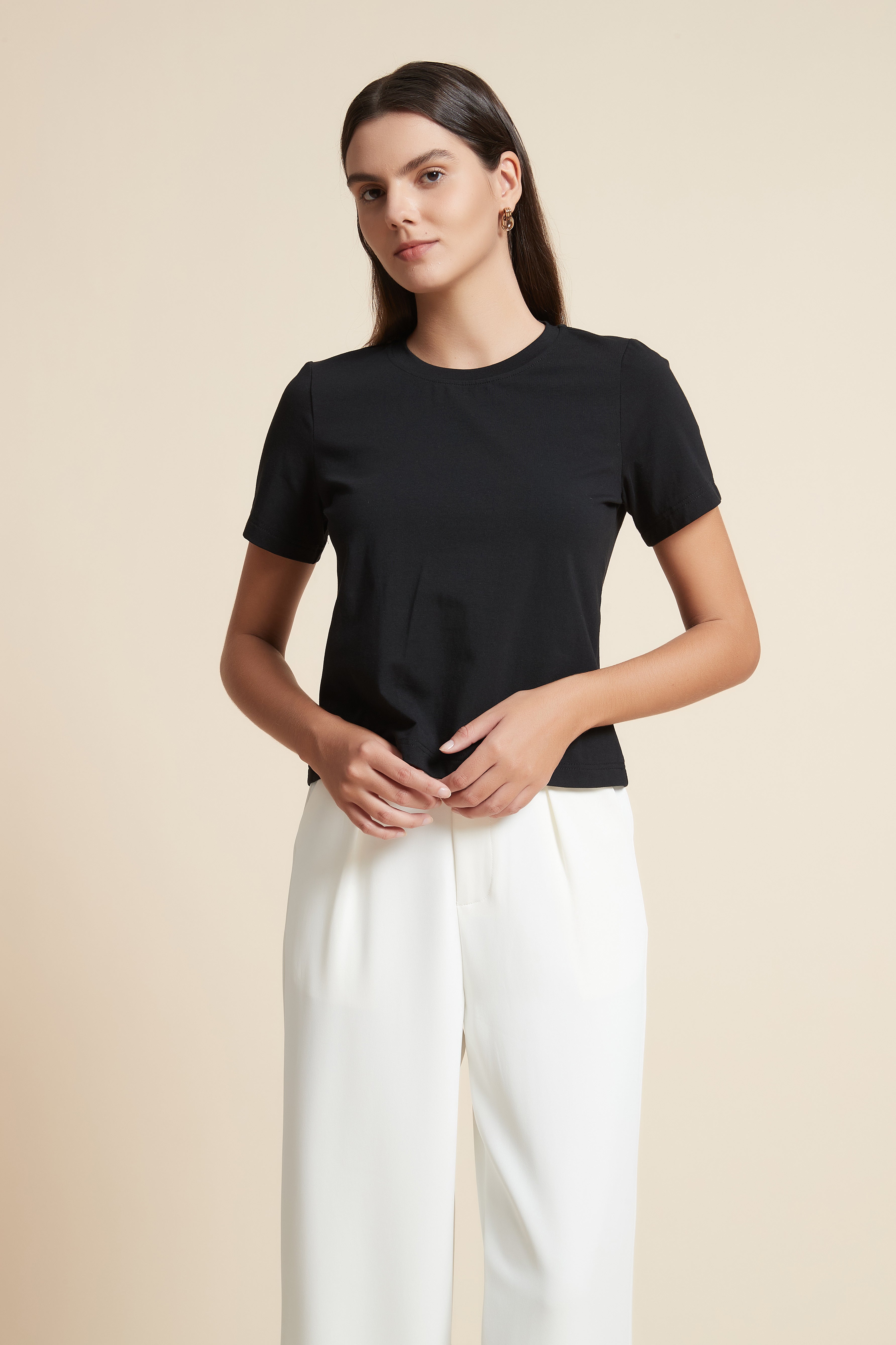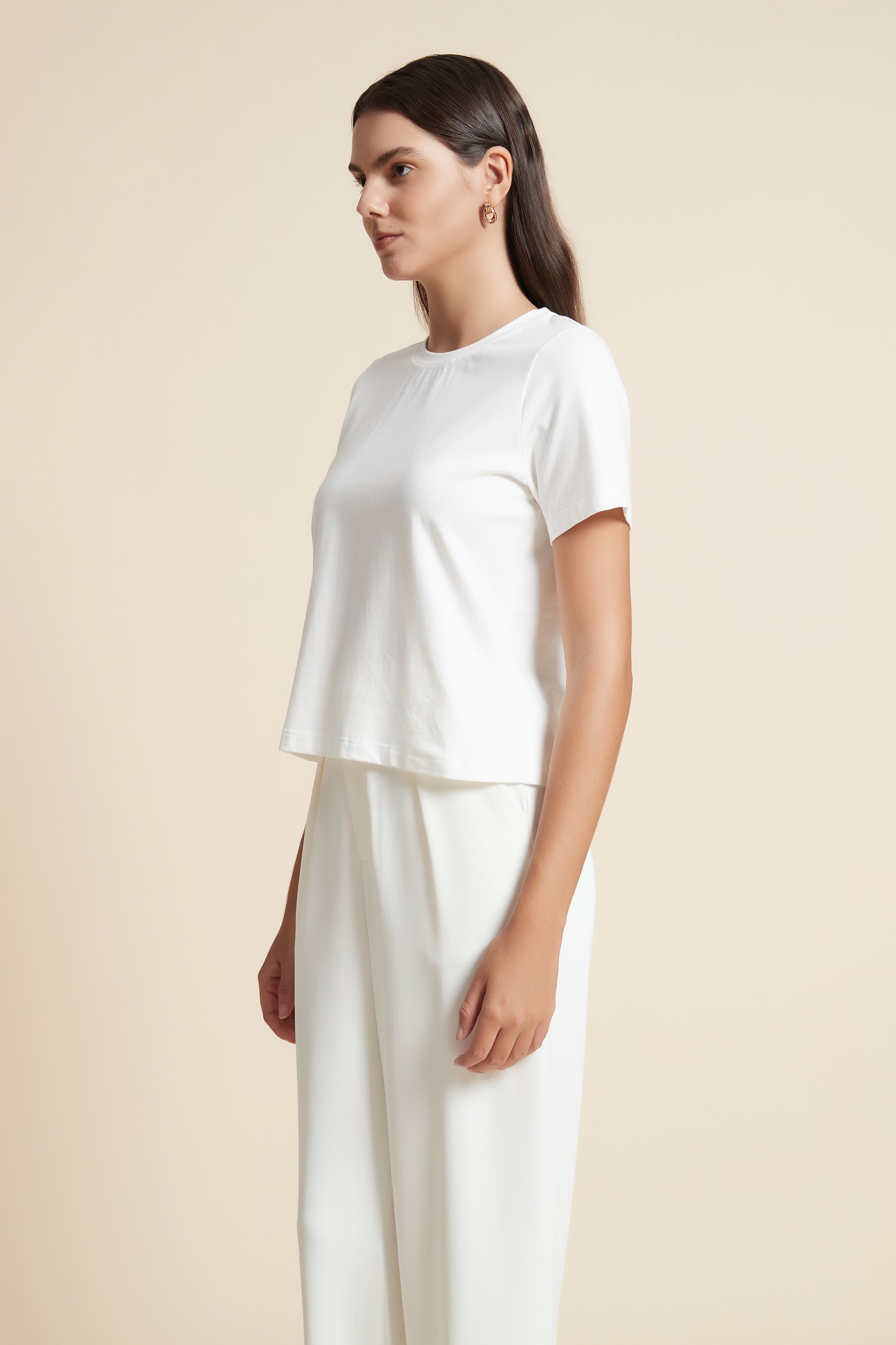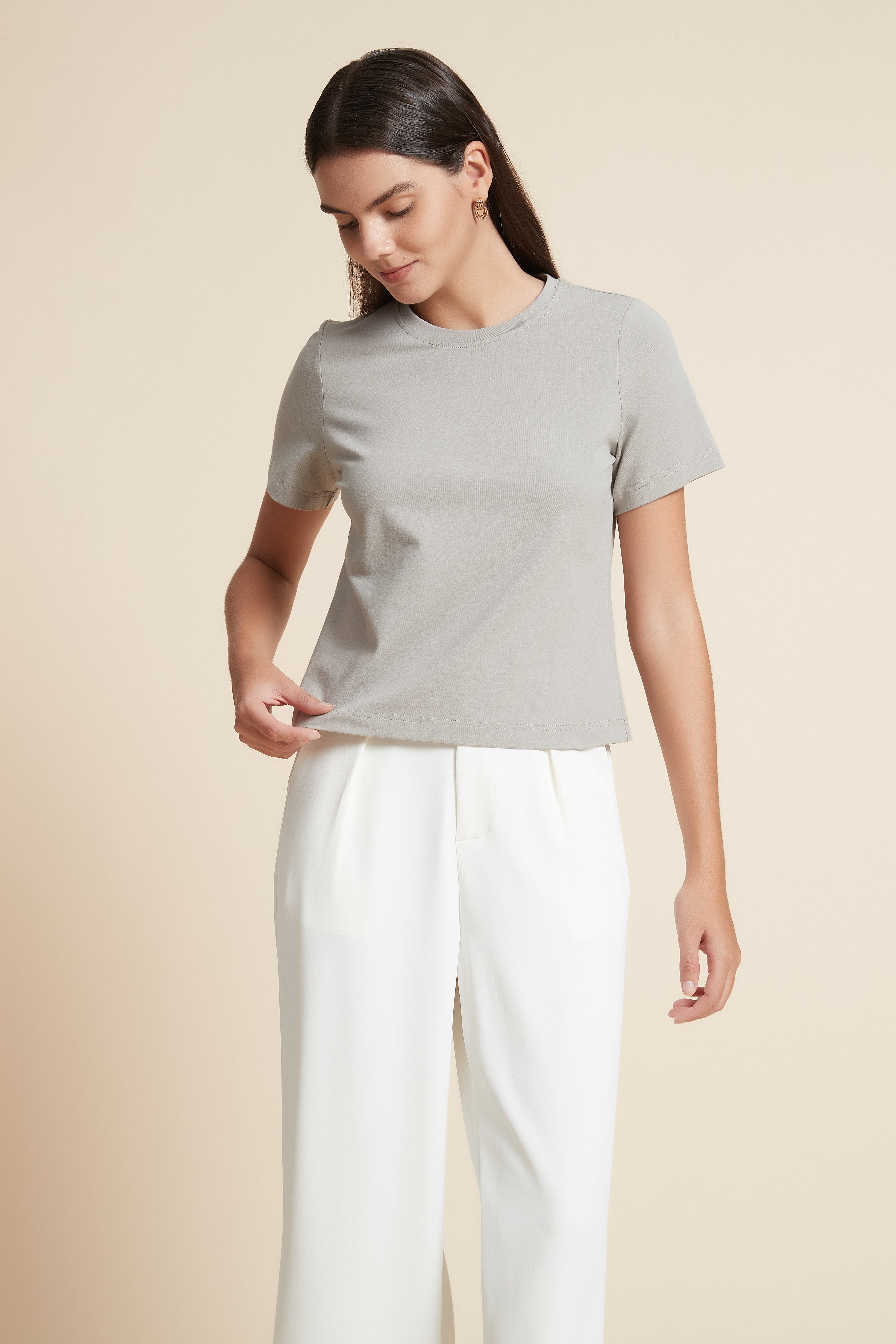 تي شيرت نص كم بفتحة رقبة دائرية