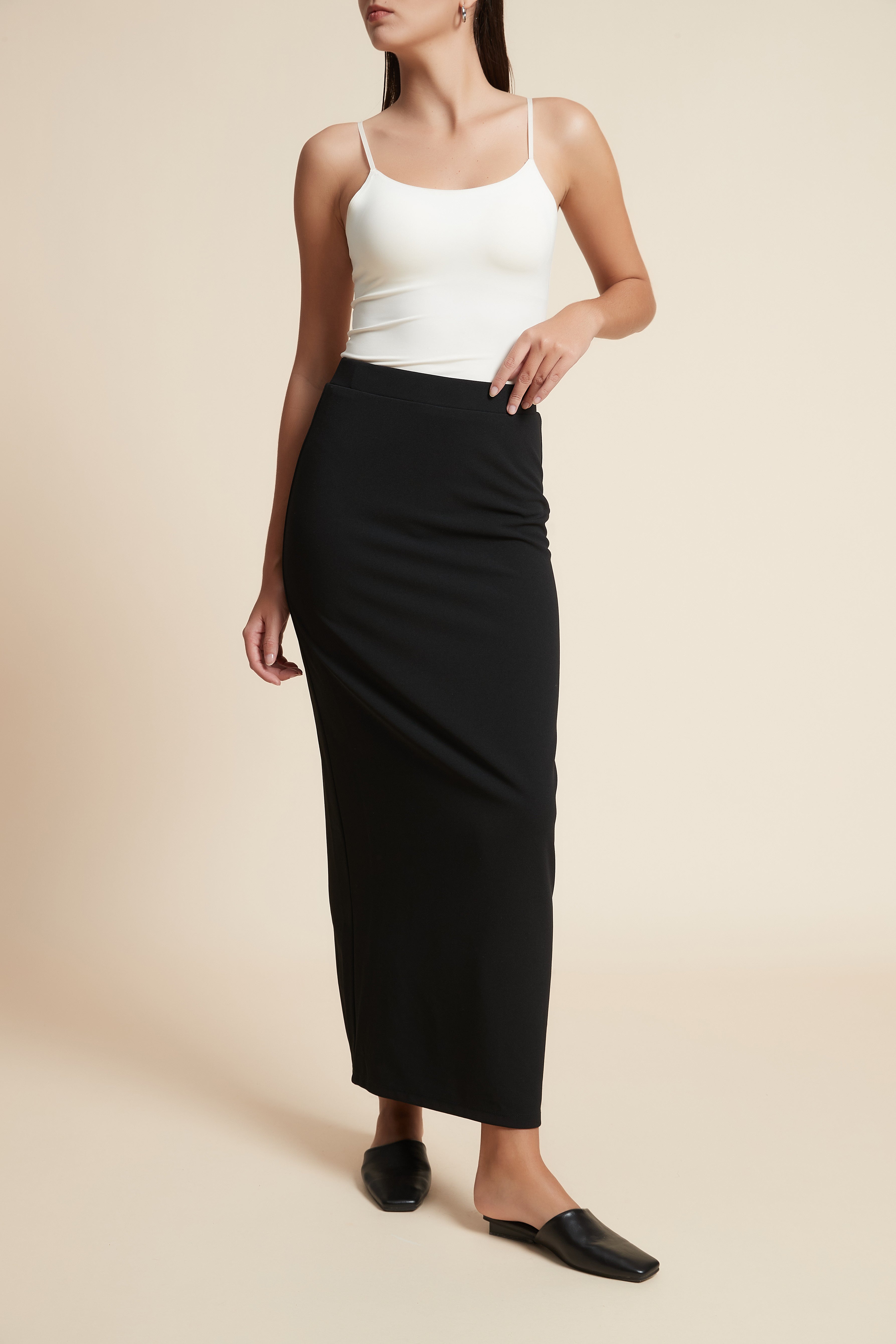 تنورة طويلة سادة بقصة مستقيمة