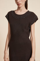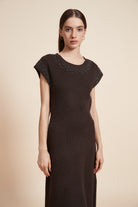 فستان ماكسي سادة استراس علوي باكمام قصيرة
