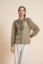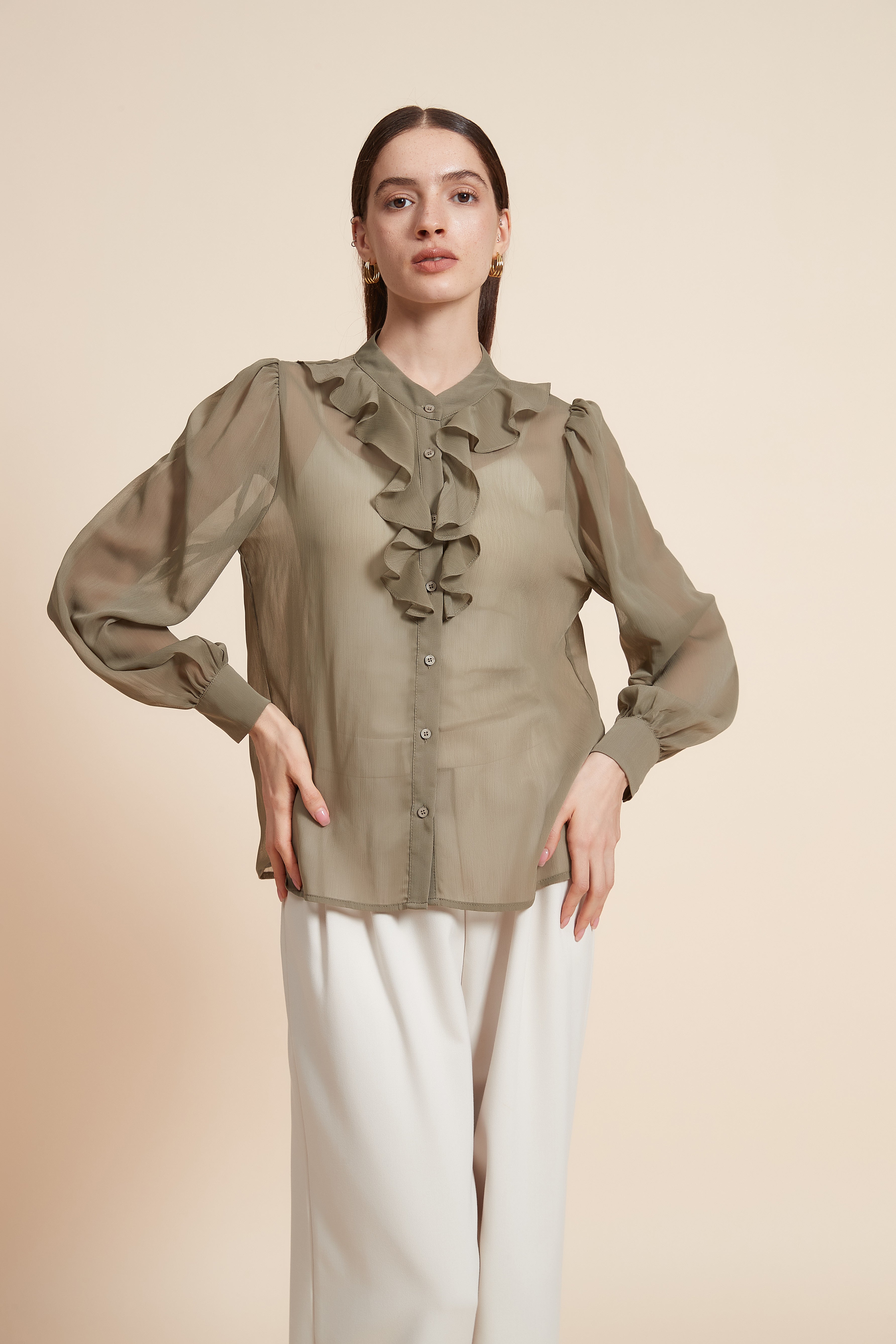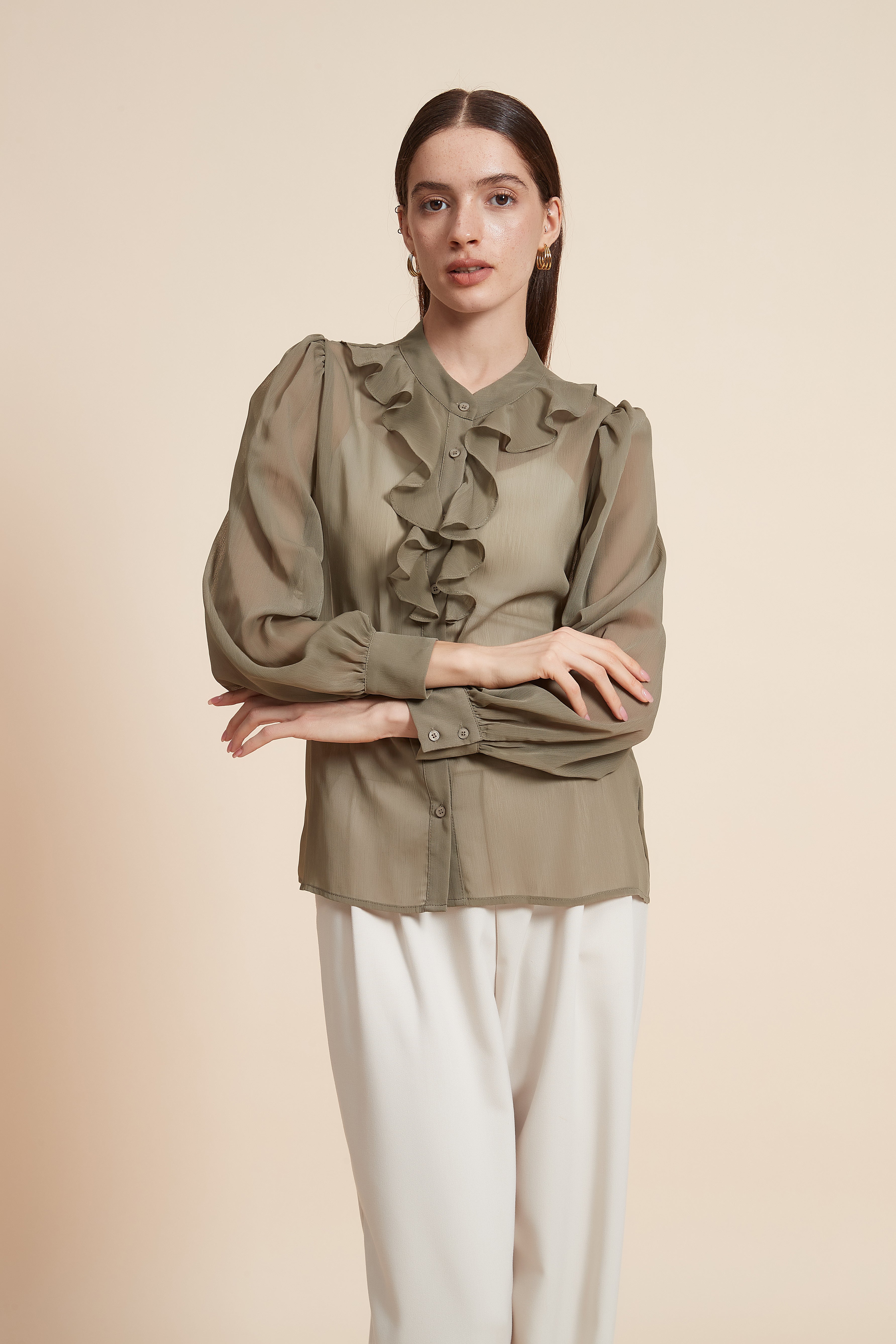 تتميز بلوزة بكم طويل واسع مكشكشة بتصميم يجمع بين الأناقة والراحة. مصنوعة من قماش خفيف وناعم، تمنحك شعوراً مريحاً طوال اليوم. تجسد البلوزة أسلوباً عصريًا مع لمسة من الأنوثة، حيث تضفي الكشكشة لمسة فريدة ومميزة على إطلالتك. يمكنك تنسيقها مع الجينز أو التنورة لتكوني دائماً في قمة الأناقة. لا تفوتي فرصة الحصول على هذه البلوزة الرائعة من ماركتنا، واطلبيها الآن لتحصلي على إطلالة مميزة تعكس ذوقك الرفيع. رقم المنتج: iye087w254to