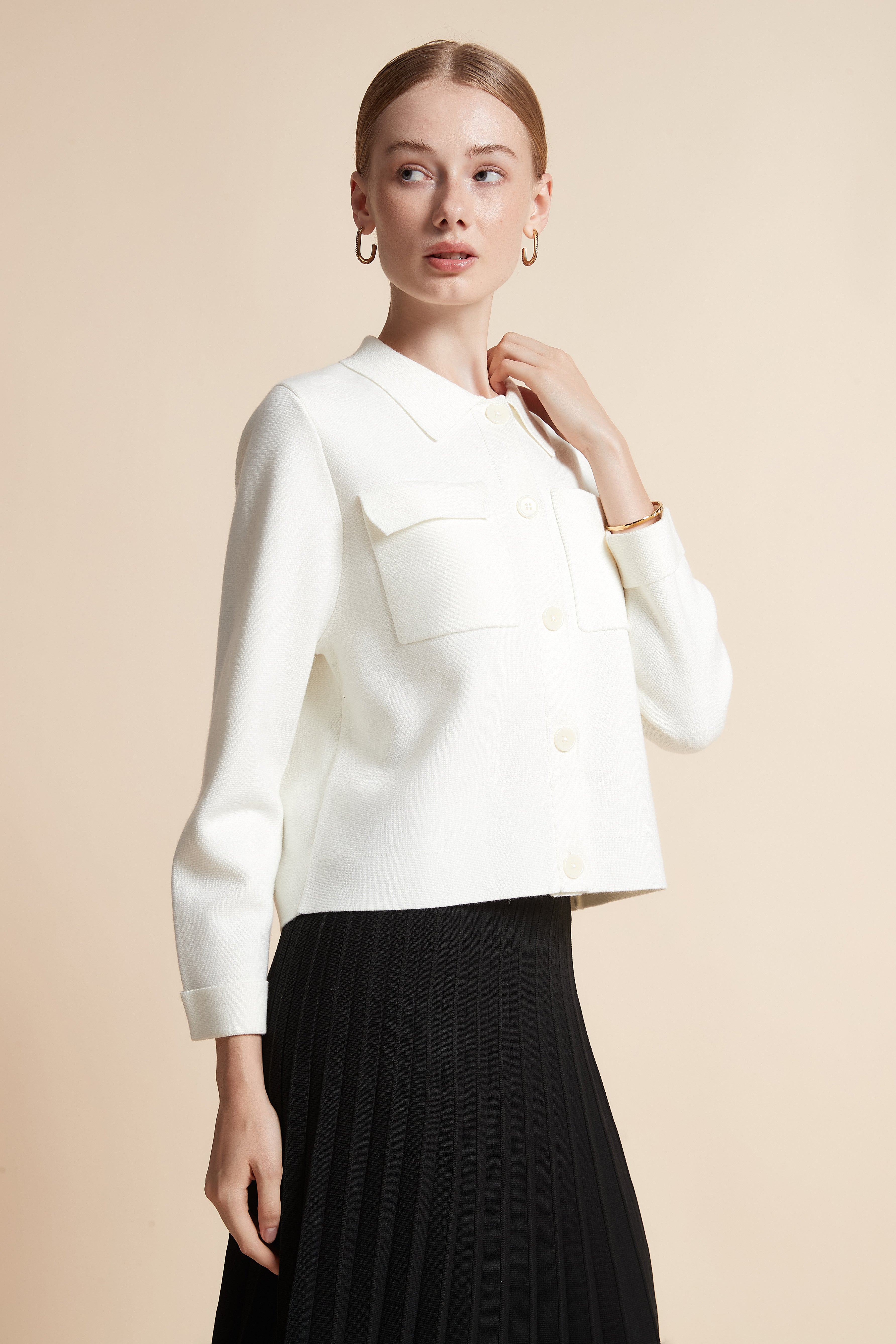جاكيت قصير بجيوب كم طويل