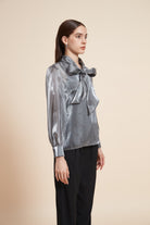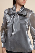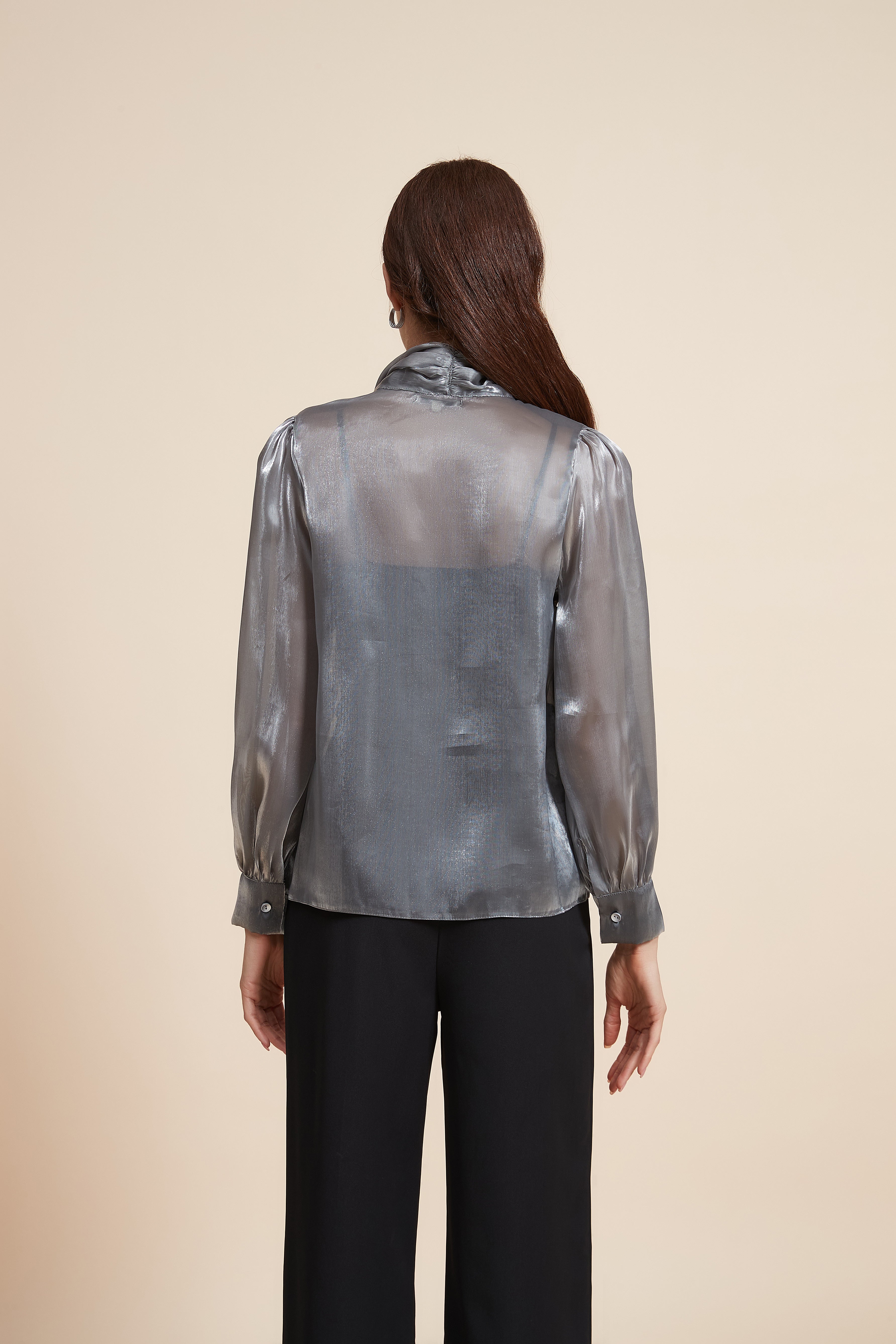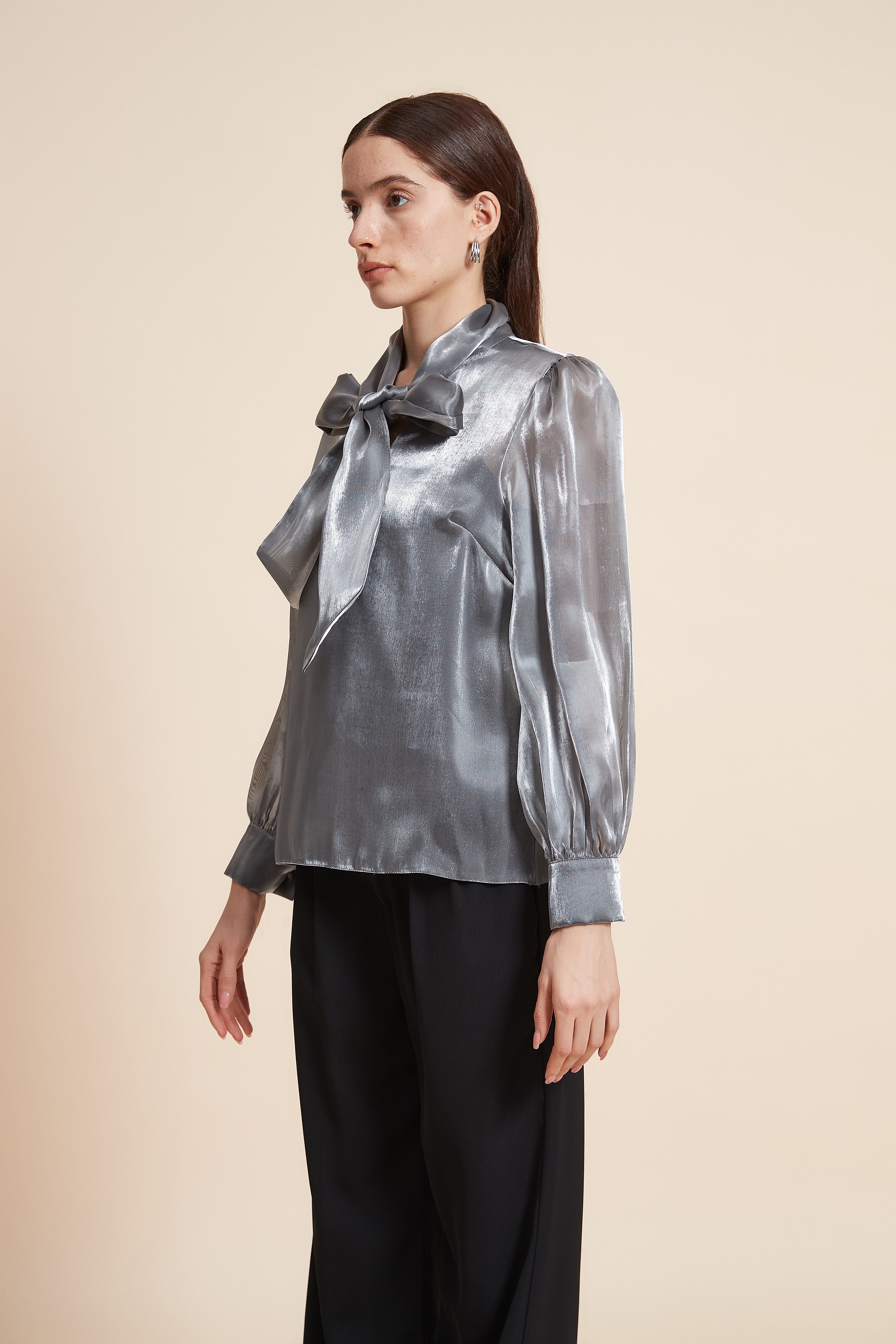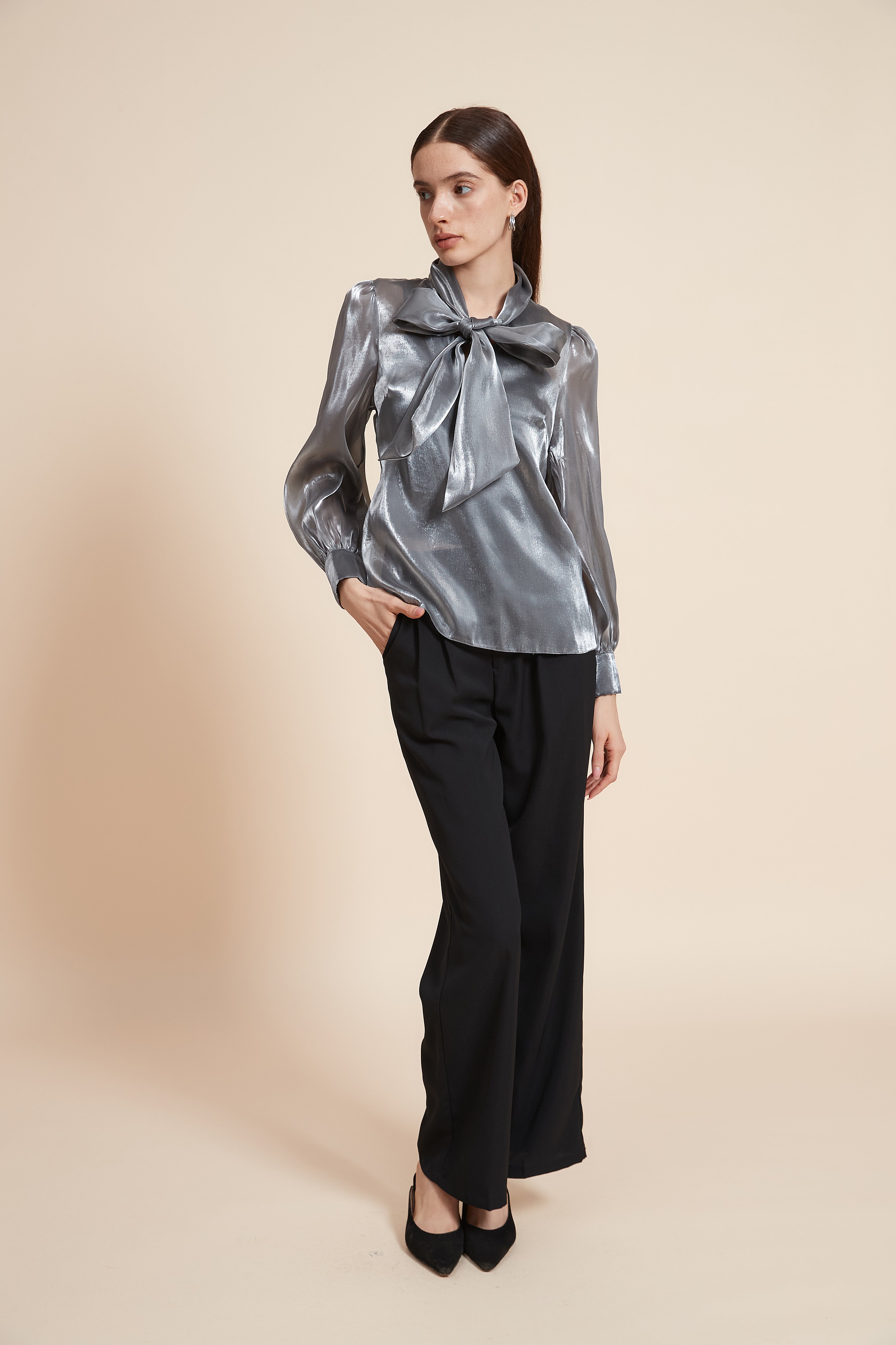 بلوزة متوسطة الطول بأكمام طويلة وربطة عنق