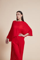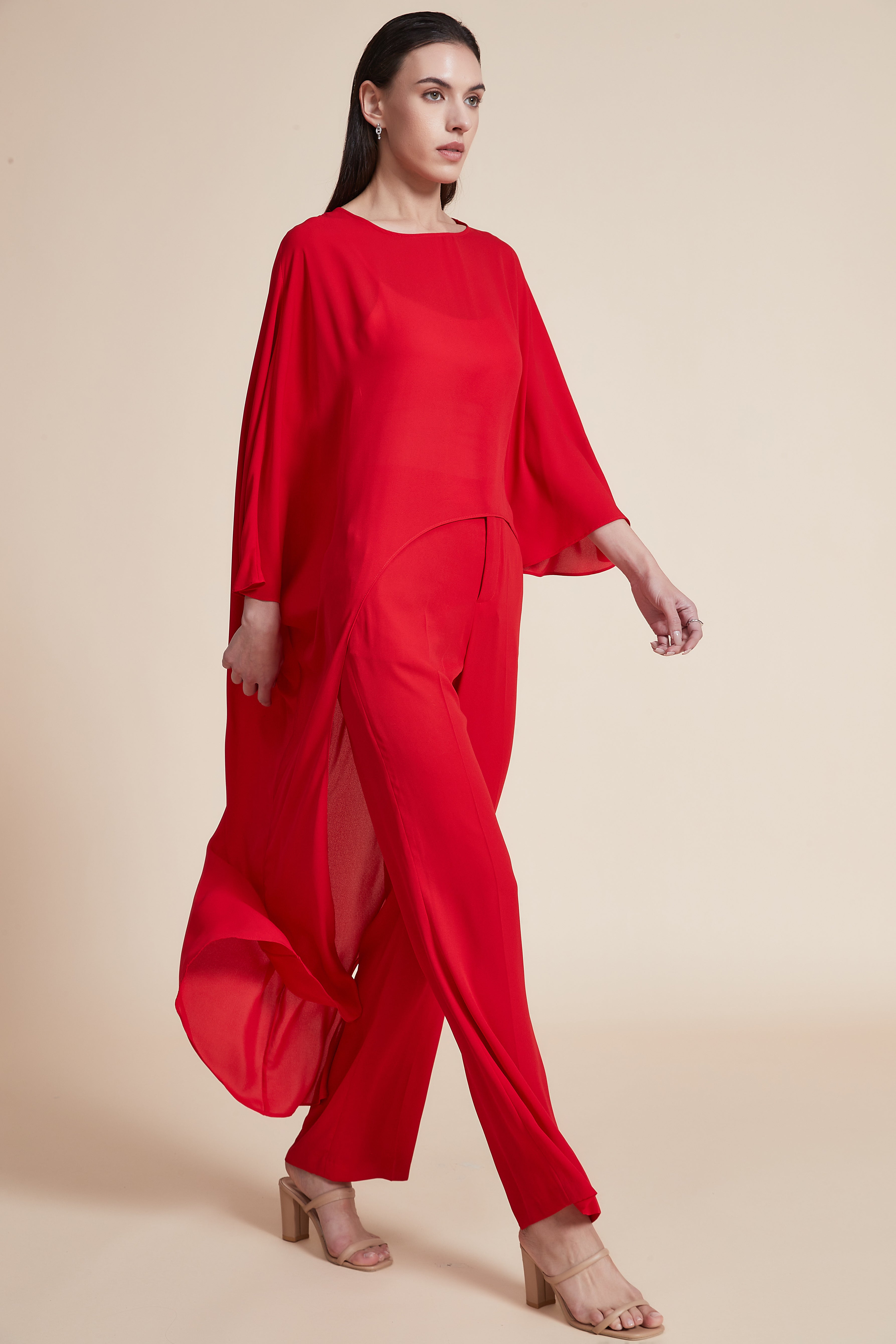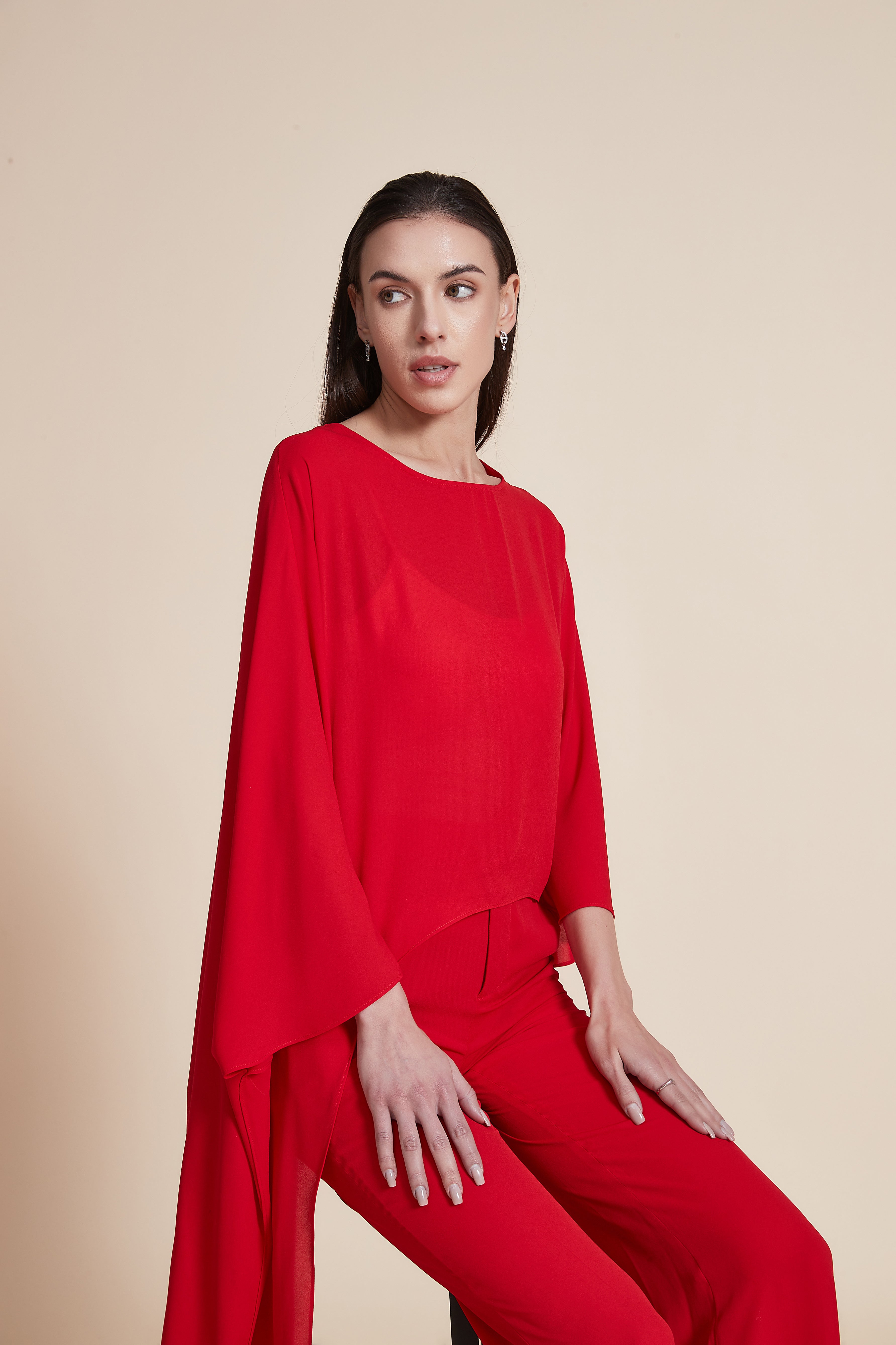 بلوزة طويلة من الخلف أكمام طويلة واسعة