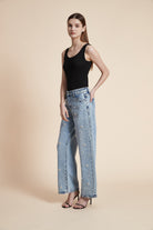 بنطلون نسائي طويل بقصة مستقيمة وتصميم عصري مريح